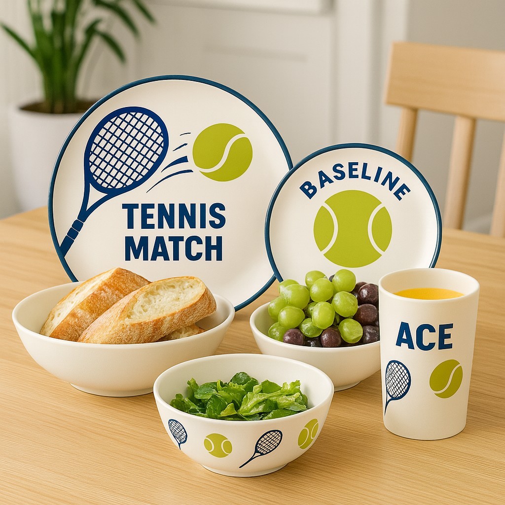 This Tennis-Inspired Melamine Tableware Set combines playful sporty design with everyday practicality — perfect for family meals, picnics, or outdoor camping.