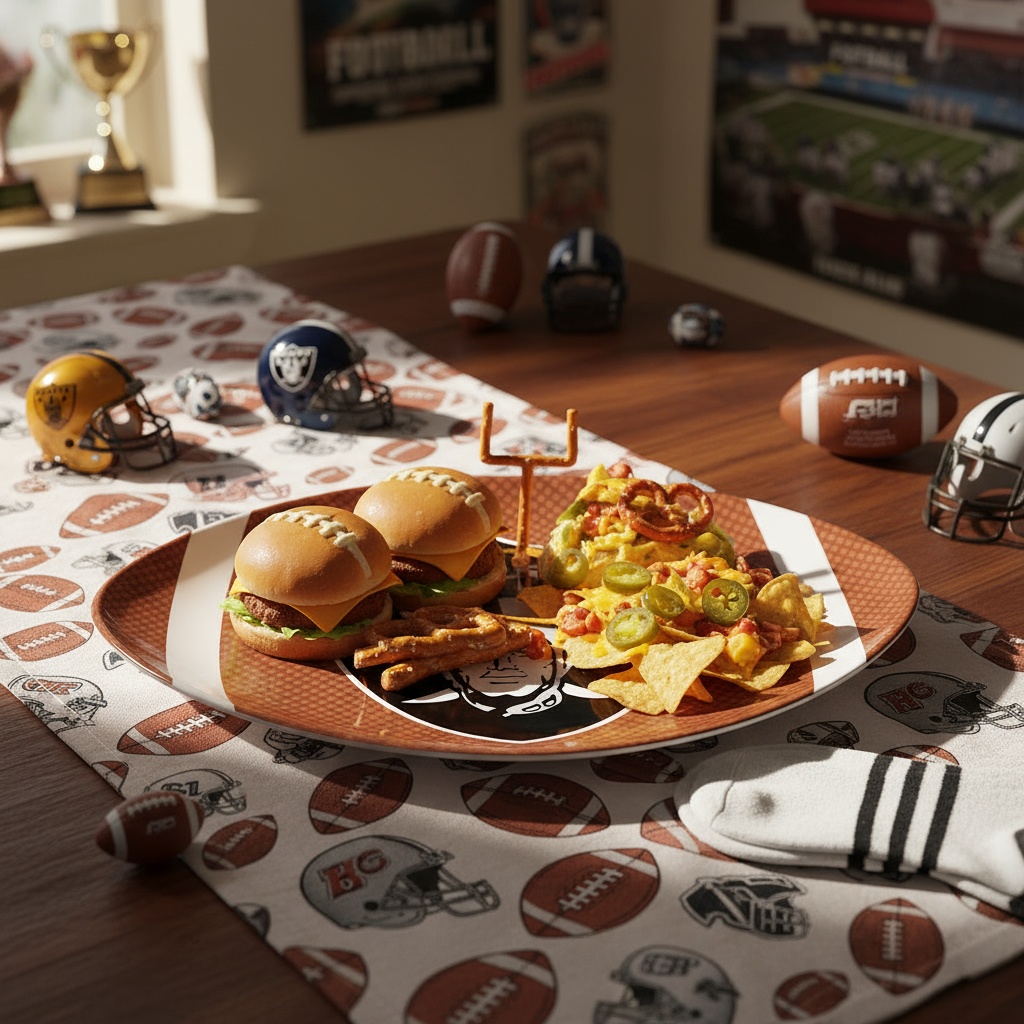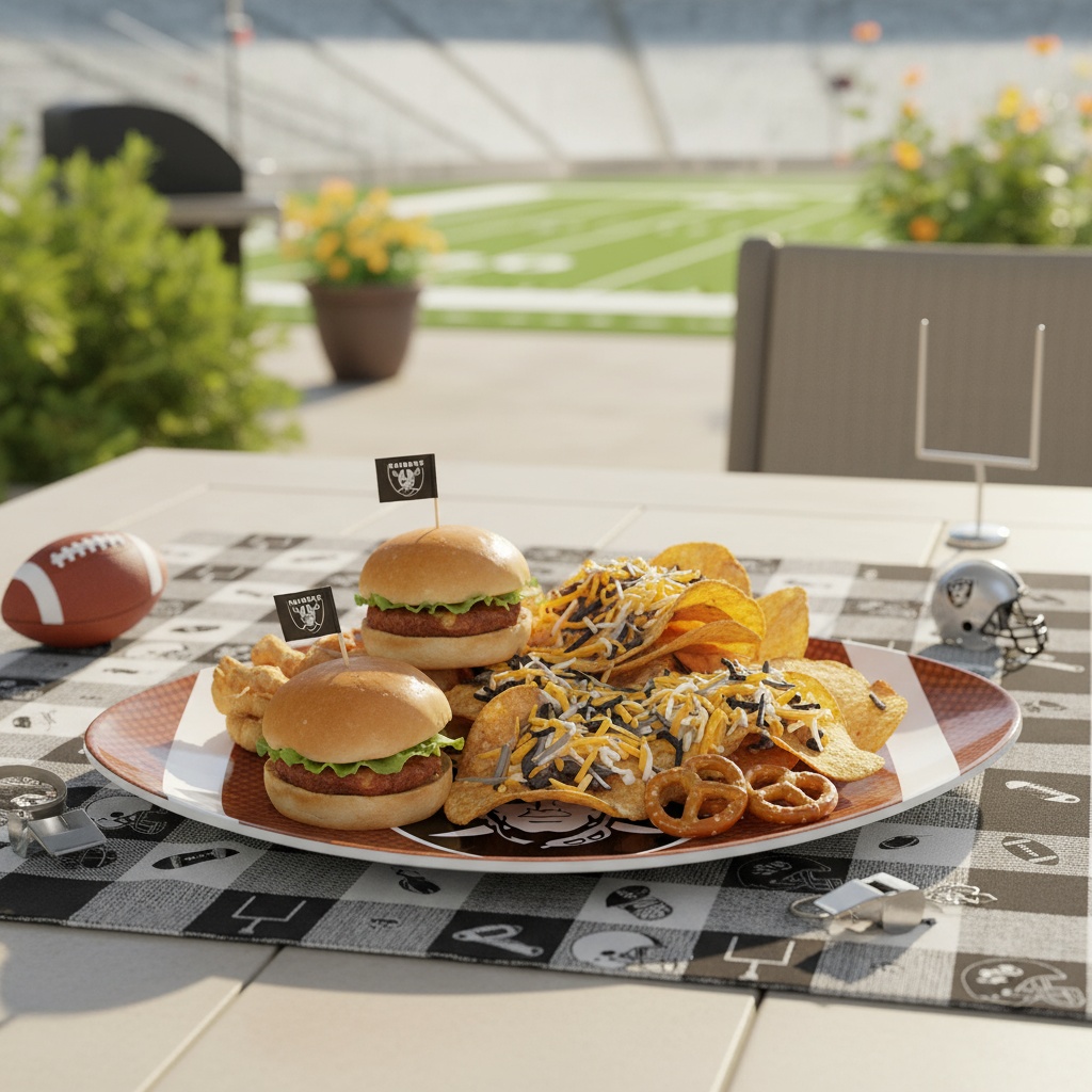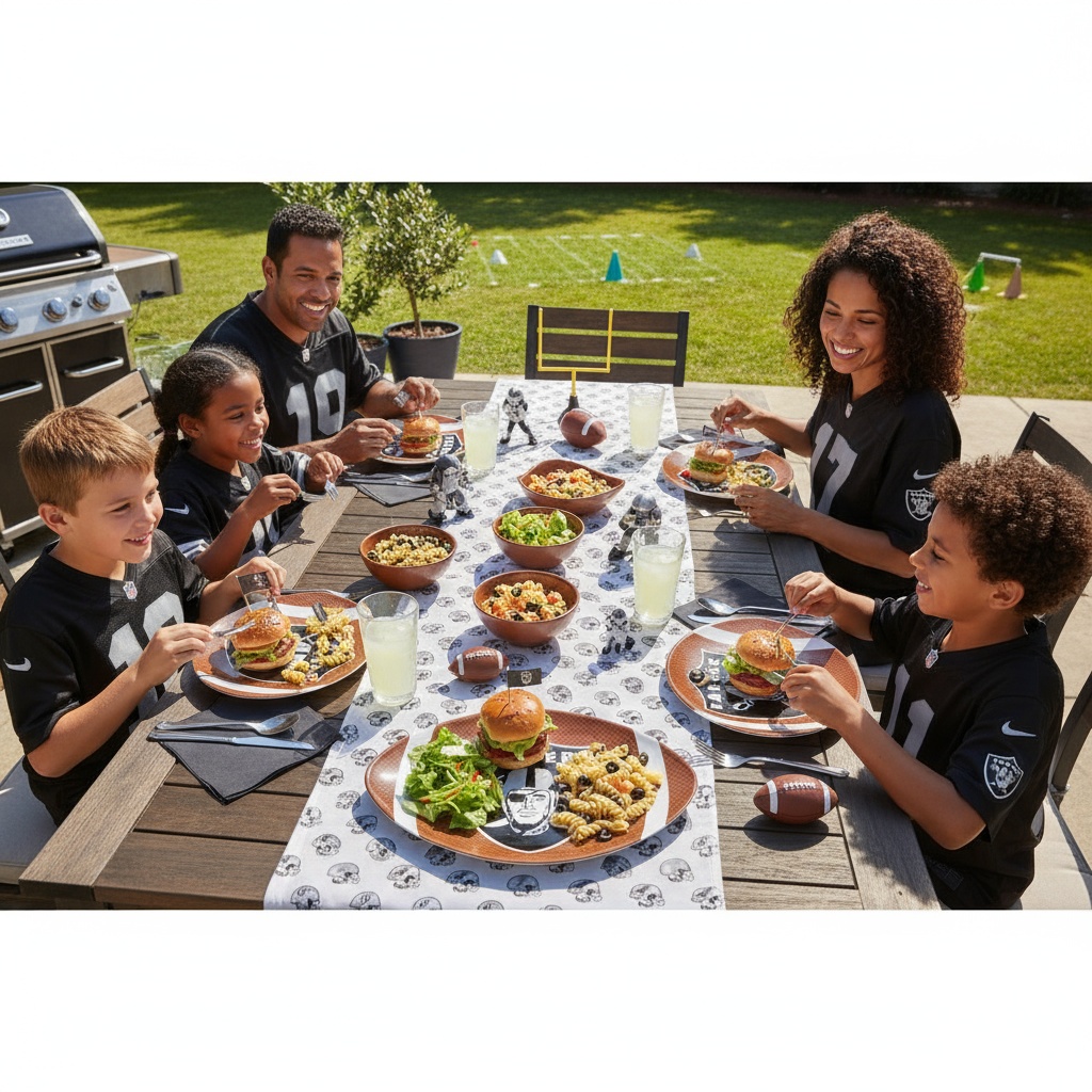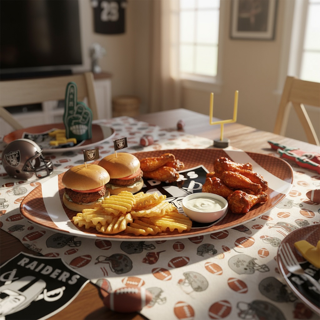 Support your team in style with this Las Vegas Raiders football-shaped melamine tray! Featuring the iconic black and silver Raiders logo, it’s perfect for serving snacks and more on game day.