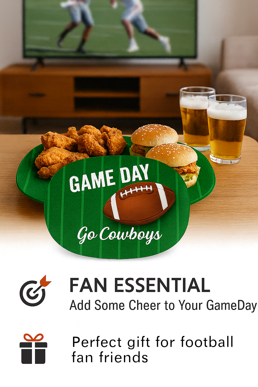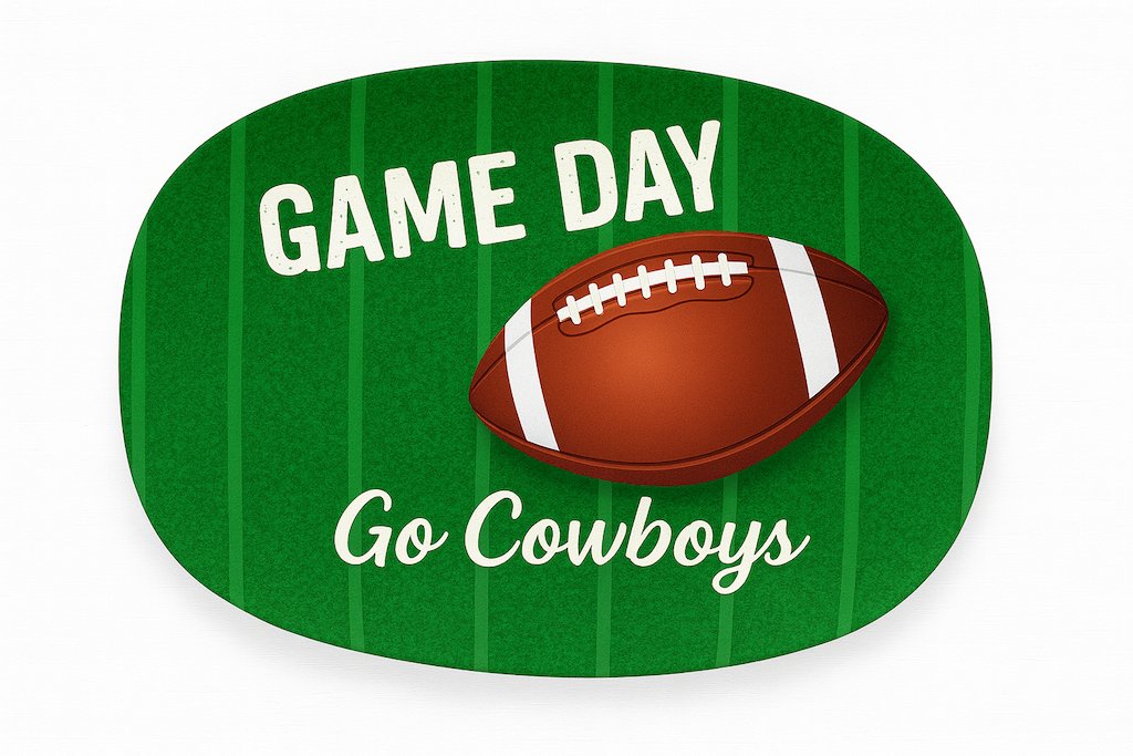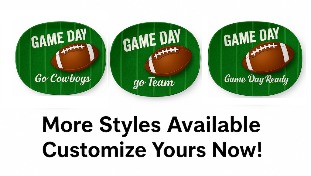 Crafted from food-grade BPA-free melamine, this football-themed platter is durable, dishwasher-safe, and perfect for game day parties, fan events, and seasonal promotions. Available in three designs: Go Cowboys / Go Team / Game Day Ready, with full OEM/ODM customization support.
