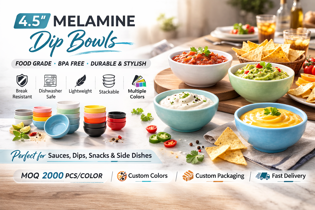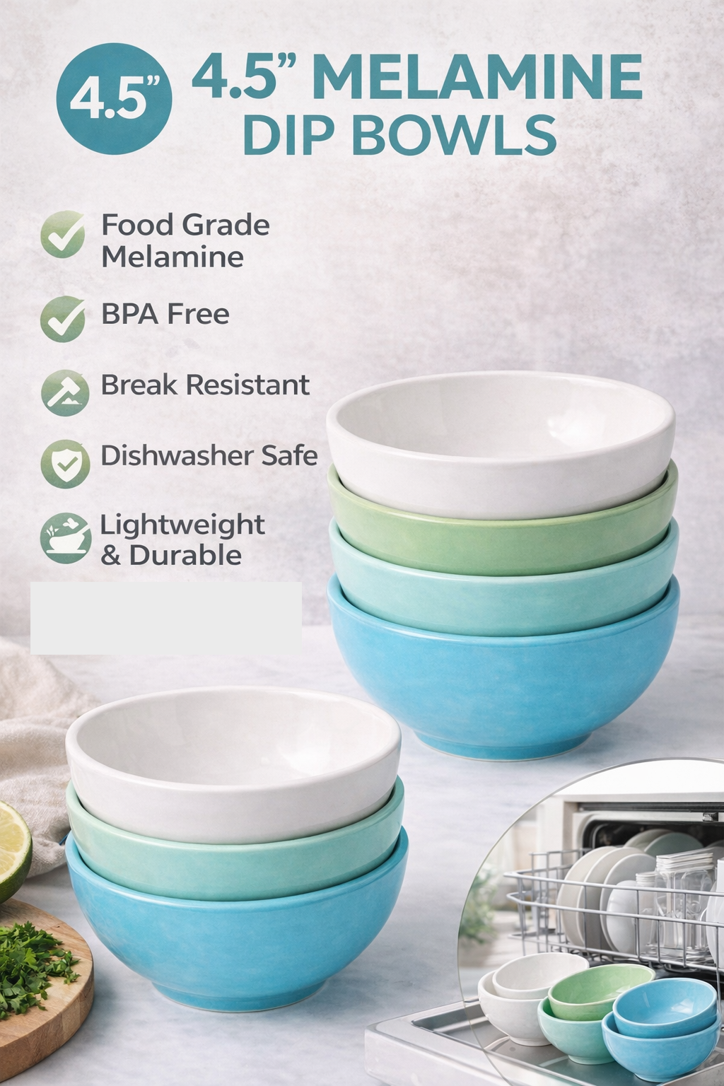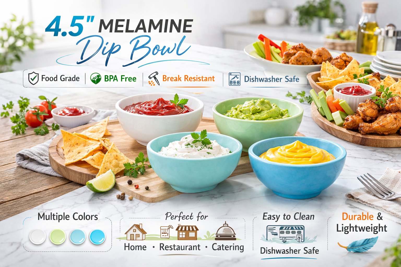 • Material: 100% Food Grade Melamine• BPA Free• Diameter: 4.5 Inch• Commercial Grade• Break Resistant• Dishwasher Safe• Stackable Structure