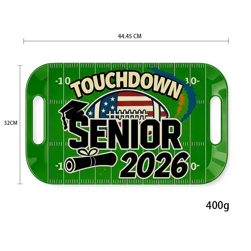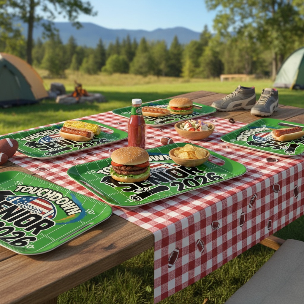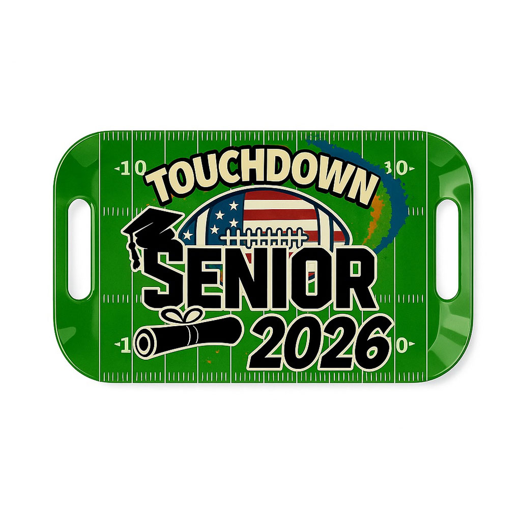 Graphic Elements: American flag football, graduation cap, diploma scroll