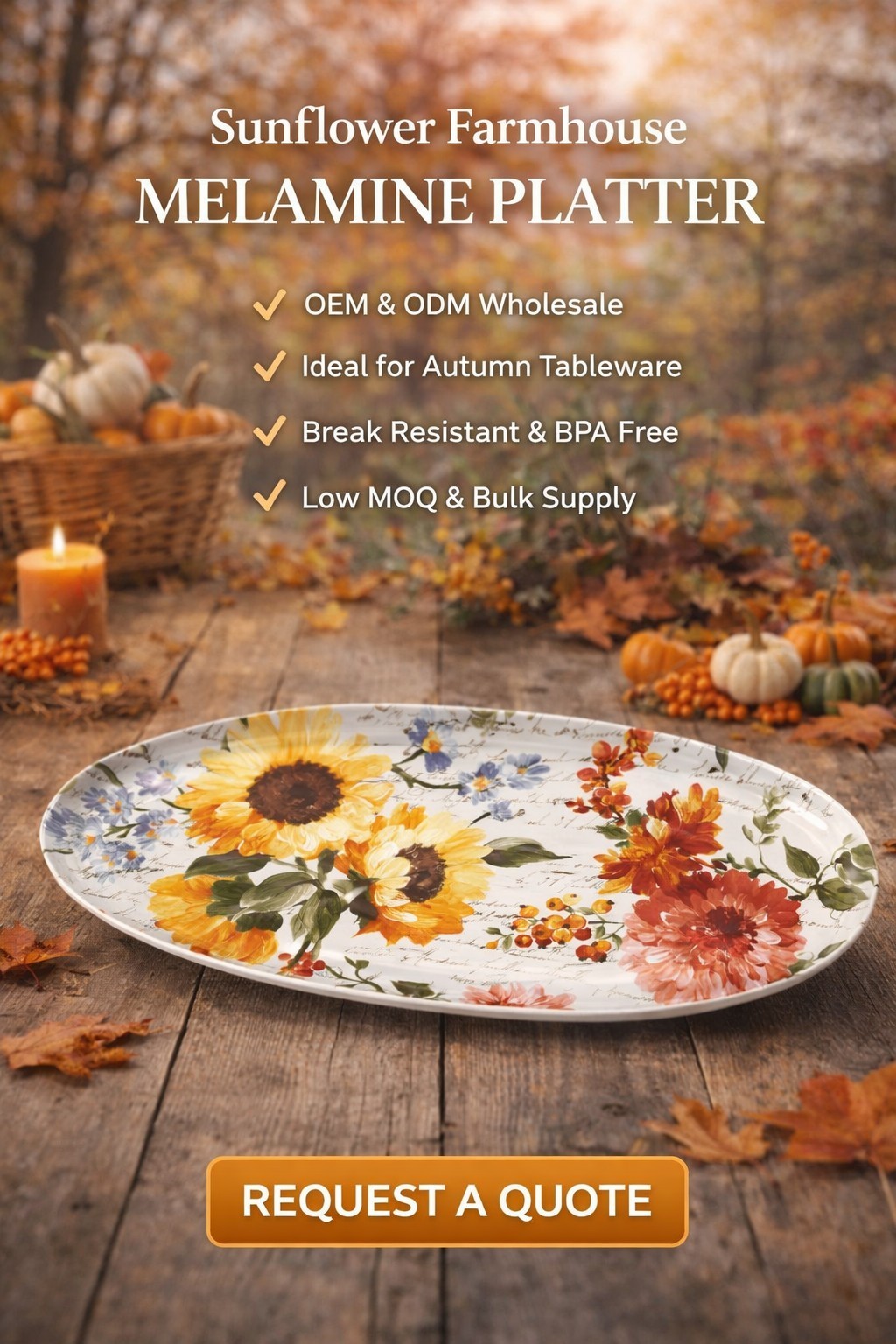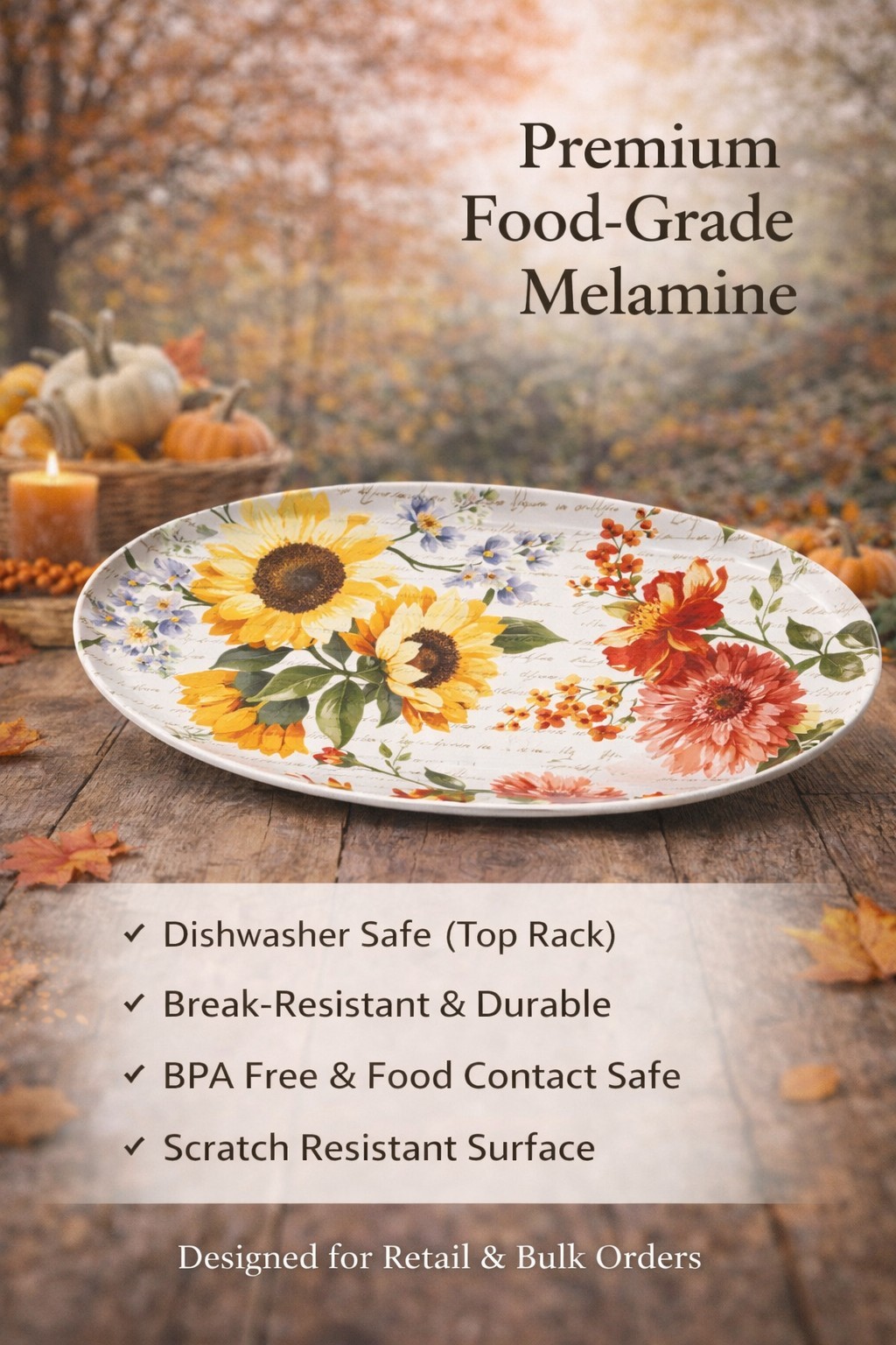 • Durable melamine, lightweight & shatter-resistant