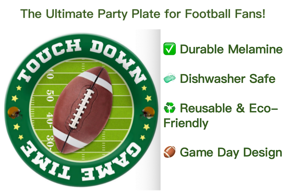 11 Inch Touchdown Game Time Melamine Dinner Plate