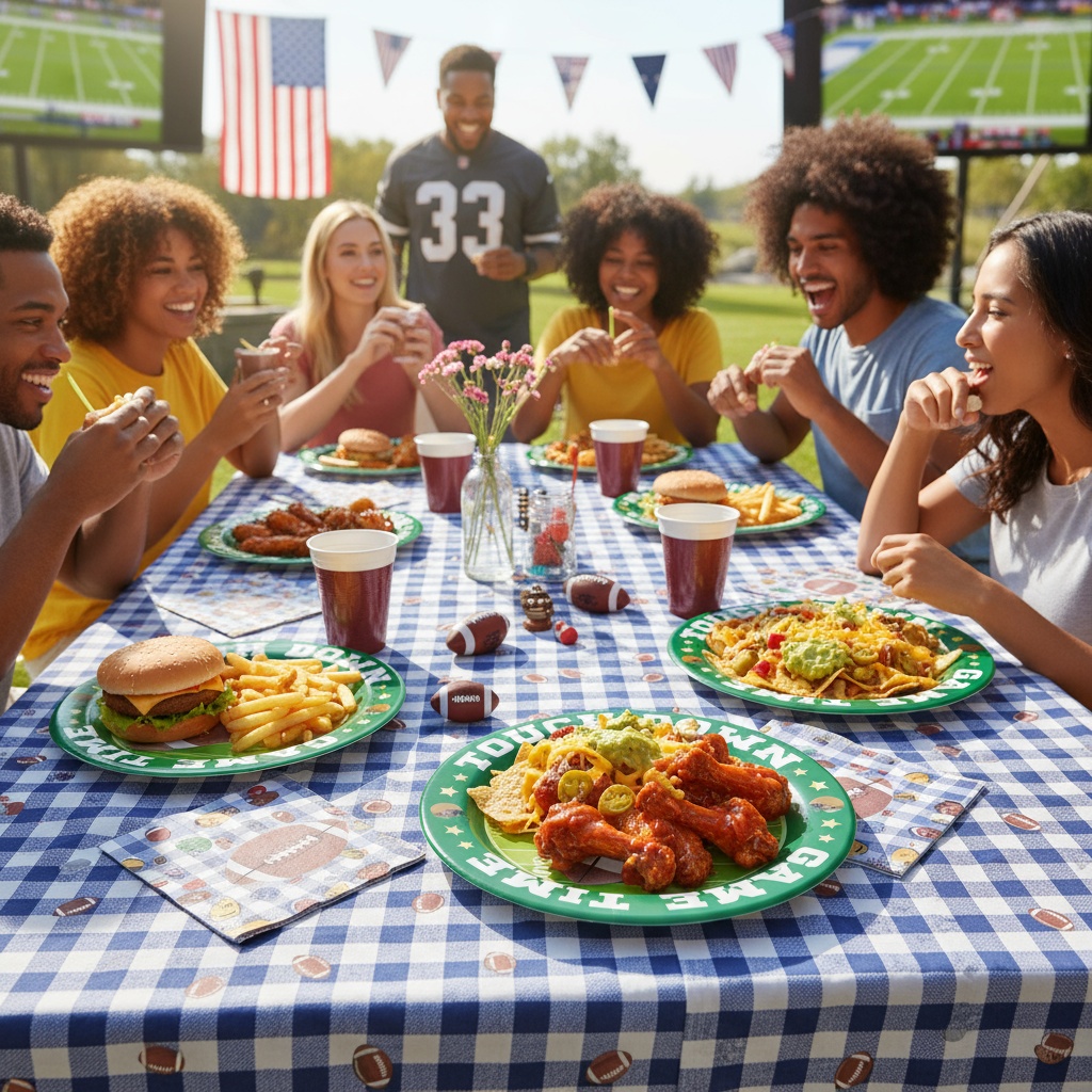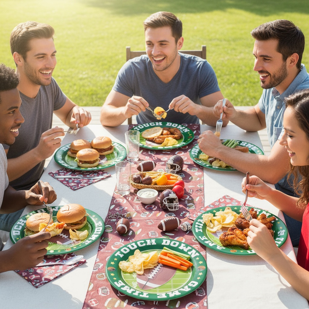 Make game day meals more exciting with this 11-inch melamine dinner plate featuring a bold 'Touch Down Game Time' football design. Perfect for sports fans and tailgate parties.