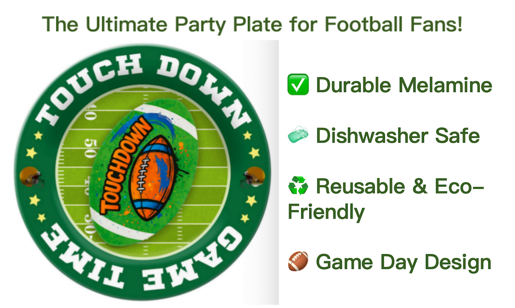 Made of high-quality melamine, this touchdown party dish is both reusable and eco-friendly. The colorful artwork
