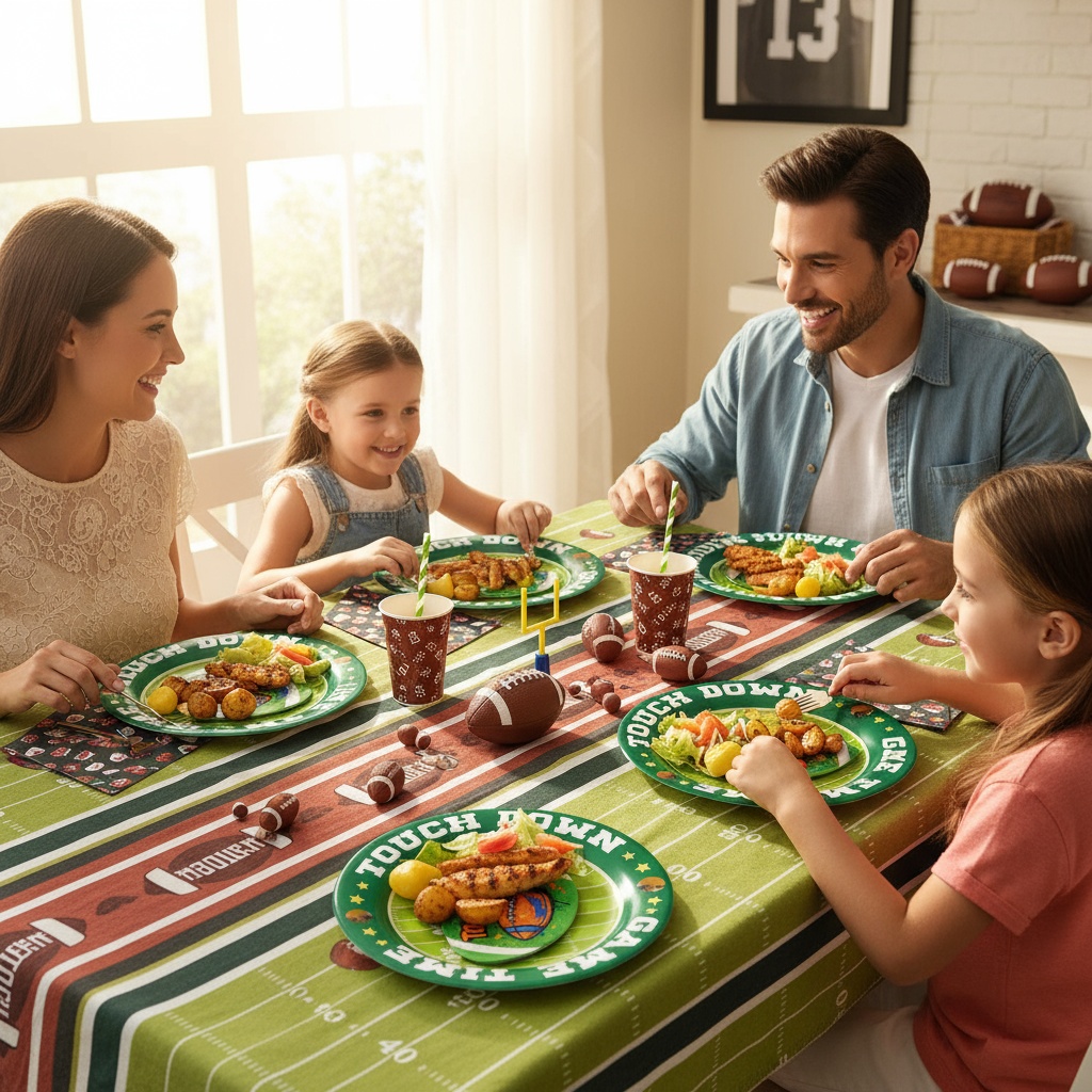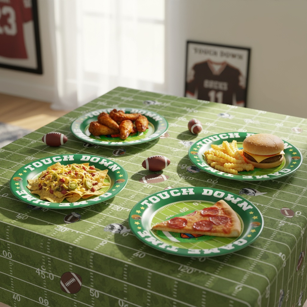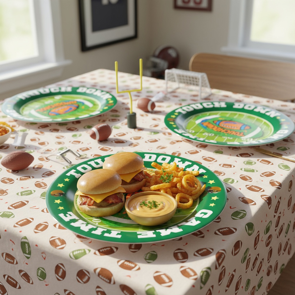Whether you prefer a bold tiger, patriotic stripes, or a classic football — this cartoon football plate set is your ideal