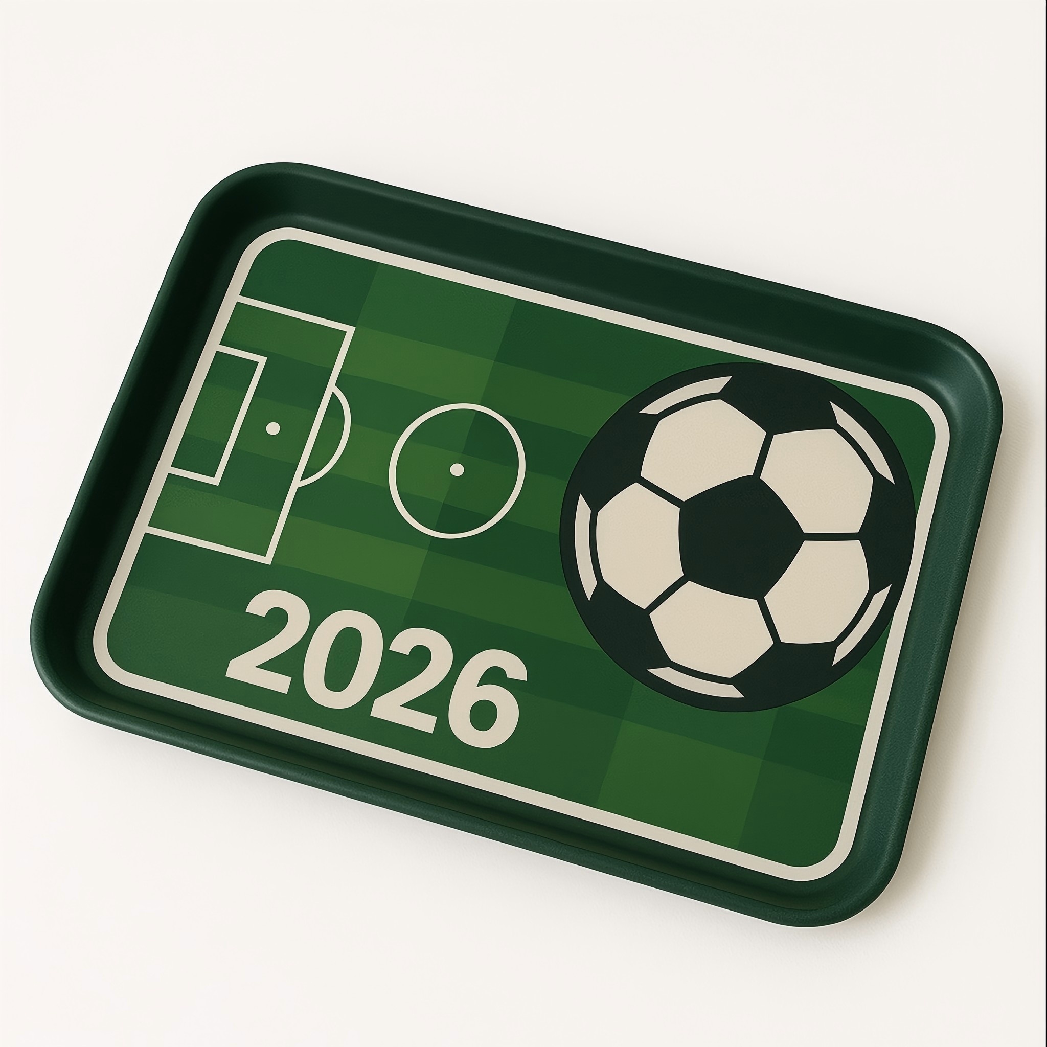 Inspired by the 2026 global football celebration, this 14-inch melamine tray combines sporty design with everyday functionality. Featuring a bold soccer field graphic and durable construction, it's perfect for serving snacks, drinks, or meals at home or at your next football-themed party.
