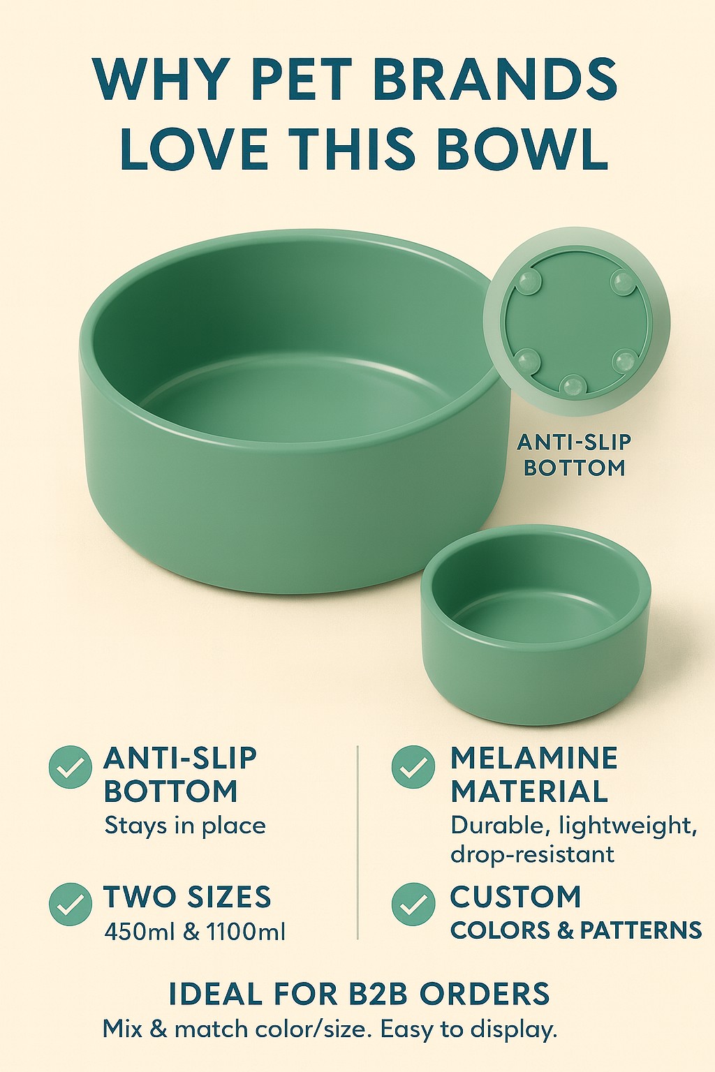 Durable melamine pet bowl with anti-slip base, available in two practical sizes: 1100ml and 450ml. Perfect for food or water, easy to clean, and safe for pets.