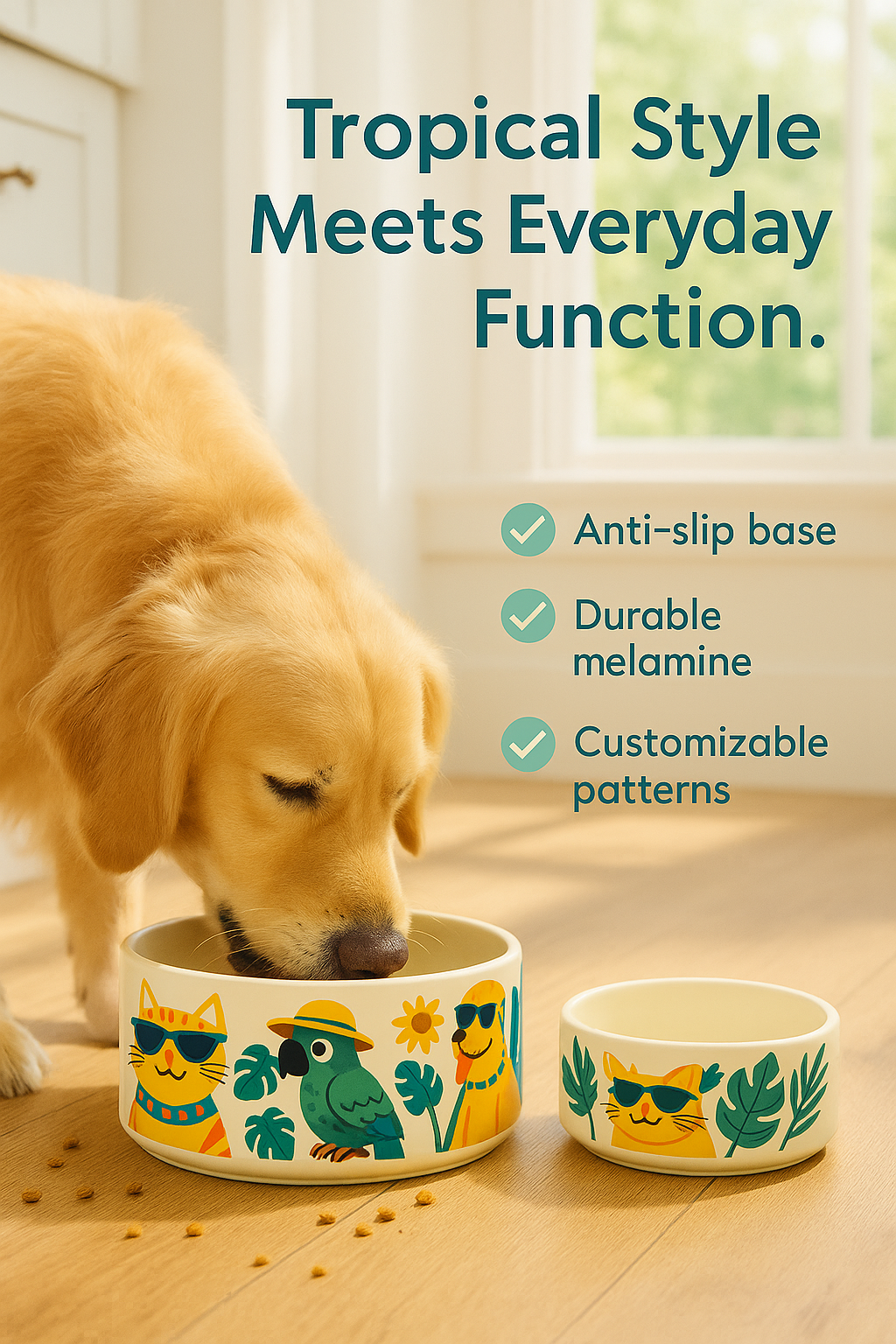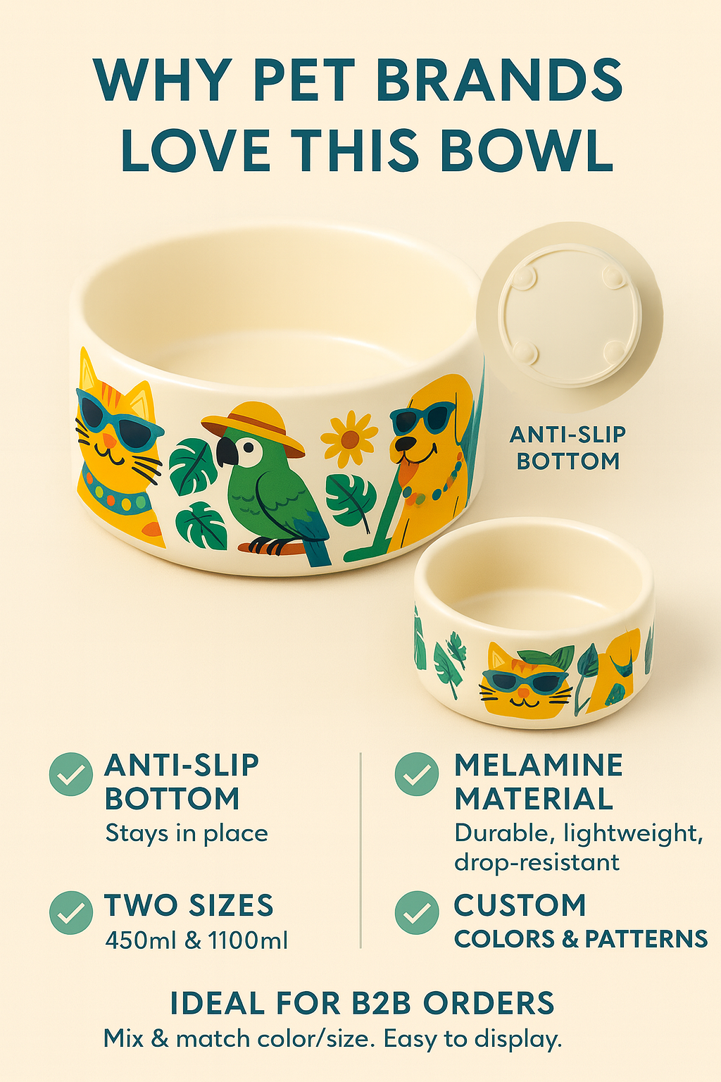 Bring joy to every feeding time. This non-skid melamine pet dog bowl blends playful design with everyday practicality — made from durable melamine and finished with a soft matte glaze.