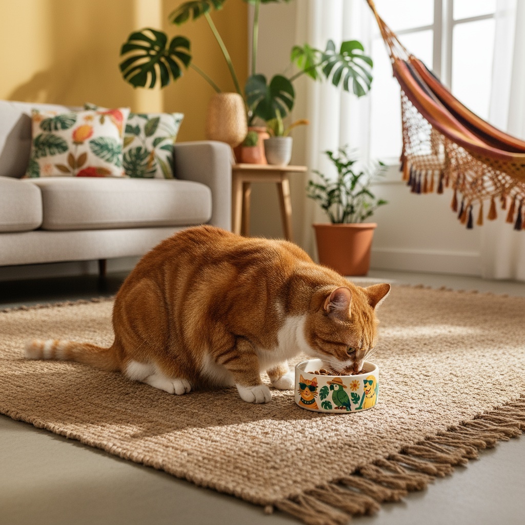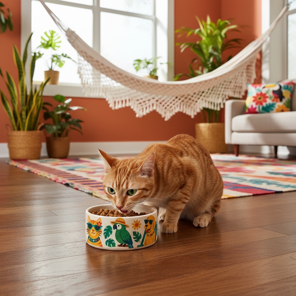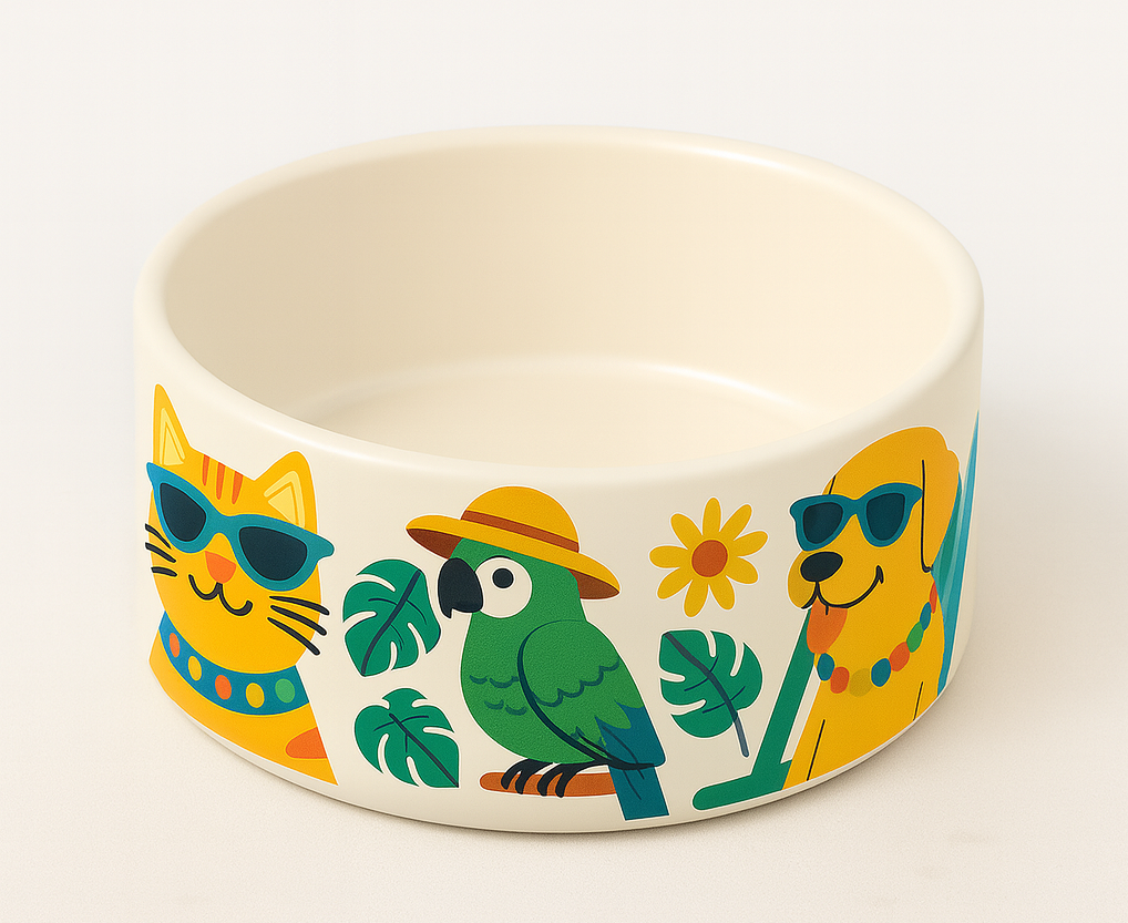 The cheerful print of a cool cat, sunny parrot, and happy pup adds color and charm to your home, while the anti-slip base keeps mealtime steady and stylish.