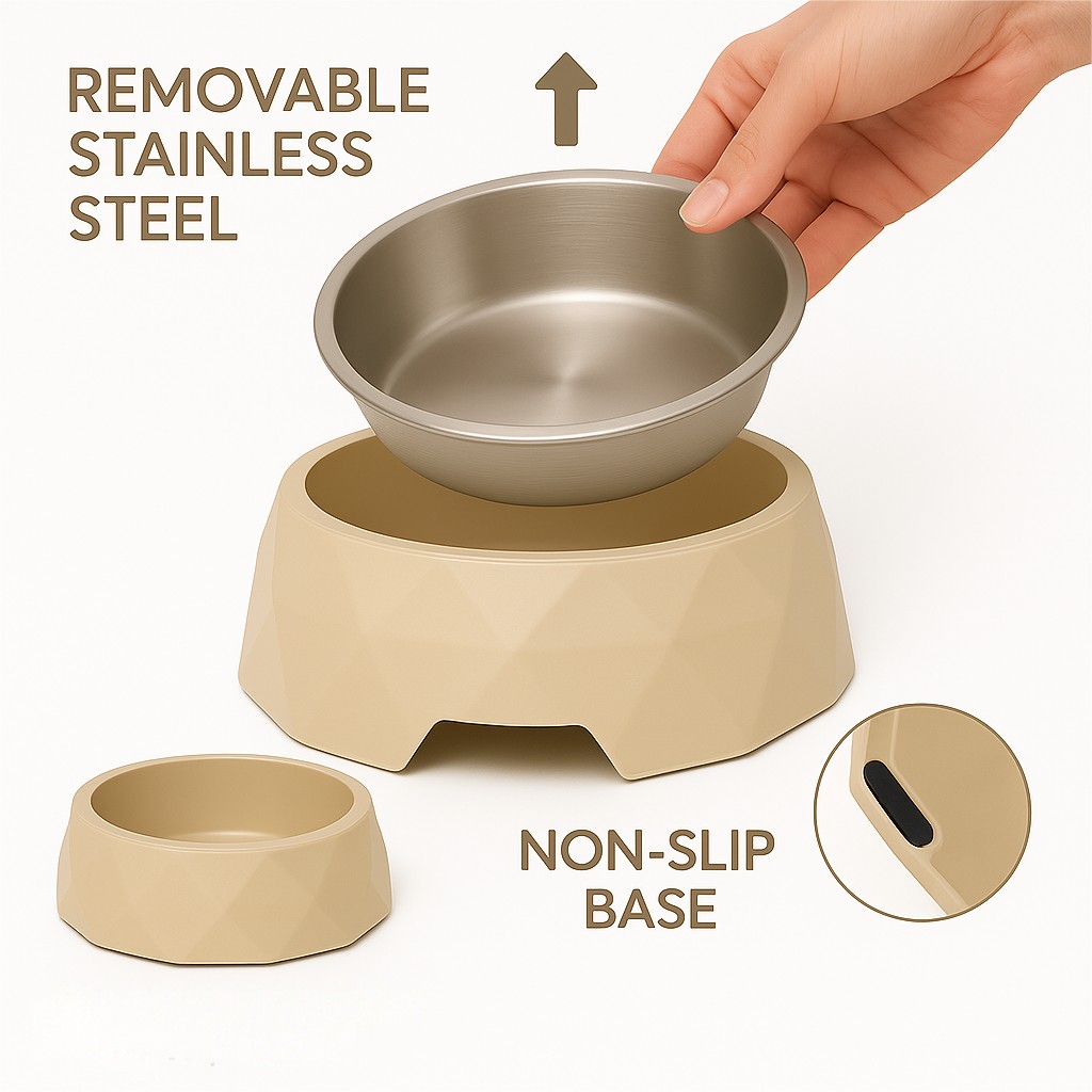 Keep your pet’s mealtime clean, comfortable, and stylish with our modern detachable stainless steel pet bowl. Designed with a geometric non-slip base, it stays firmly in place while your furry friend enjoys every bite. Perfect for both cats and dogs, it combines functionality, hygiene, and minimalist home design.