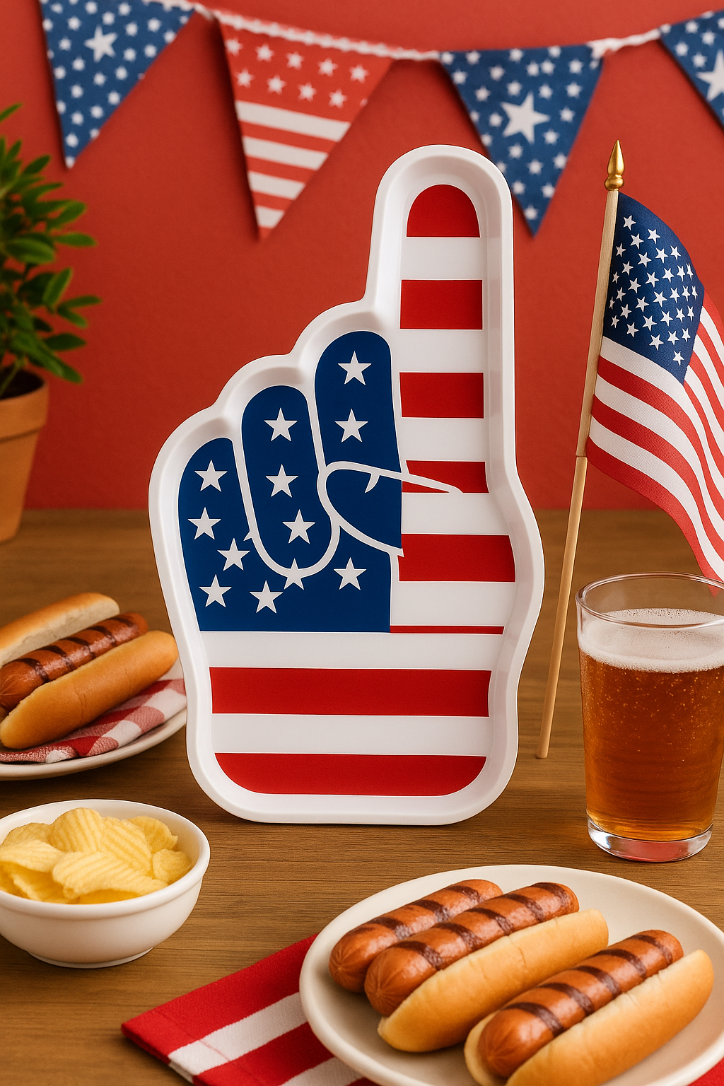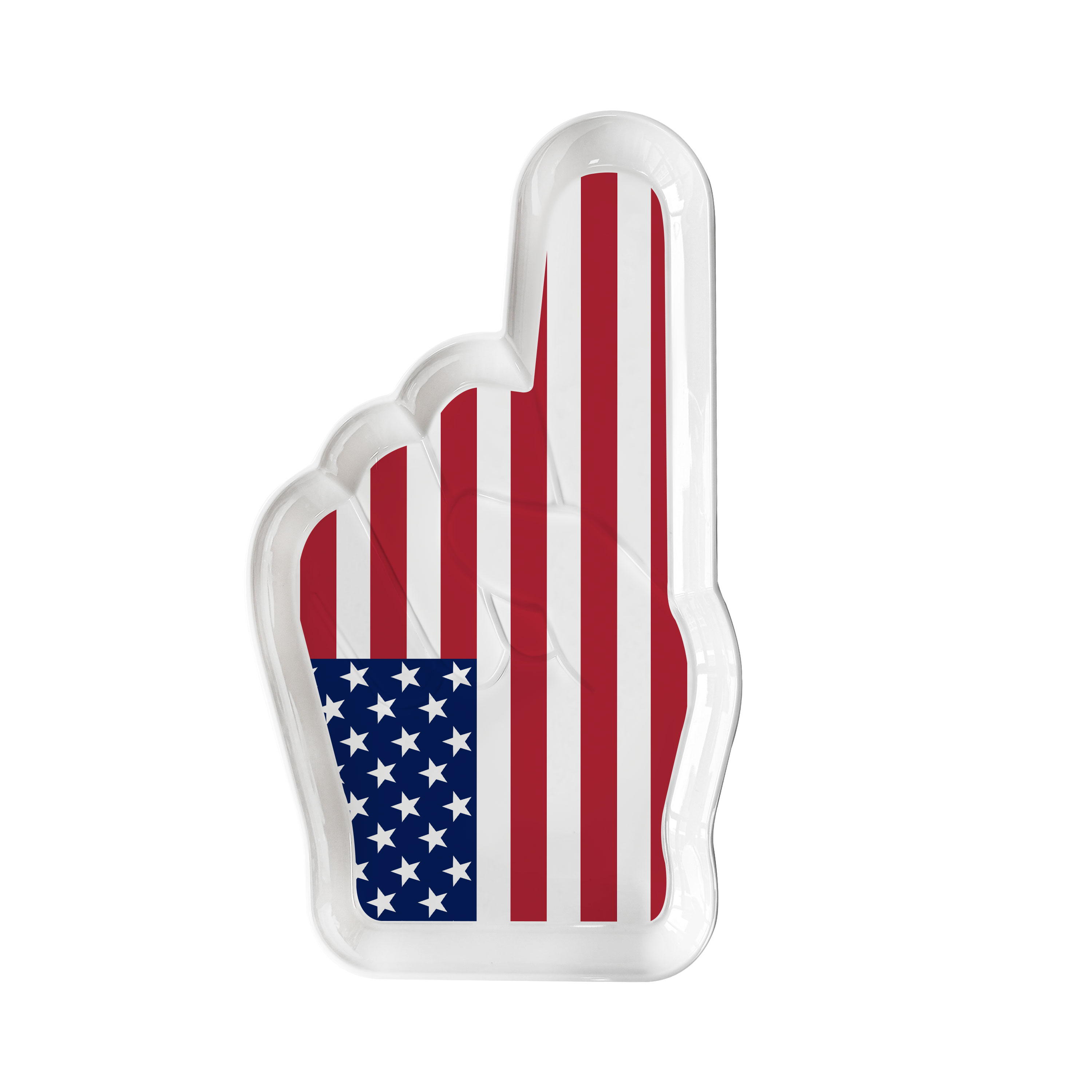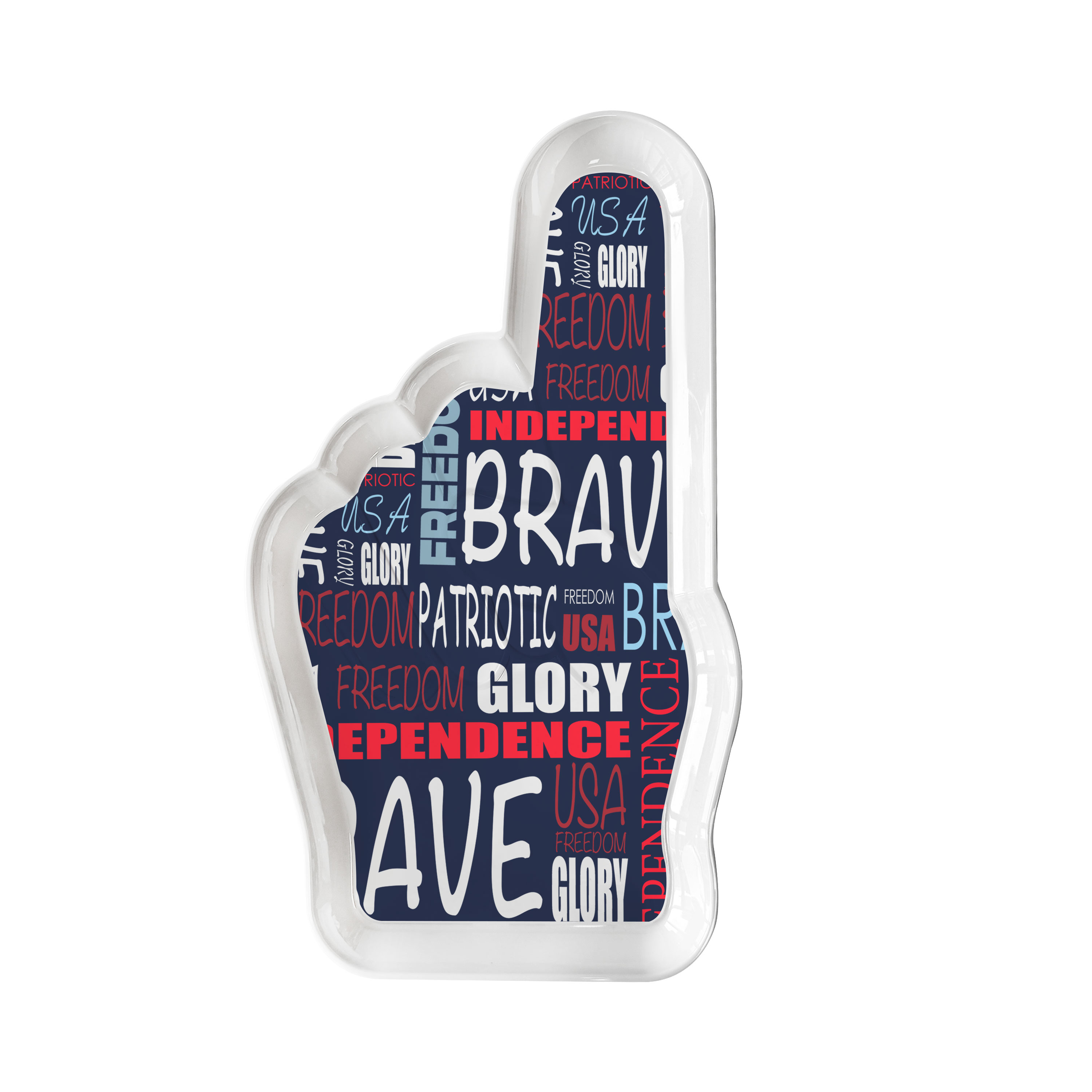 Features a bold patriotic graphic on a unique finger-shaped silhouette—ideal for sports events, fan merchandise programs, holiday promotions, and themed catering service.