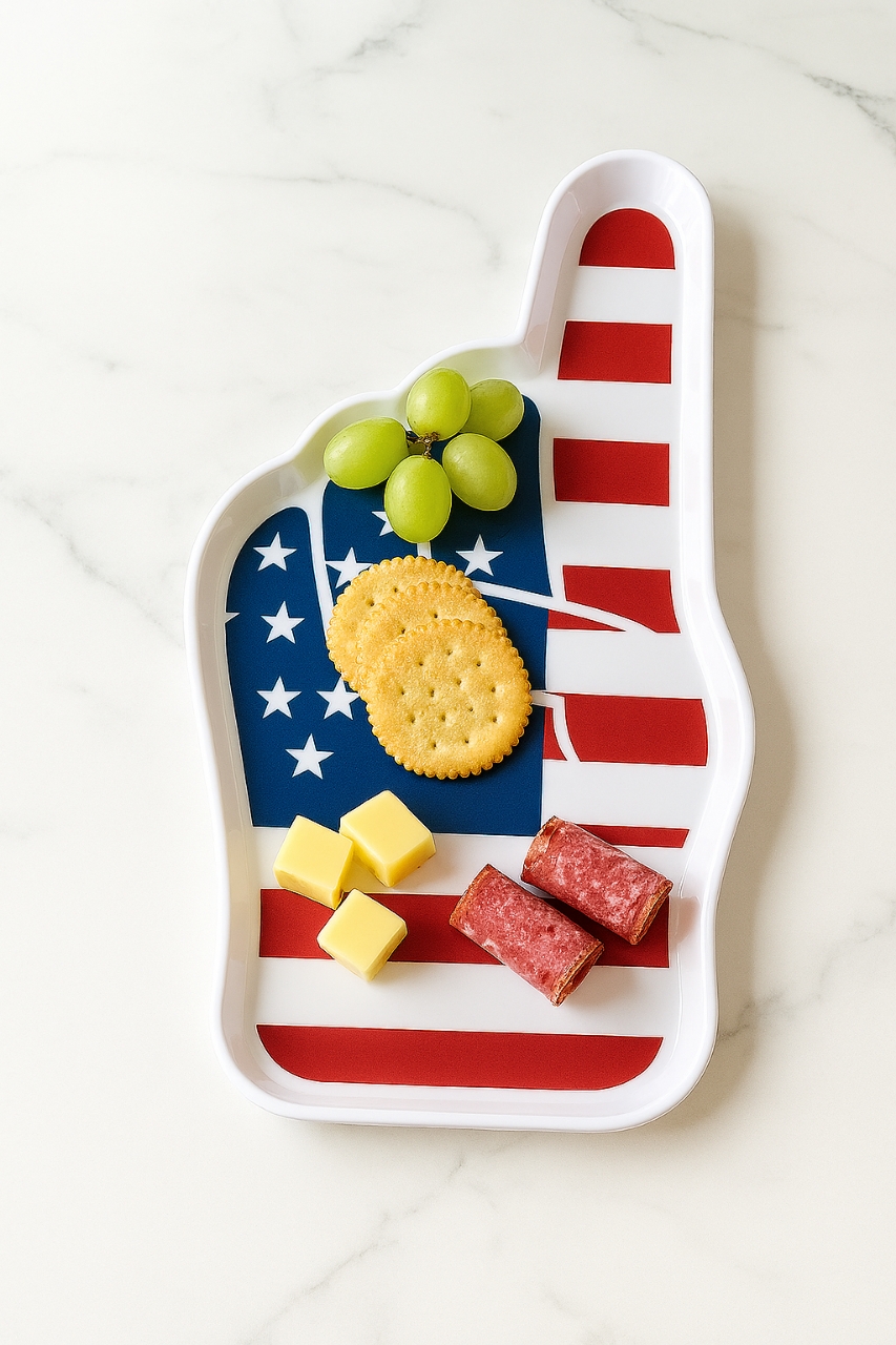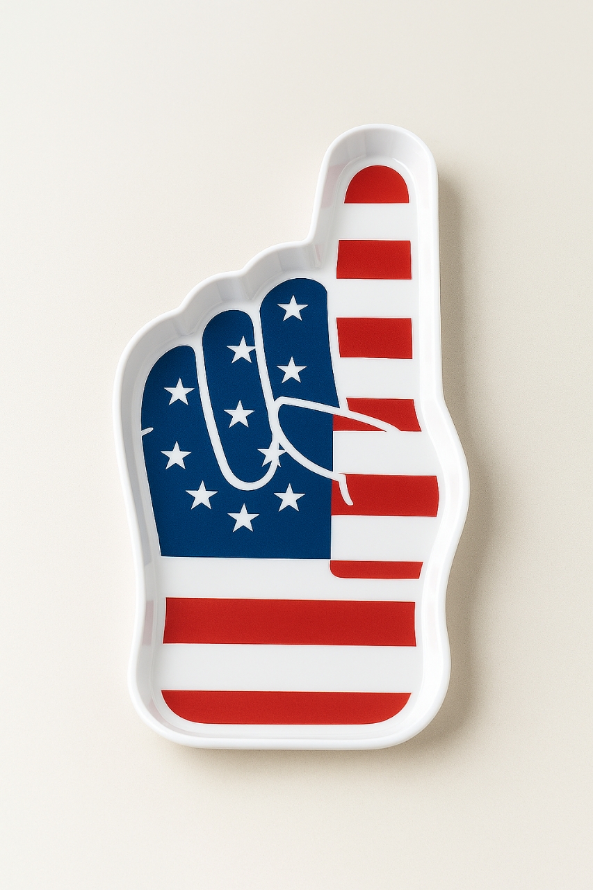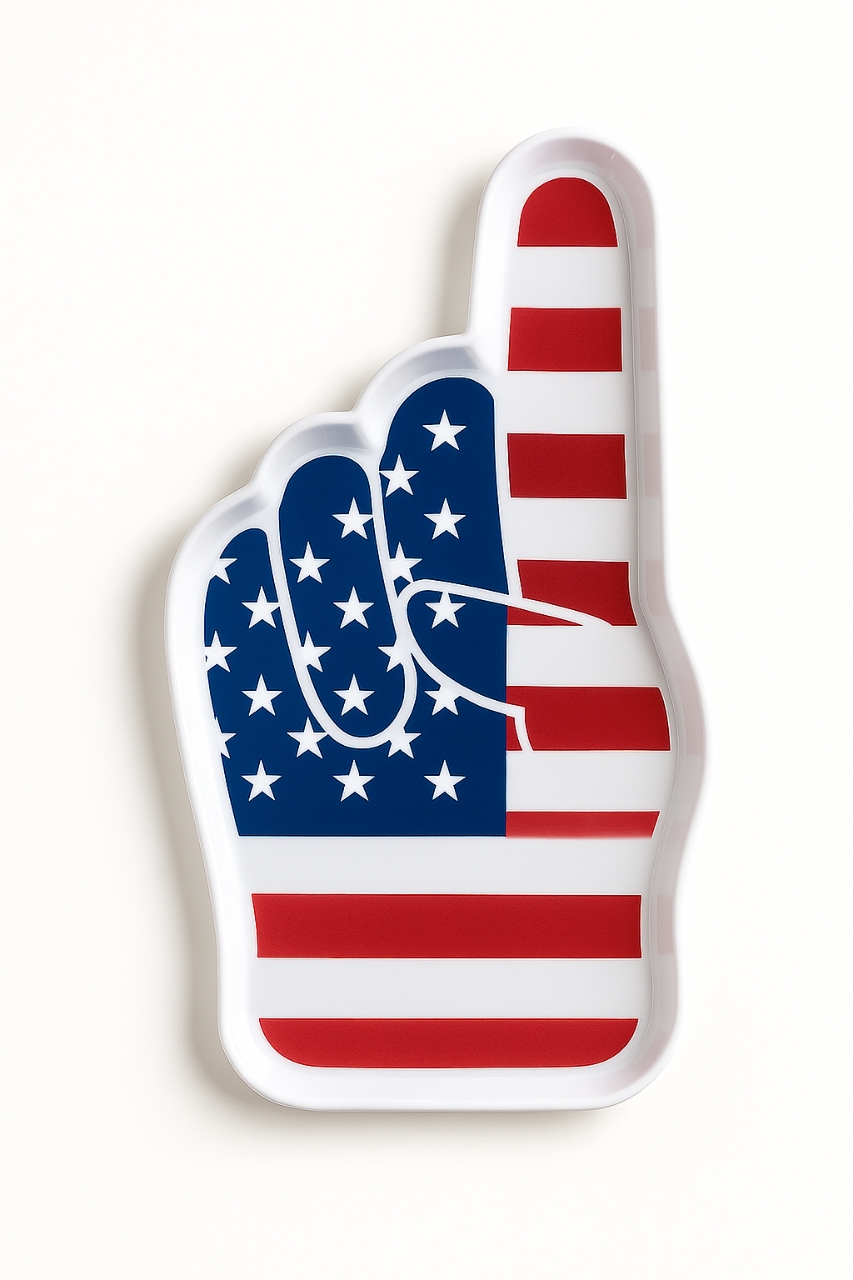 Features a bold patriotic graphic on a unique finger-shaped silhouette—ideal for sports events, fan merchandise programs, holiday promotions, and themed catering service.