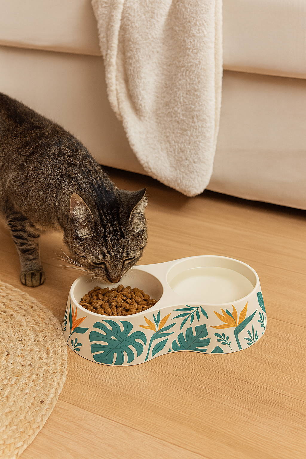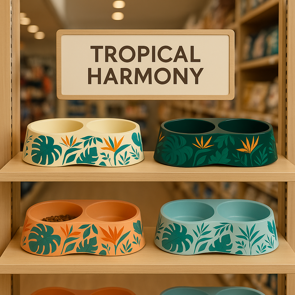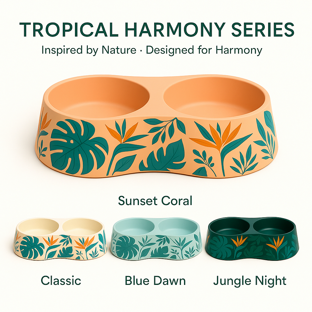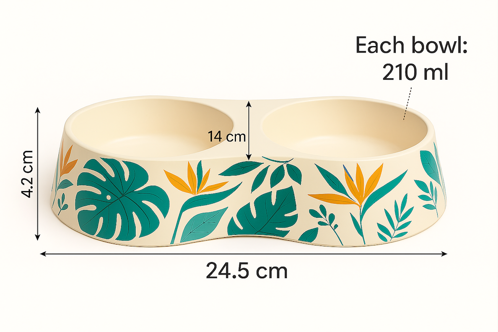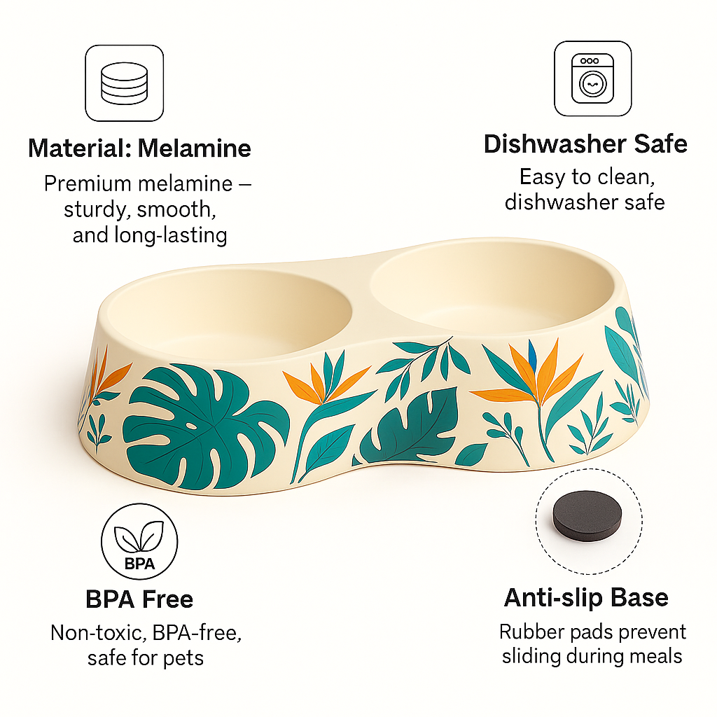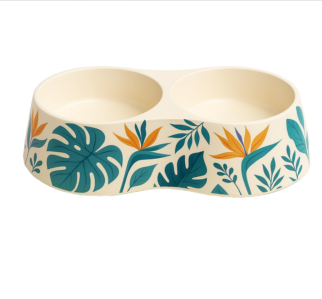🌿 Tropical Design – Tropical leaf and flower patterns bring a fresh, natural touch to your pet’s mealtime.