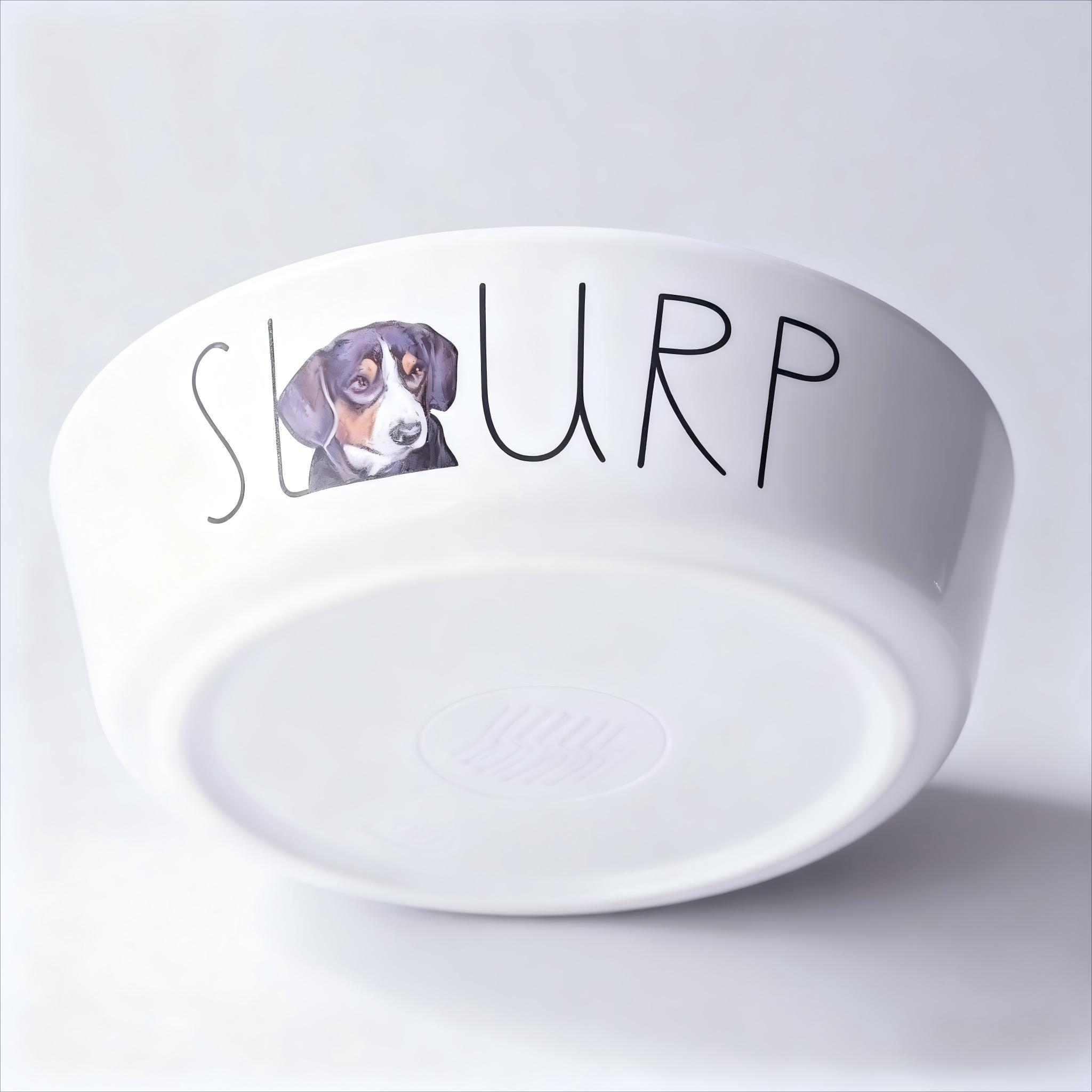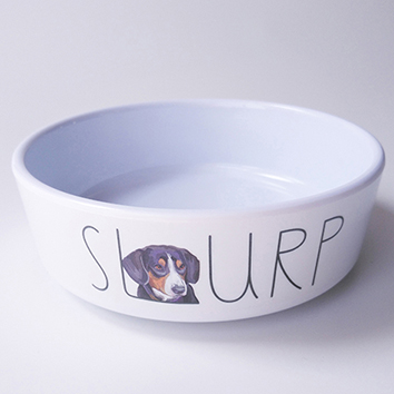 Design: 'SLURP' text with cartoon dog illustration