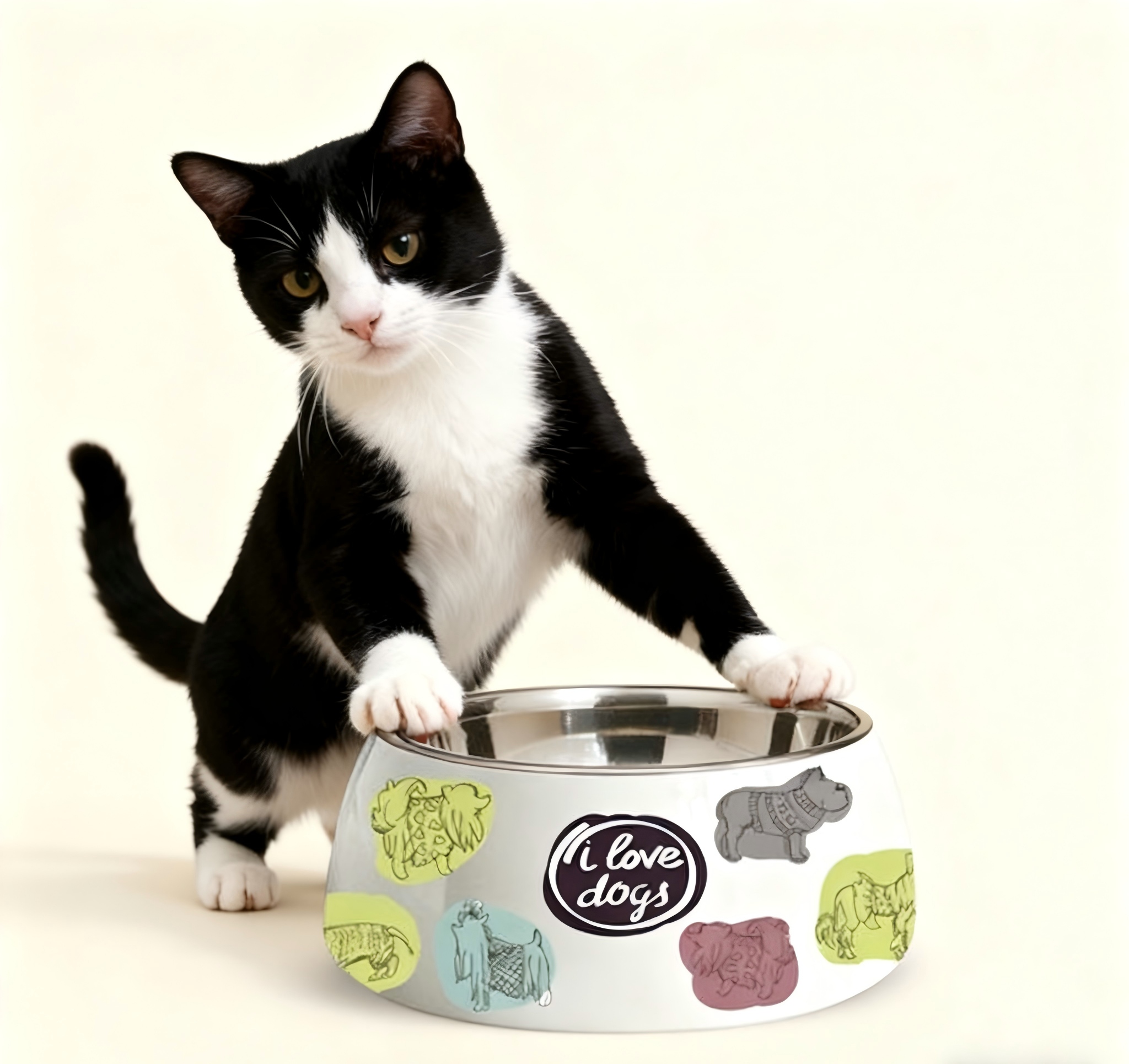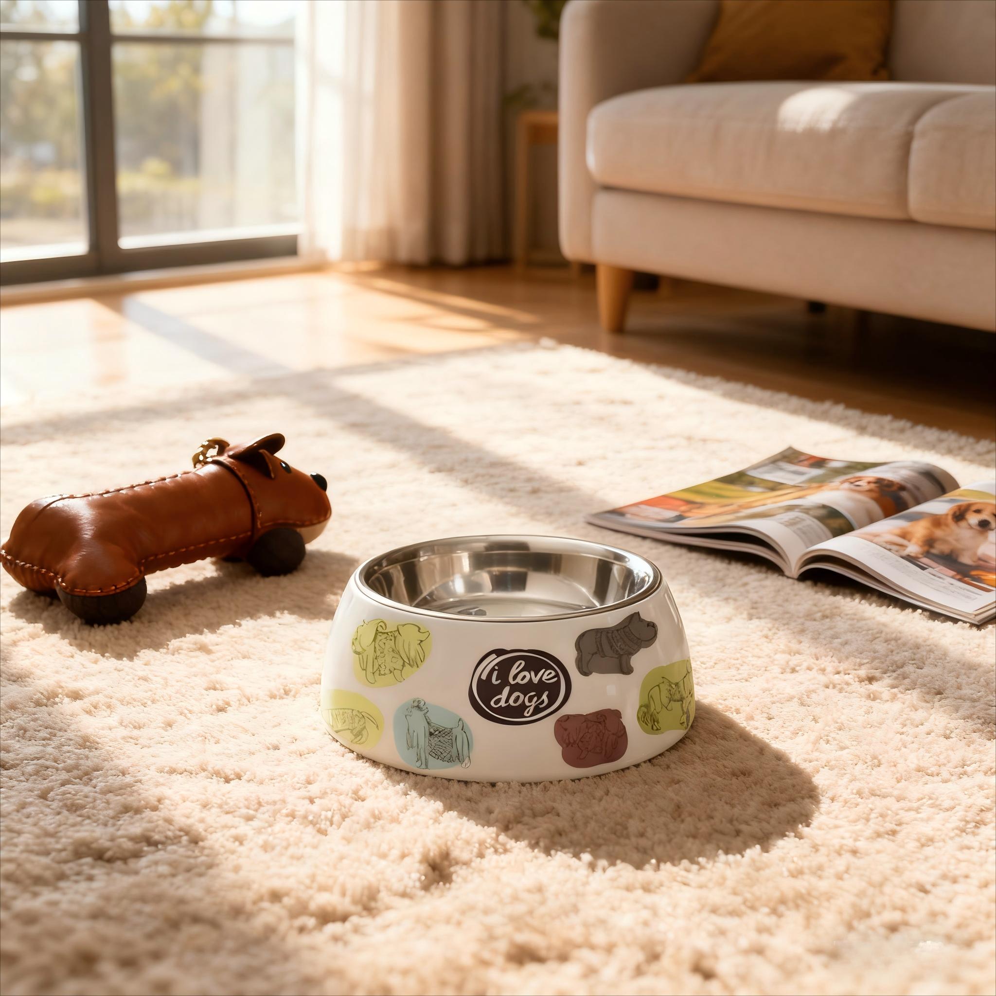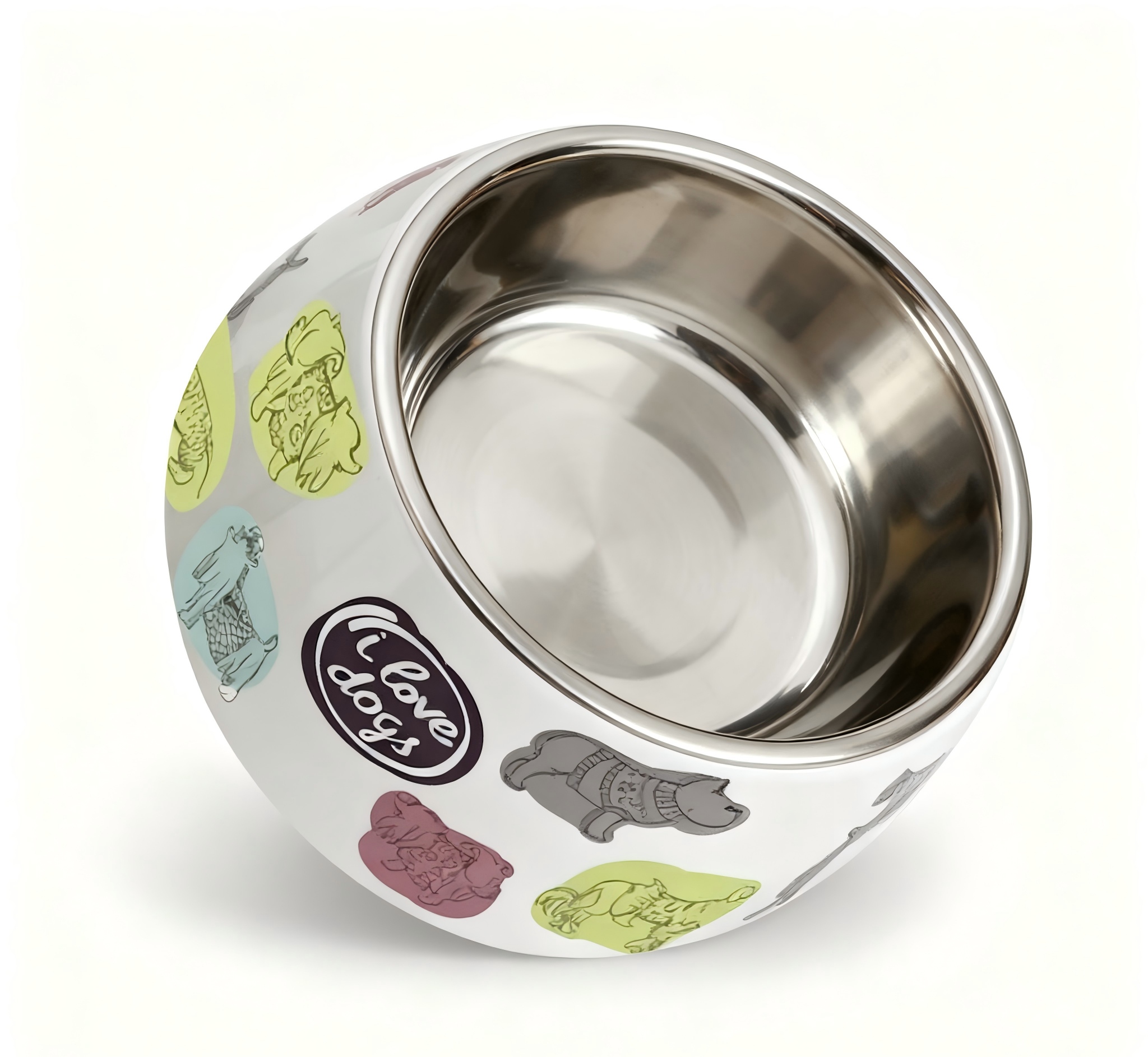Design: 'I Love Dogs' text with colorful illustrated dogs