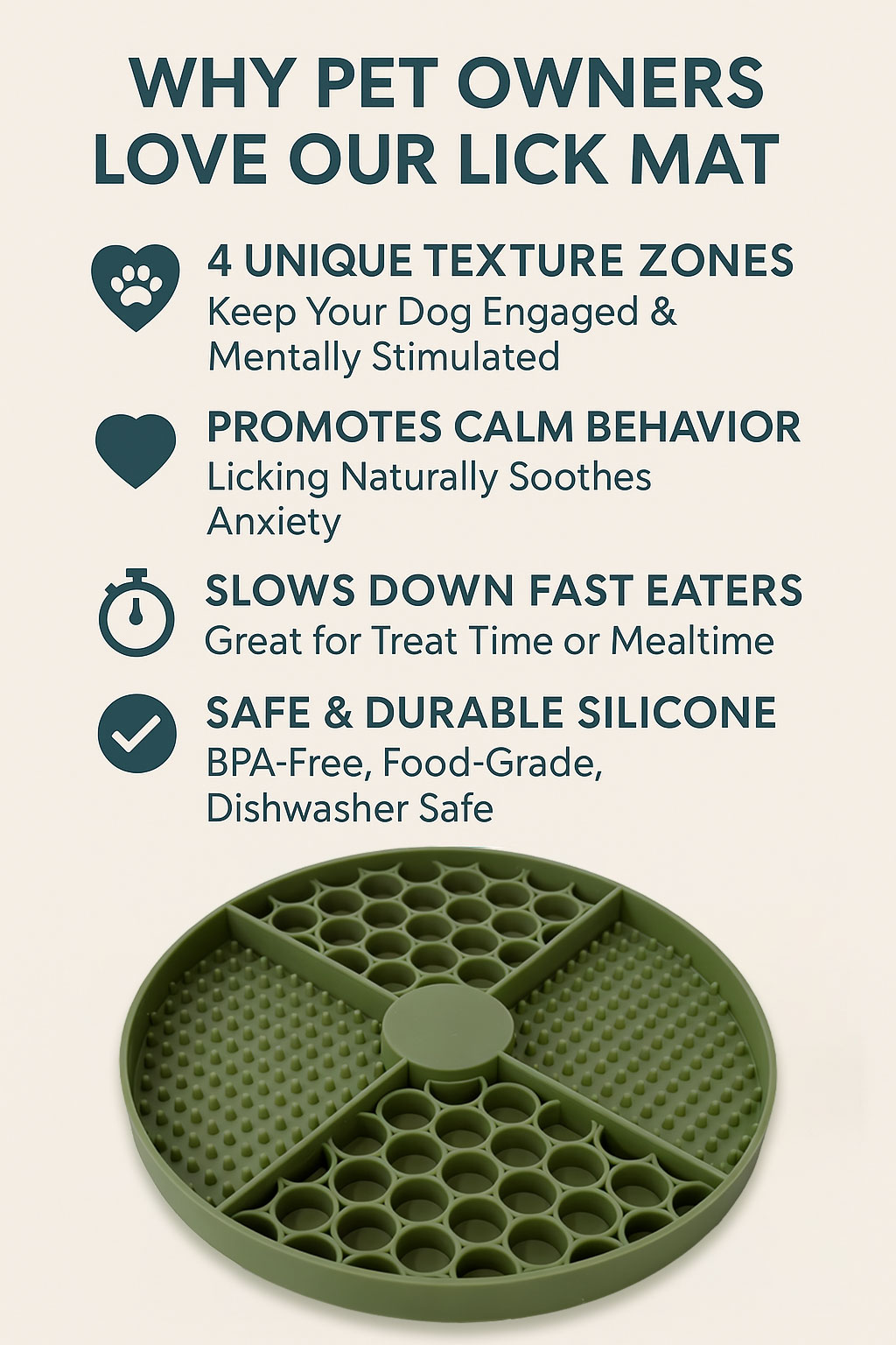Bring balance and calm to your dog’s day with the Sage Serenity™ Multi-Texture Silicone Lick Mat for Dogs.
