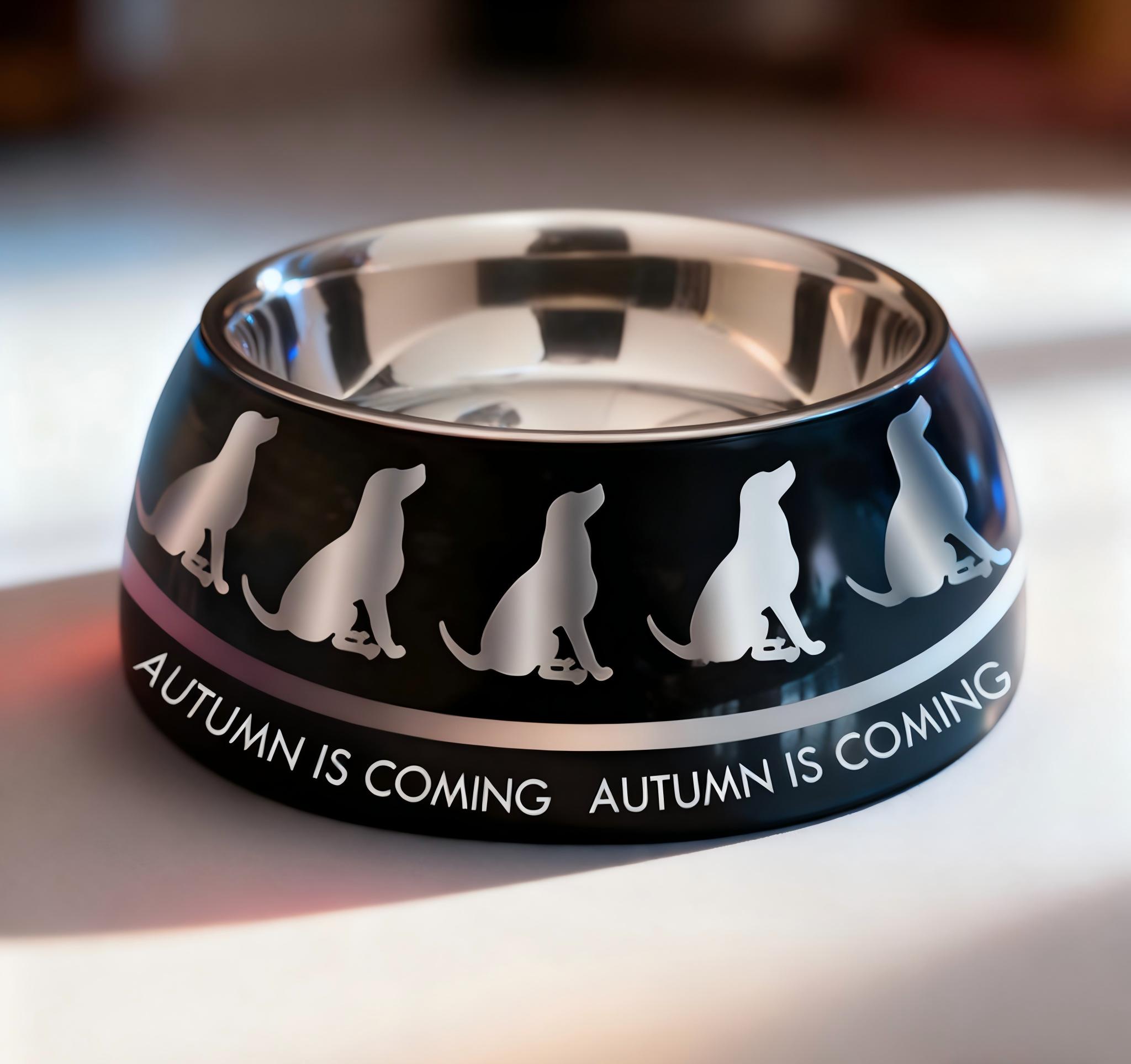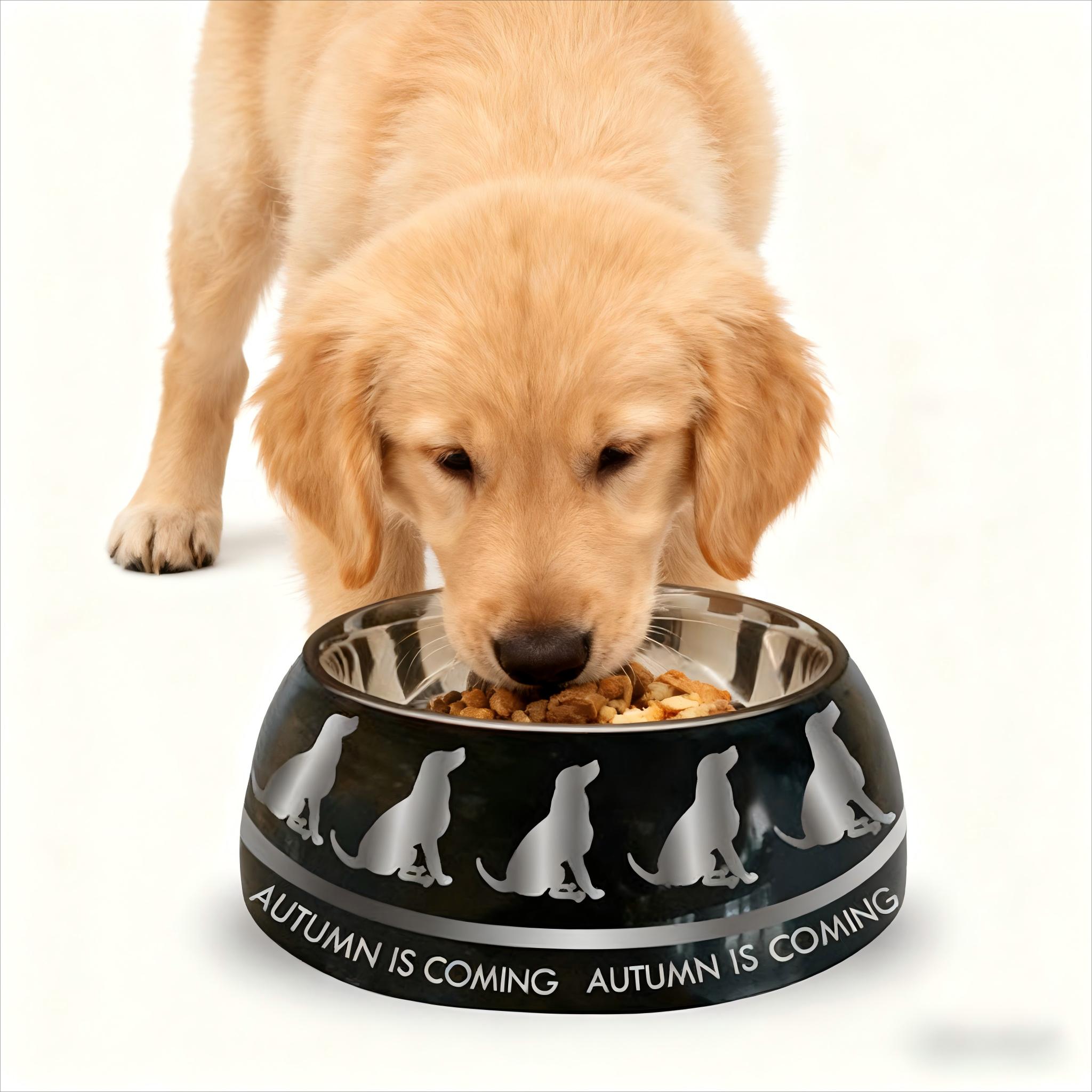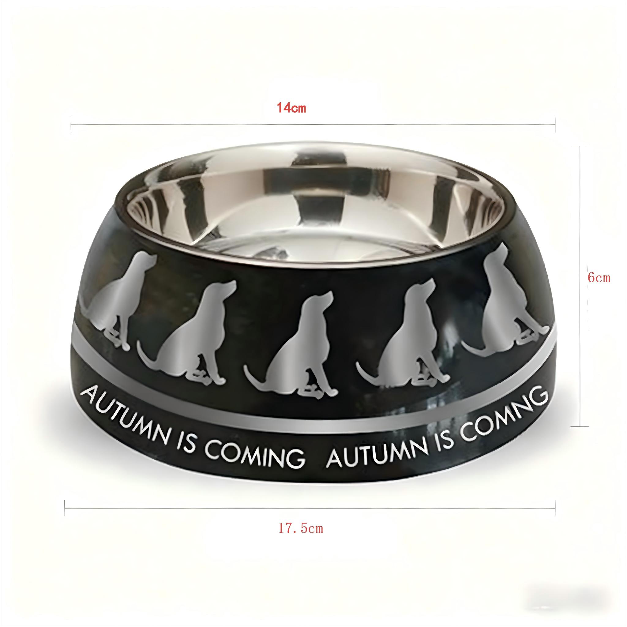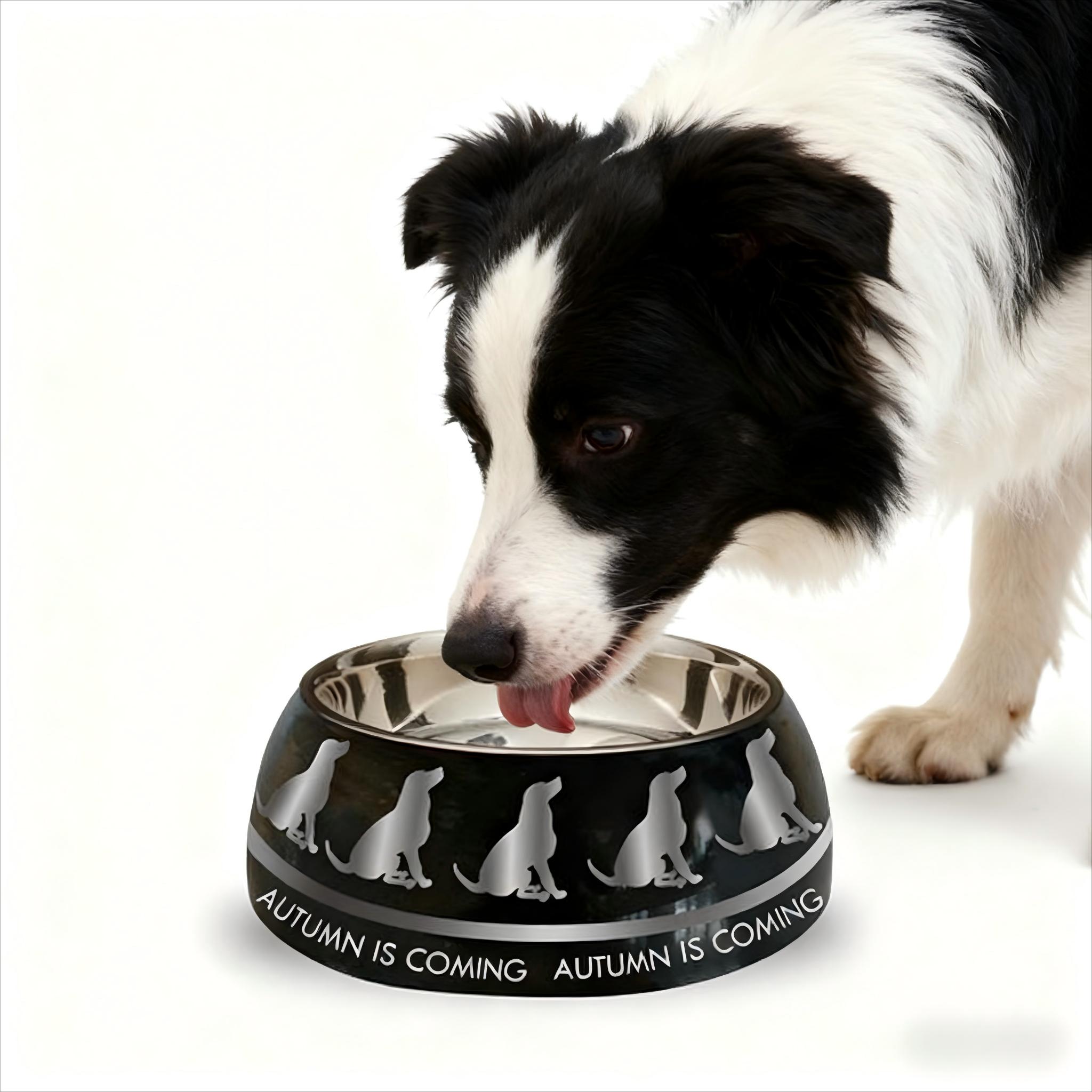 With sleek dog silhouettes and a seasonal “AUTUMN IS COMING” design, this pet bowl features a durable melamine base and removable stainless steel insert. Ideal for dogs, it’s stylish, stable, and easy to clean.