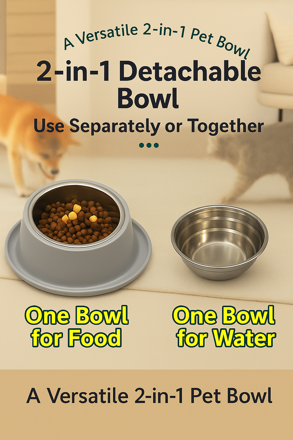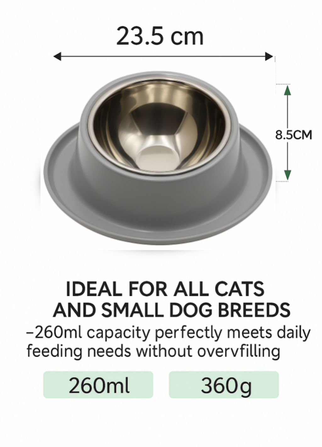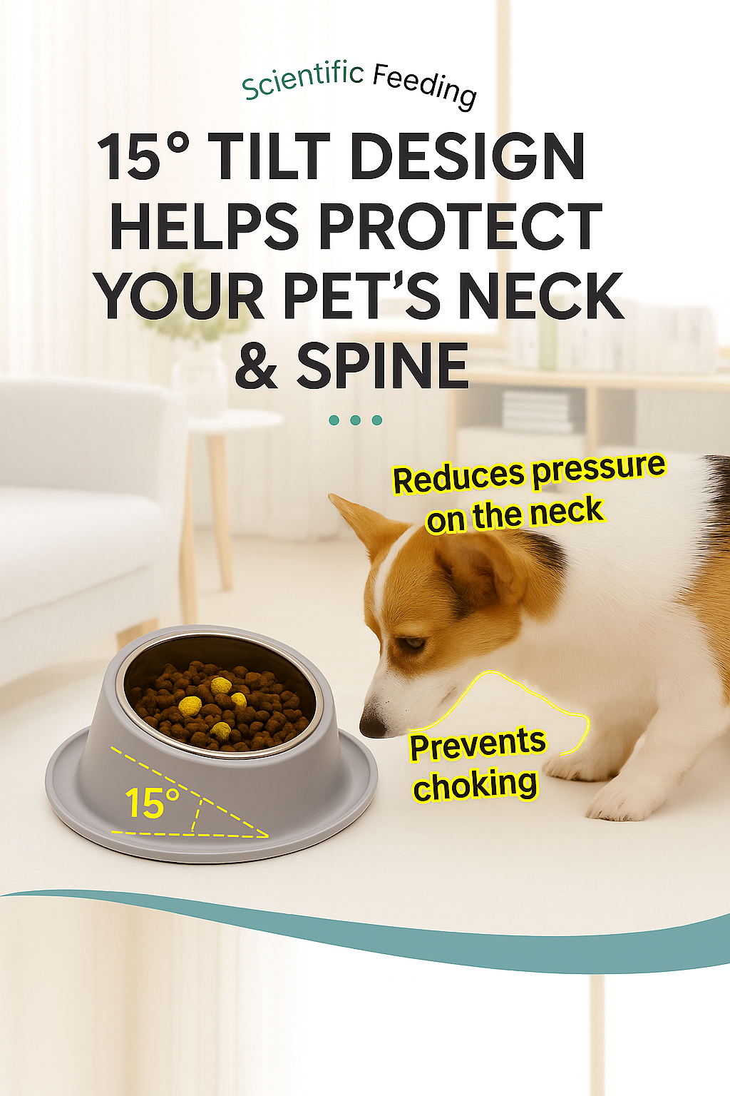 This anti-slip melamine pet bowl features a 15° tilt to reduce strain on your pet’s neck and support digestion. The 2-in-1 design includes a stainless steel bowl and durable melamine base, both easy to clean and use separately. Rubber pads on the bottom keep the bowl in place. Ideal for cats and small dogs.