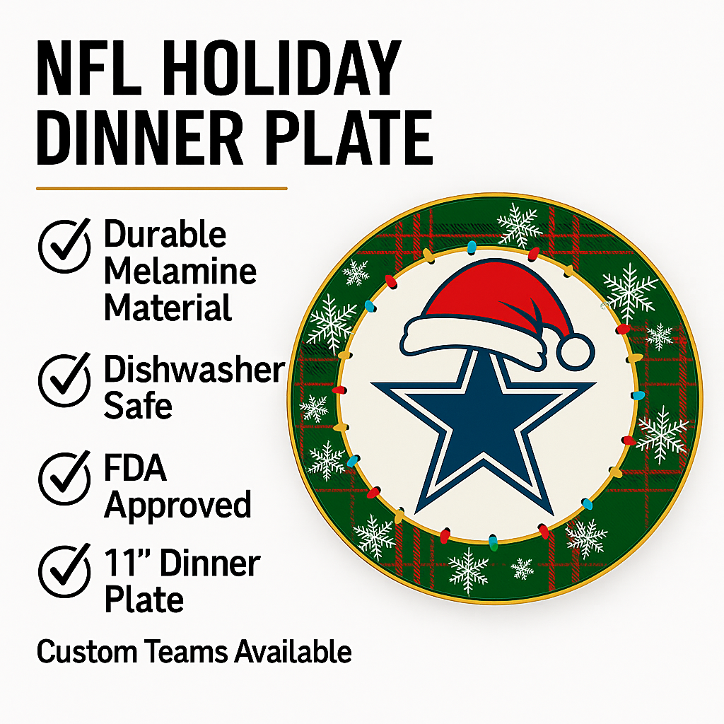Celebrate the holidays with our NFL Melamine Dinner Plates — the perfect mix of football spirit and festive cheer.