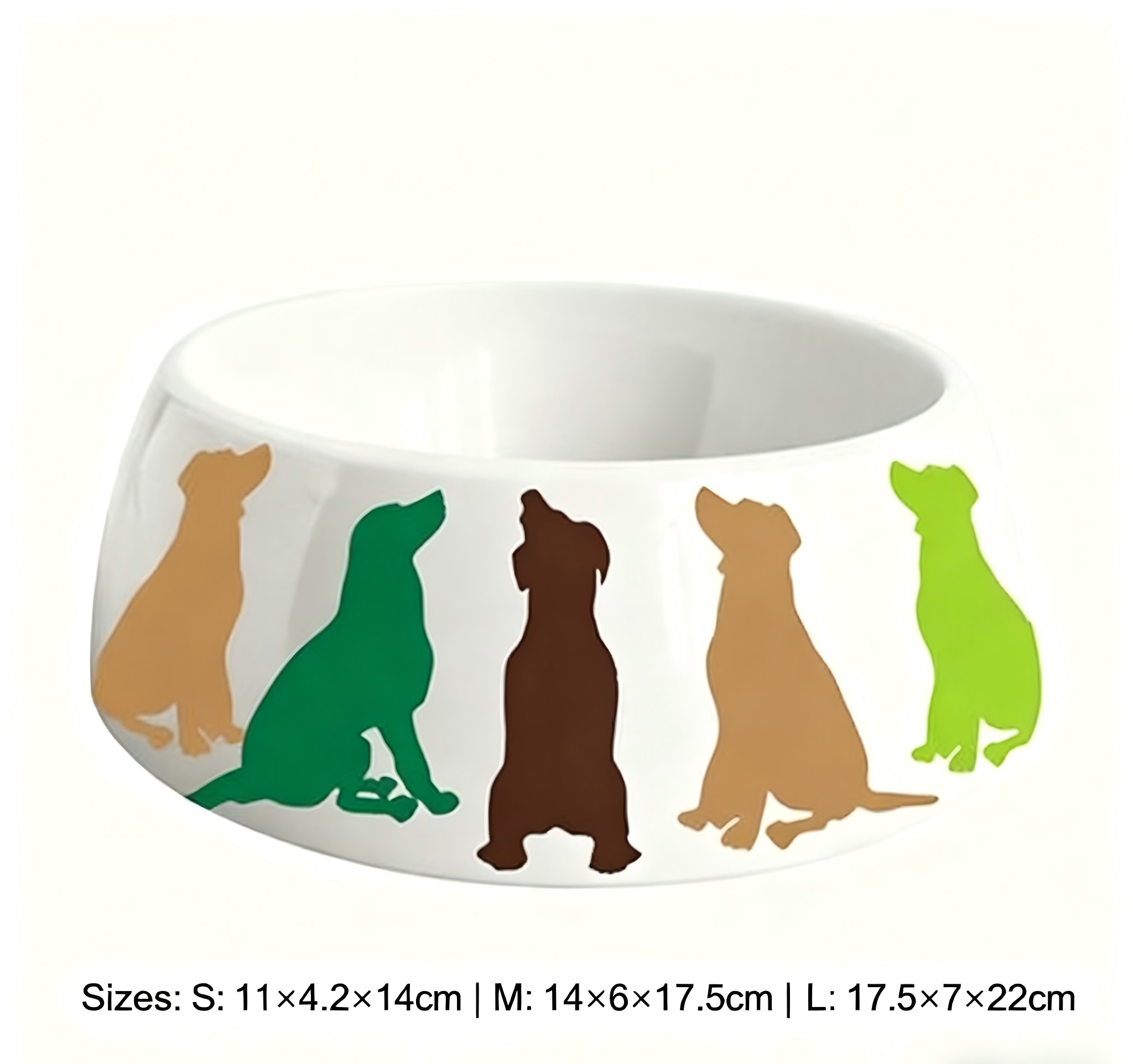 This stylish and durable melamine pet bowl is designed for everyday use and easy cleaning. With a colorful dog silhouette design, it adds a playful touch to your pet’s mealtime routine.