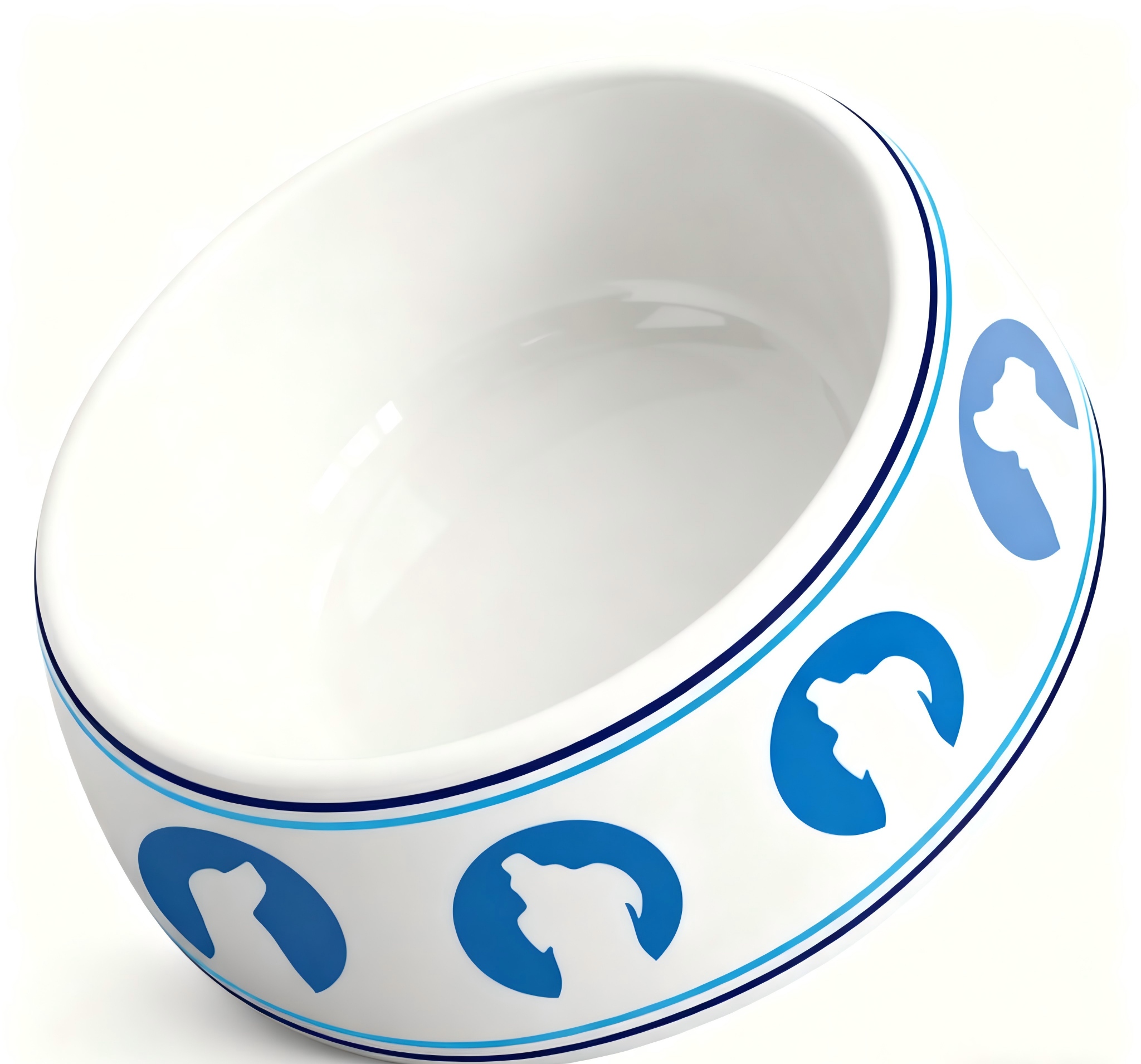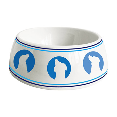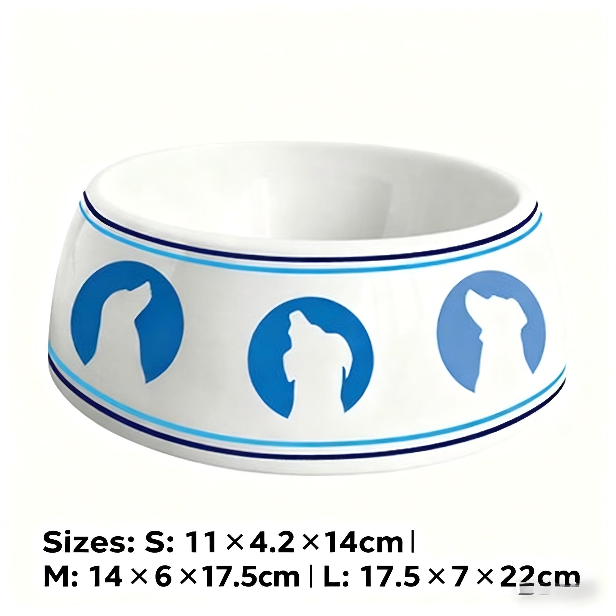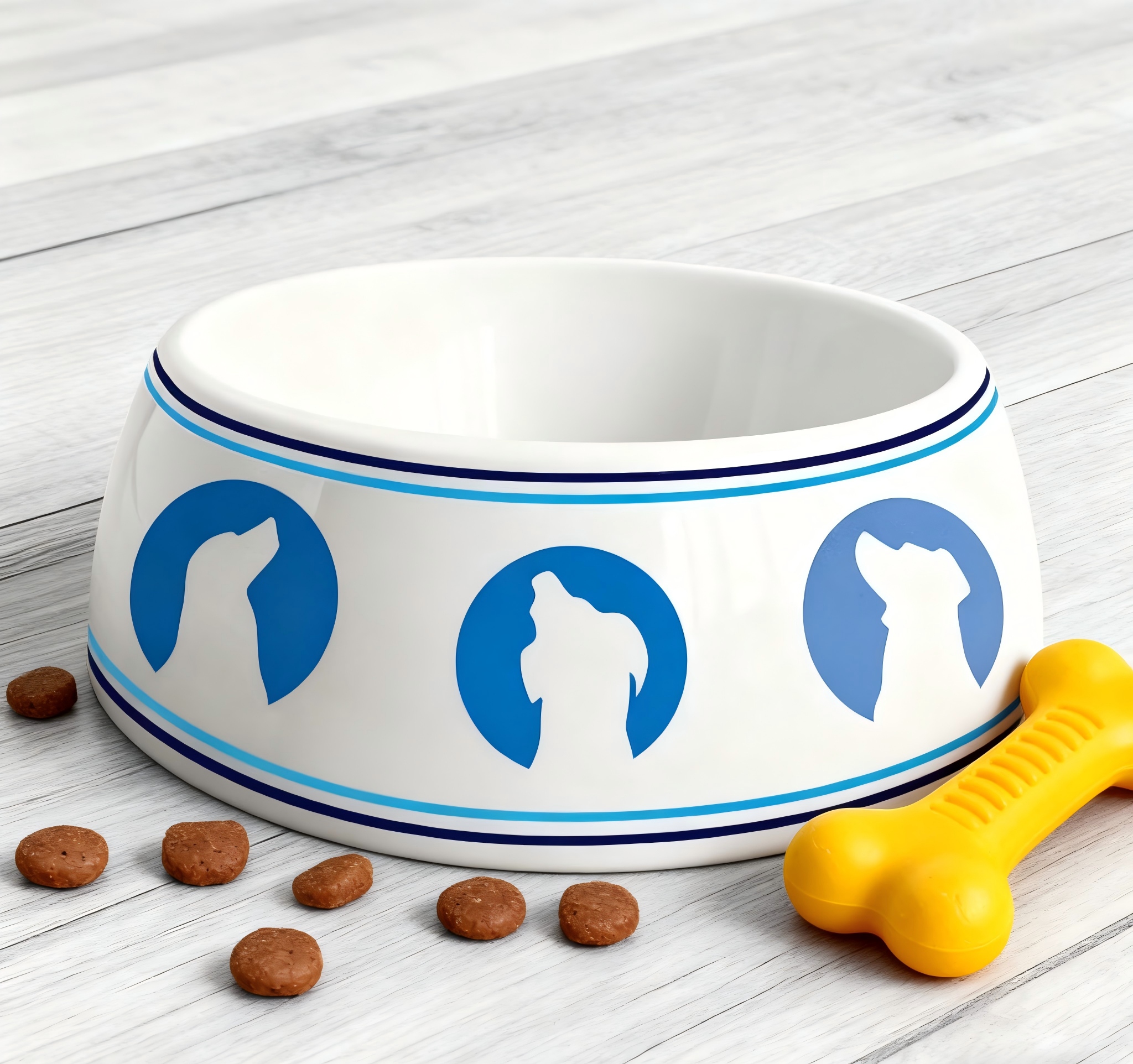 Serve your pet in style with this sleek melamine pet bowl featuring a clean white finish and blue dog silhouette accents. Designed to combine safety, durability, and aesthetics.