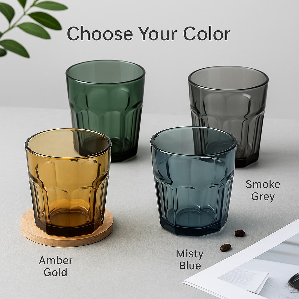 Four Elegant Colors – Smoke Gray, Amber, Forest Green, Ice Blue.