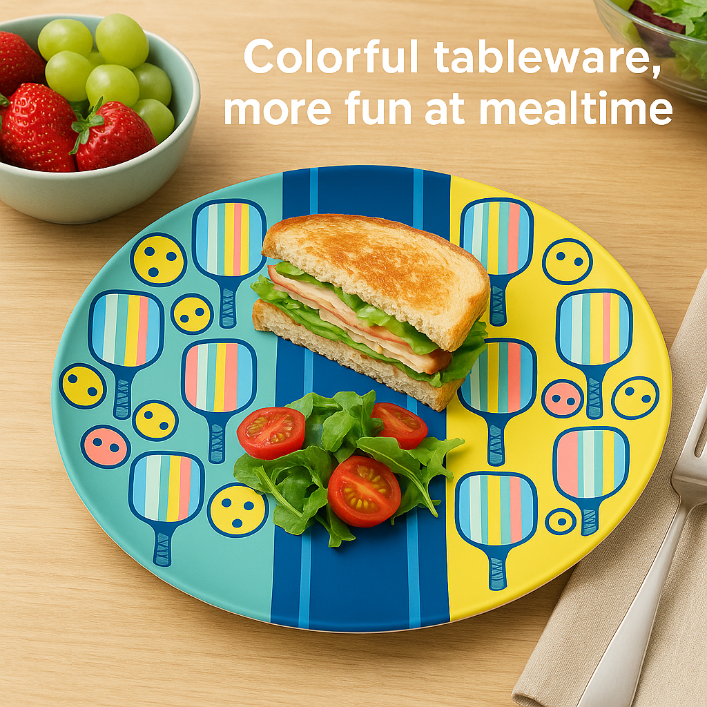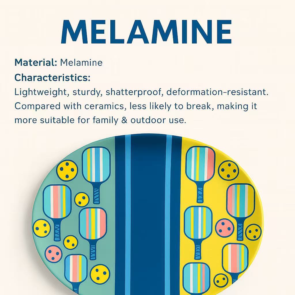Elevate your collection with our Premium Melamine Tableware Series, designed with a unique pickleball-inspired pattern that blends modern aesthetics with playful energy. Crafted from lightweight, shatter-resistant melamine, this series offers large and small plates, cups, and chip & dip trays, ensuring a cohesive, versatile solution for dining, retail, and hospitality.