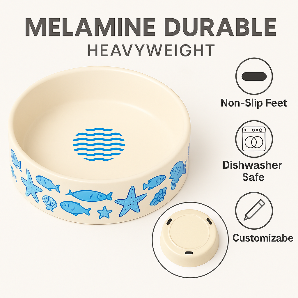 Add personality to your pet essentials with our blue ocean theme melamine pet bowl – where thoughtful design meets everyday function. 🐾