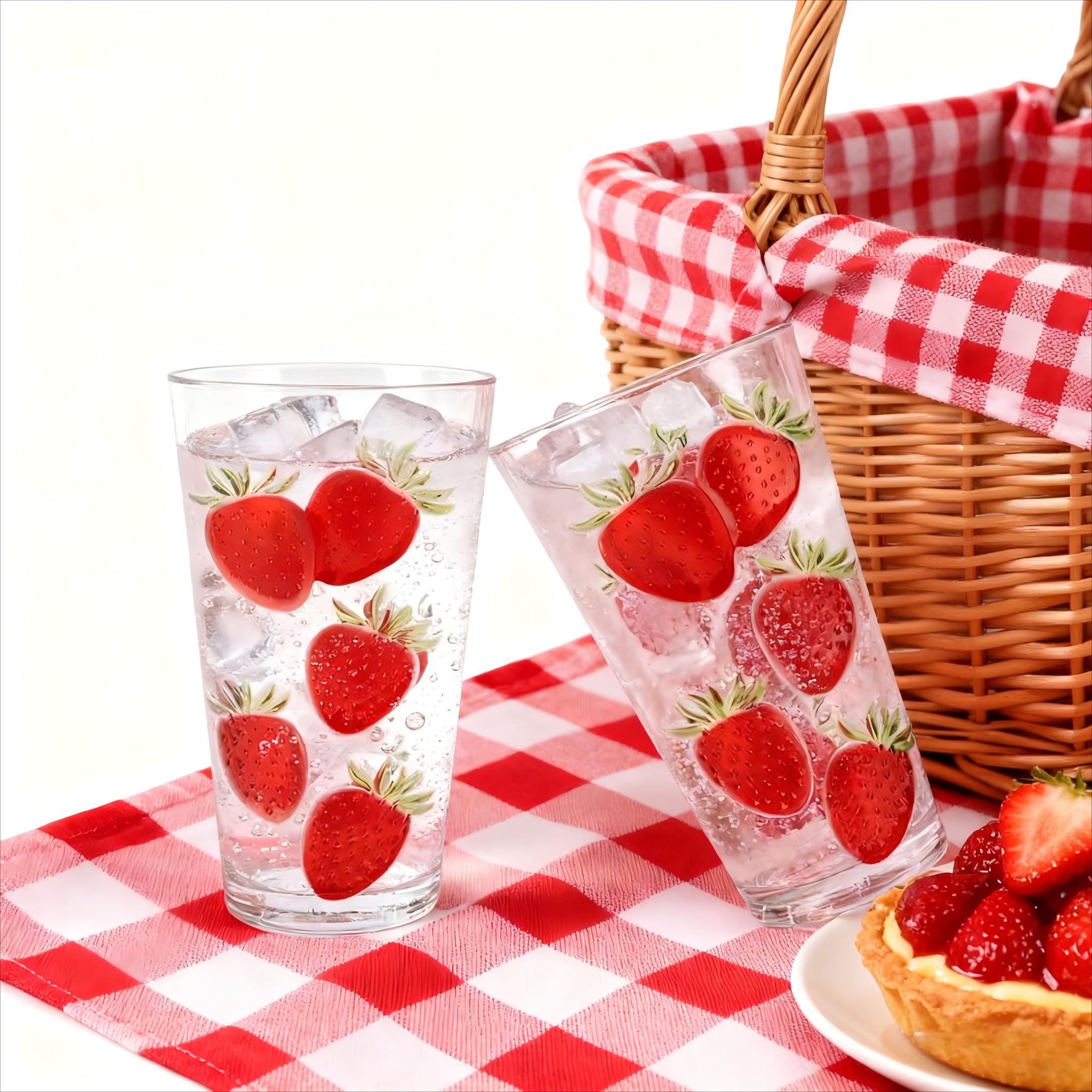 Strawberry Printed Glass Cup | 400ml-2500ml High Borosilicate Drinkware
