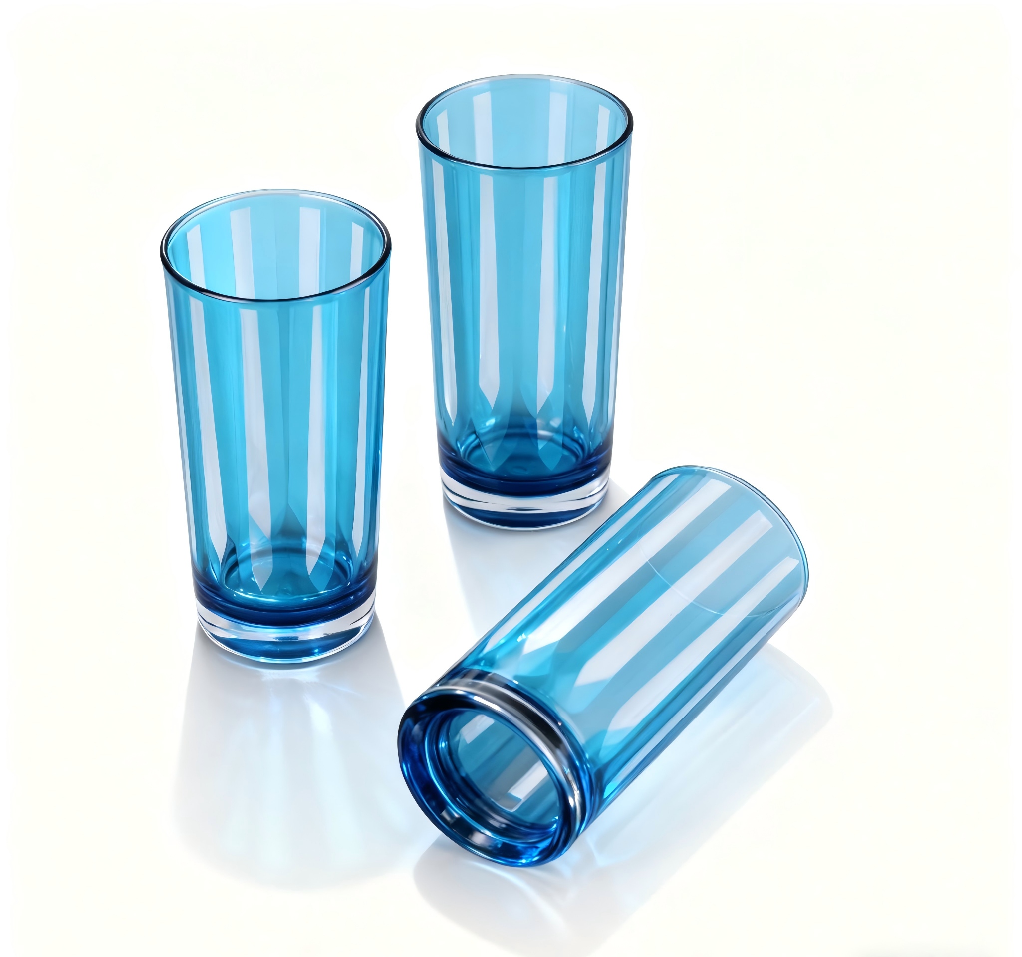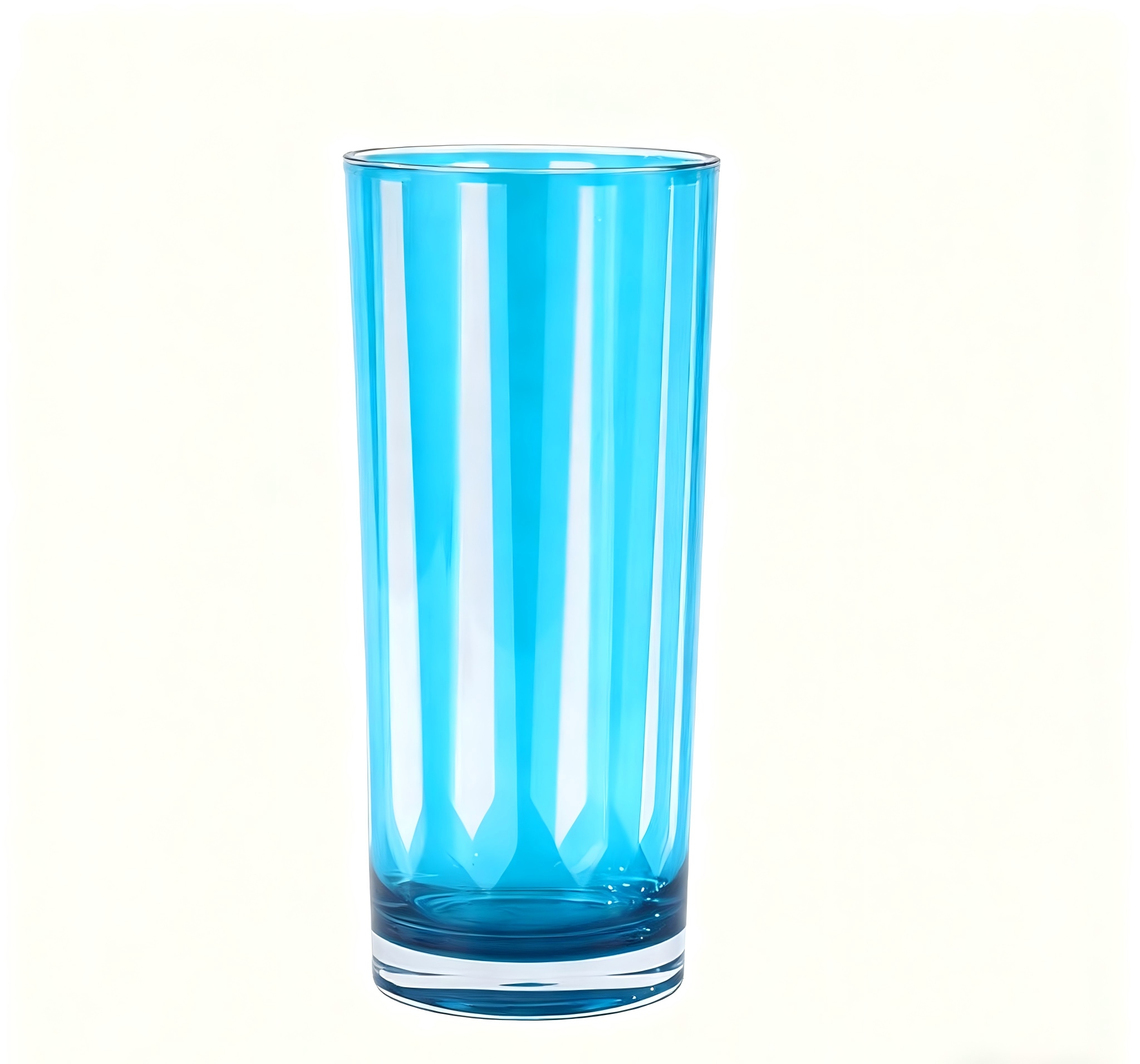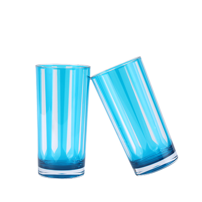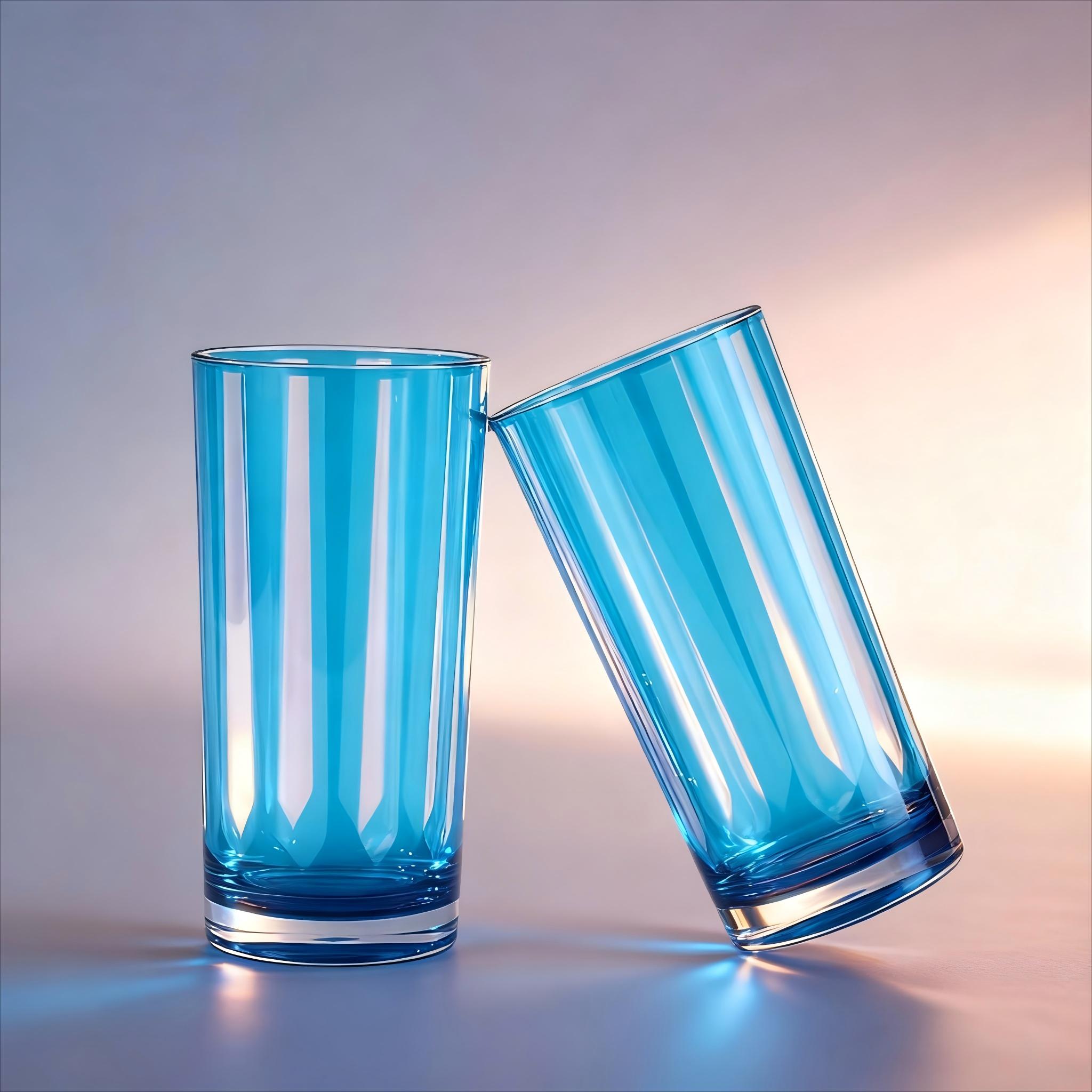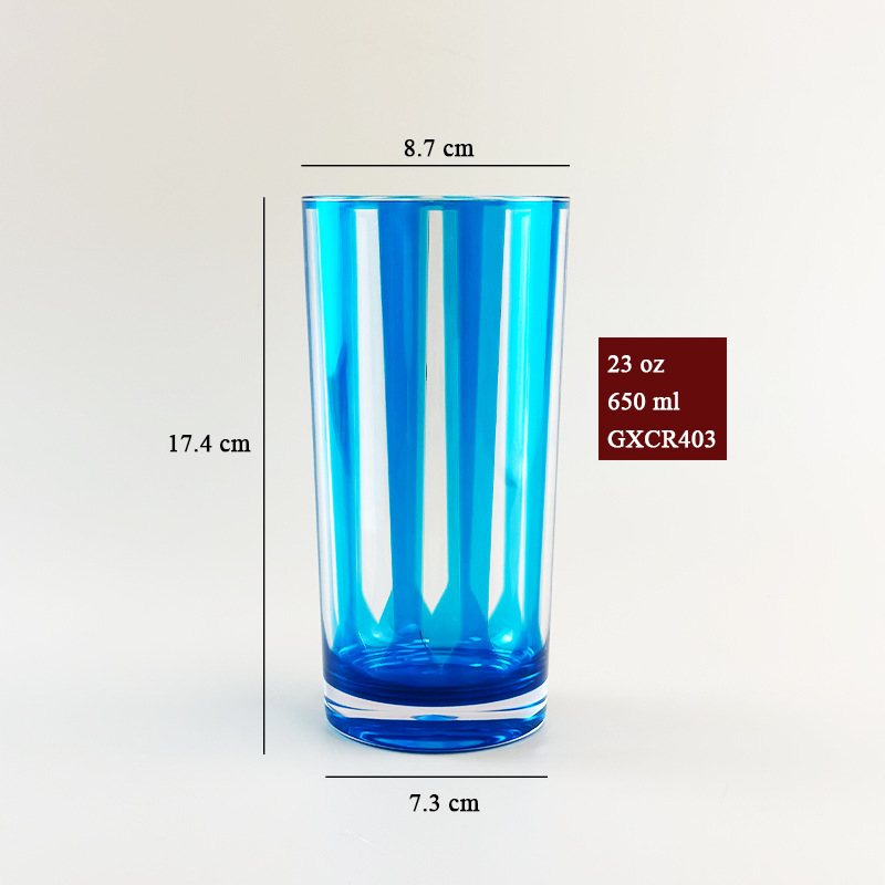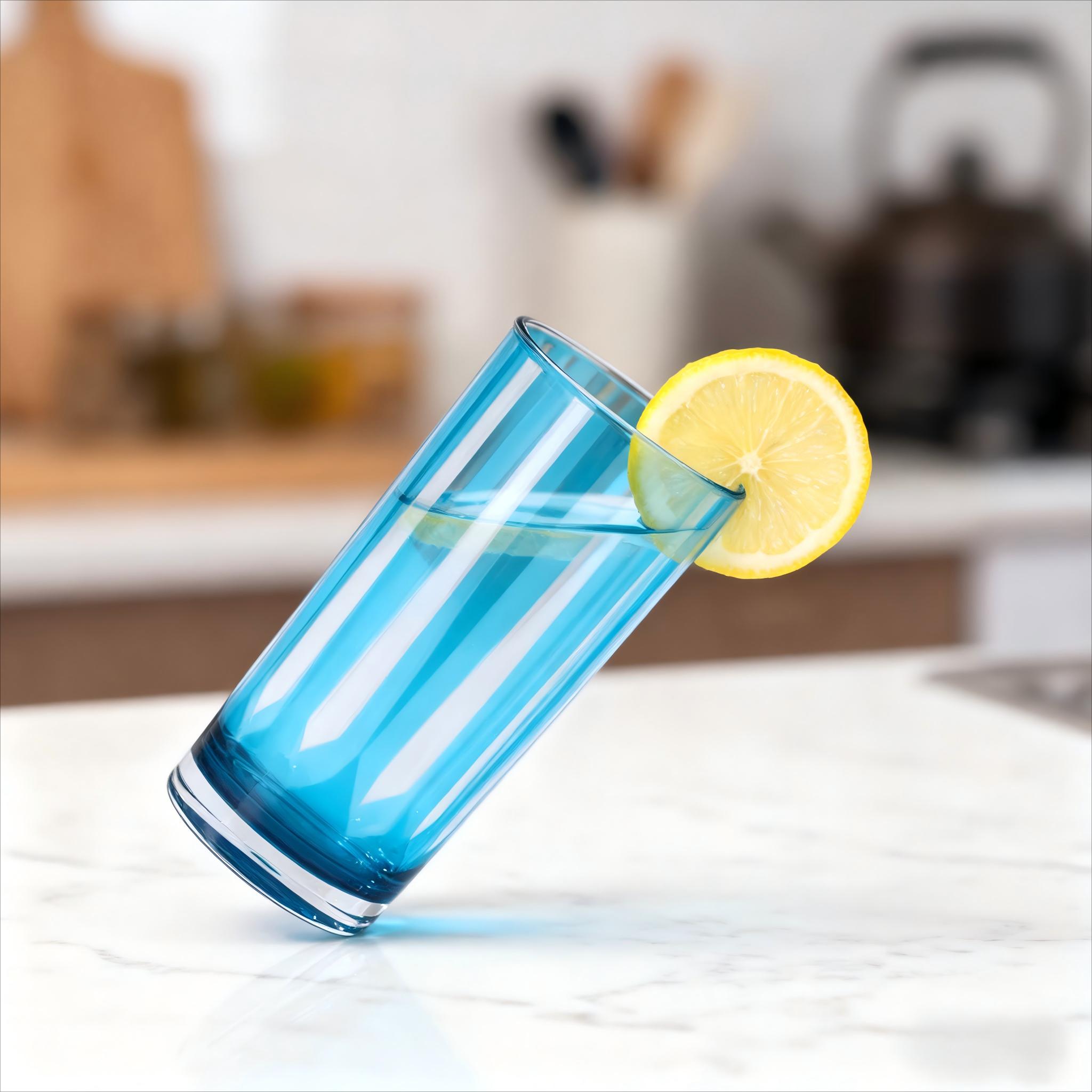 This tall blue striped glass cup is both functional and stylish, made from borosilicate glass with a generous capacity range. Ideal for water, juice, or cocktails at home or in restaurants.
