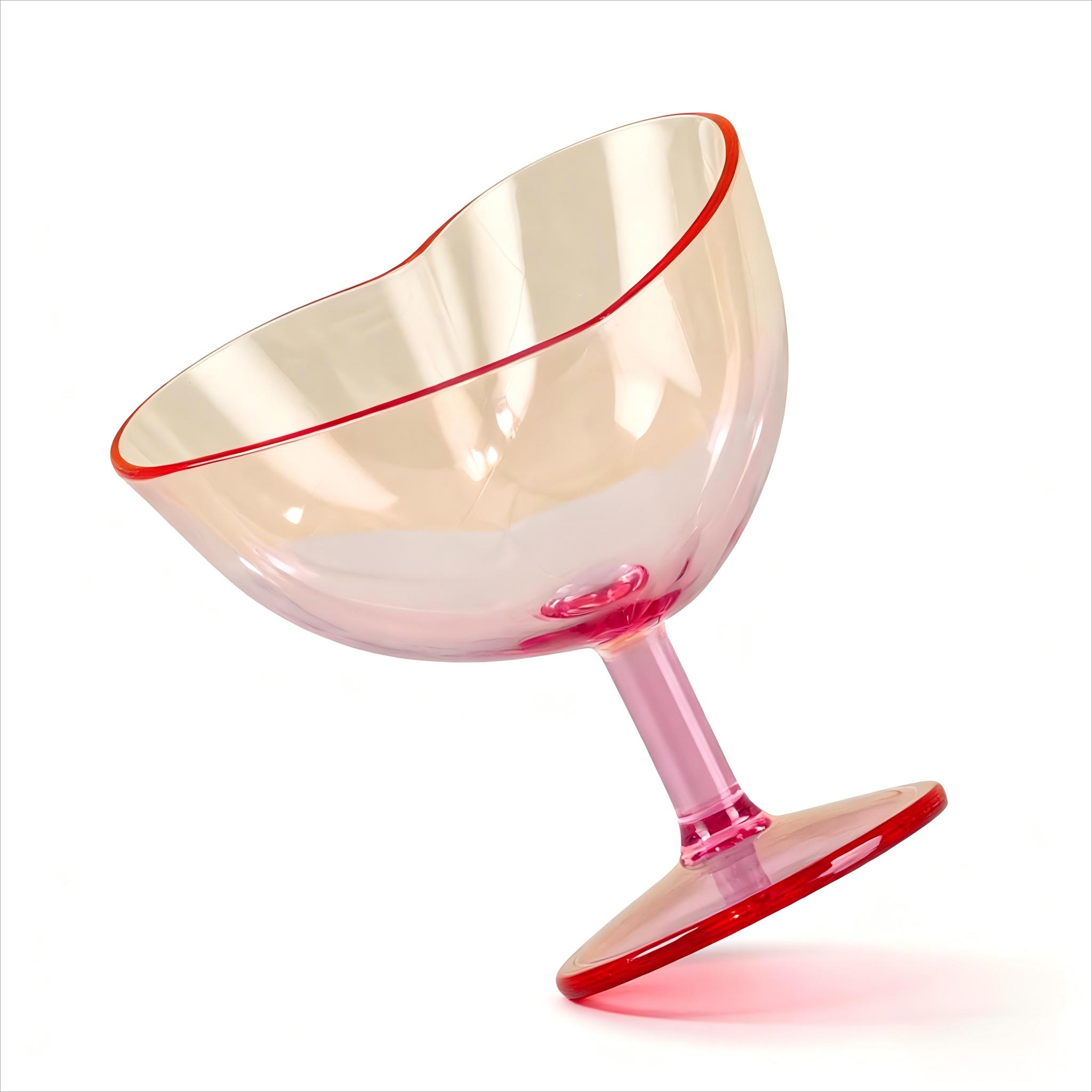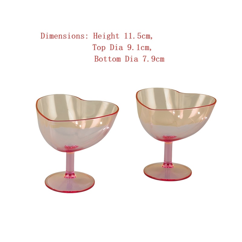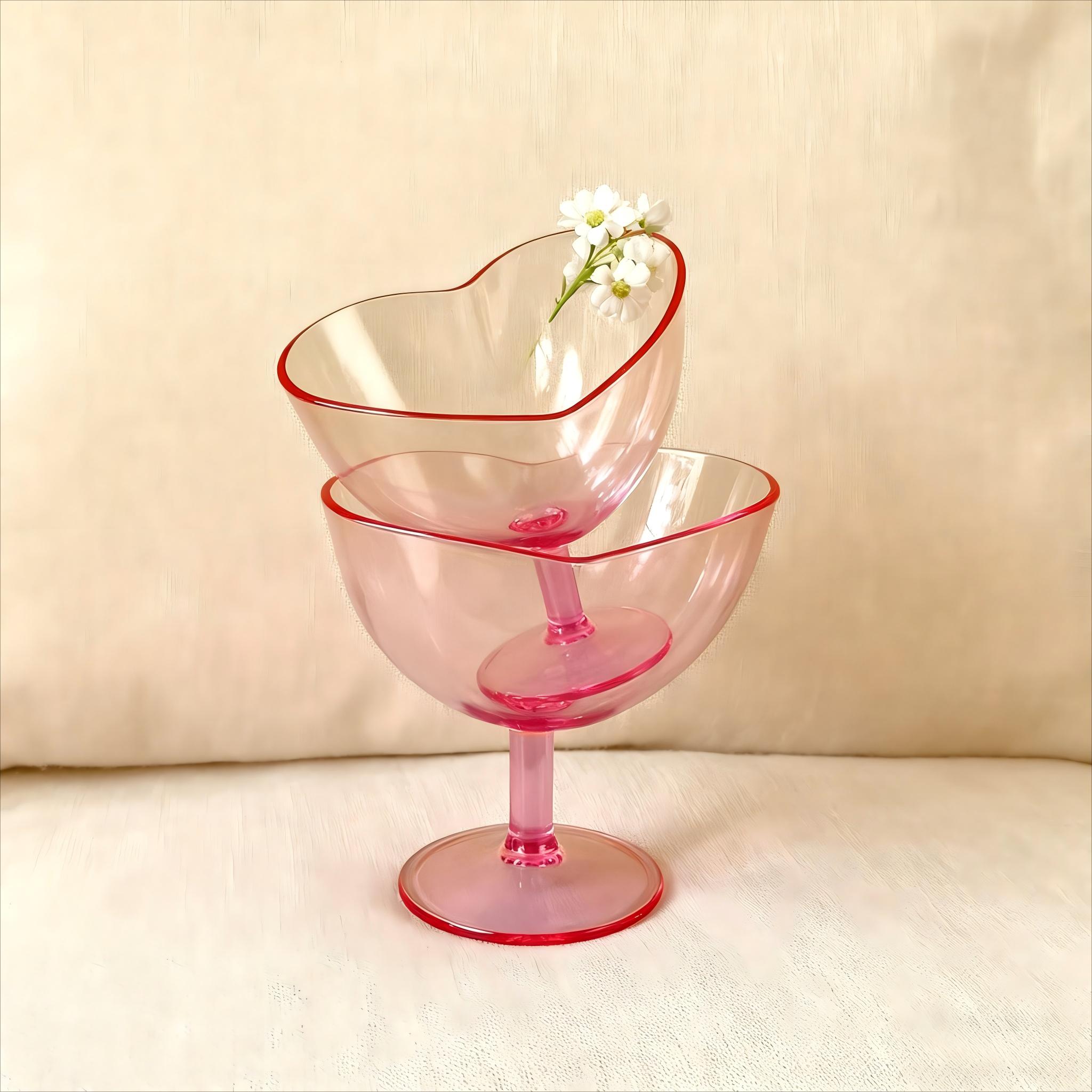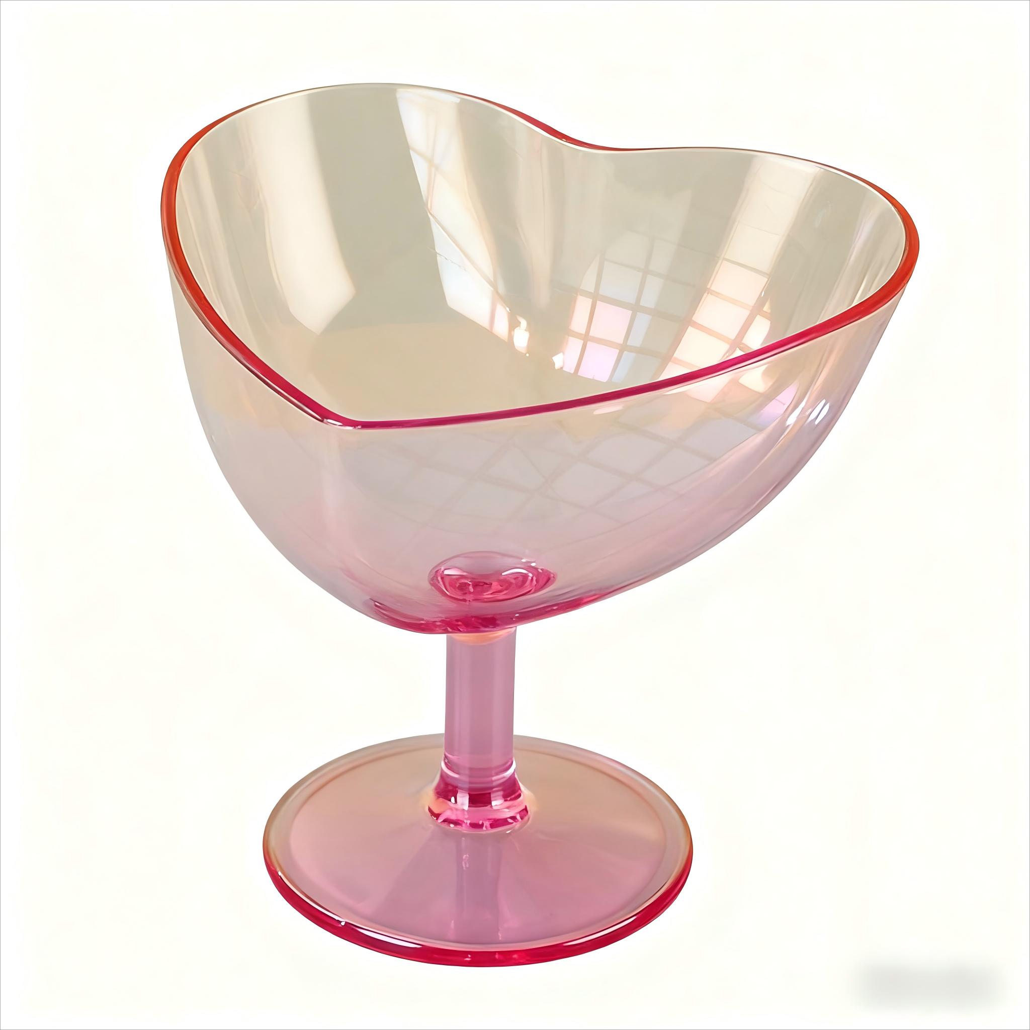 This adorable heart-shaped dessert glass cup is perfect for showcasing ice cream, fruit, or sweet drinks. With a pink transparent finish and elegant stem, it's ideal for romantic settings, gifting, or themed parties.