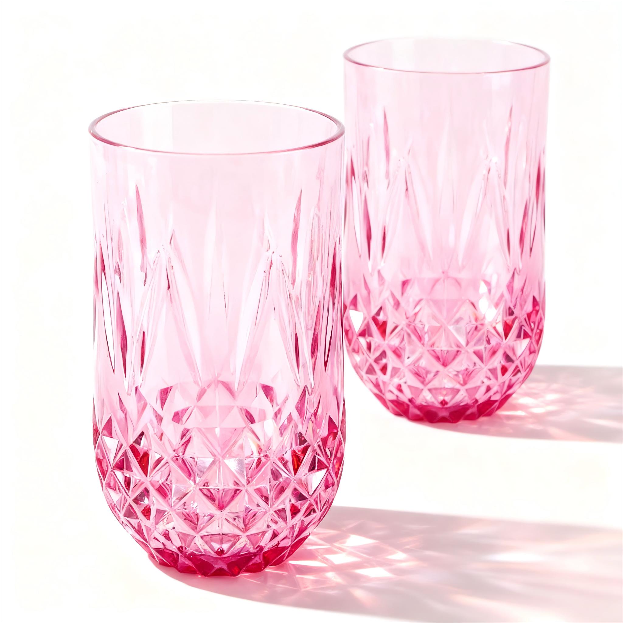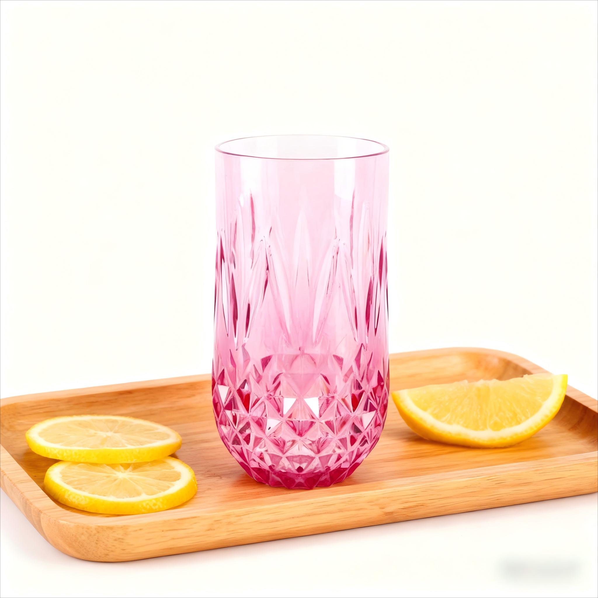 Add elegance to any occasion with this pink crystal-cut style glass cup. Perfect for serving water, juice, or cocktails. Ideal for weddings, parties, and luxury home decor.
