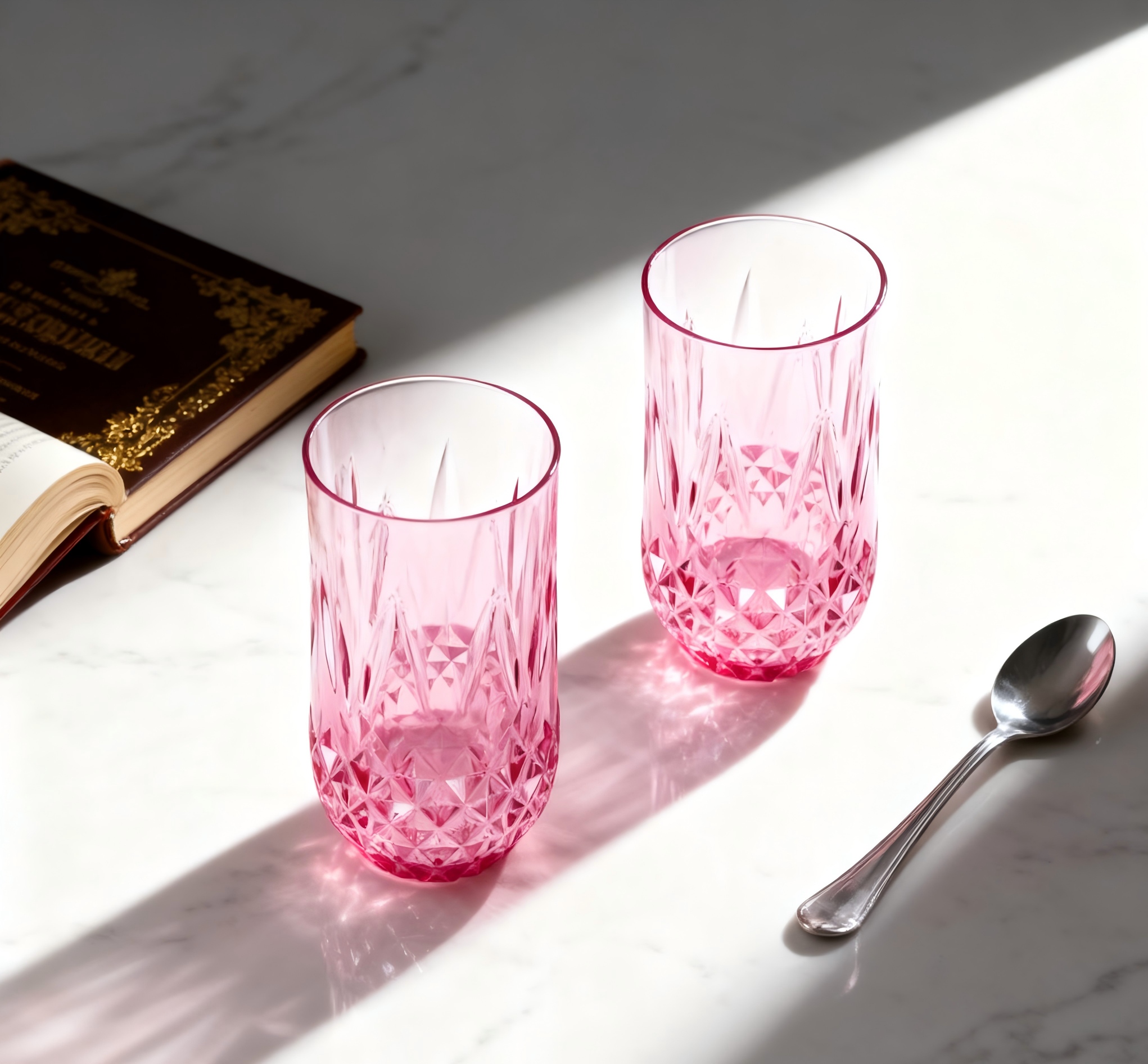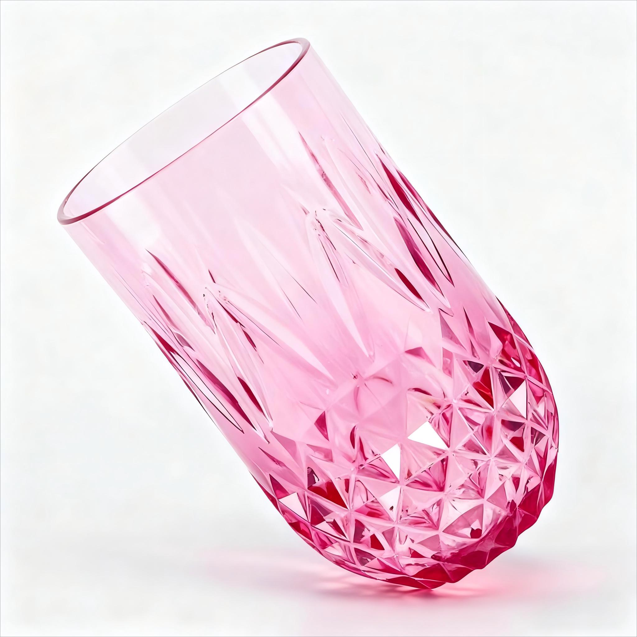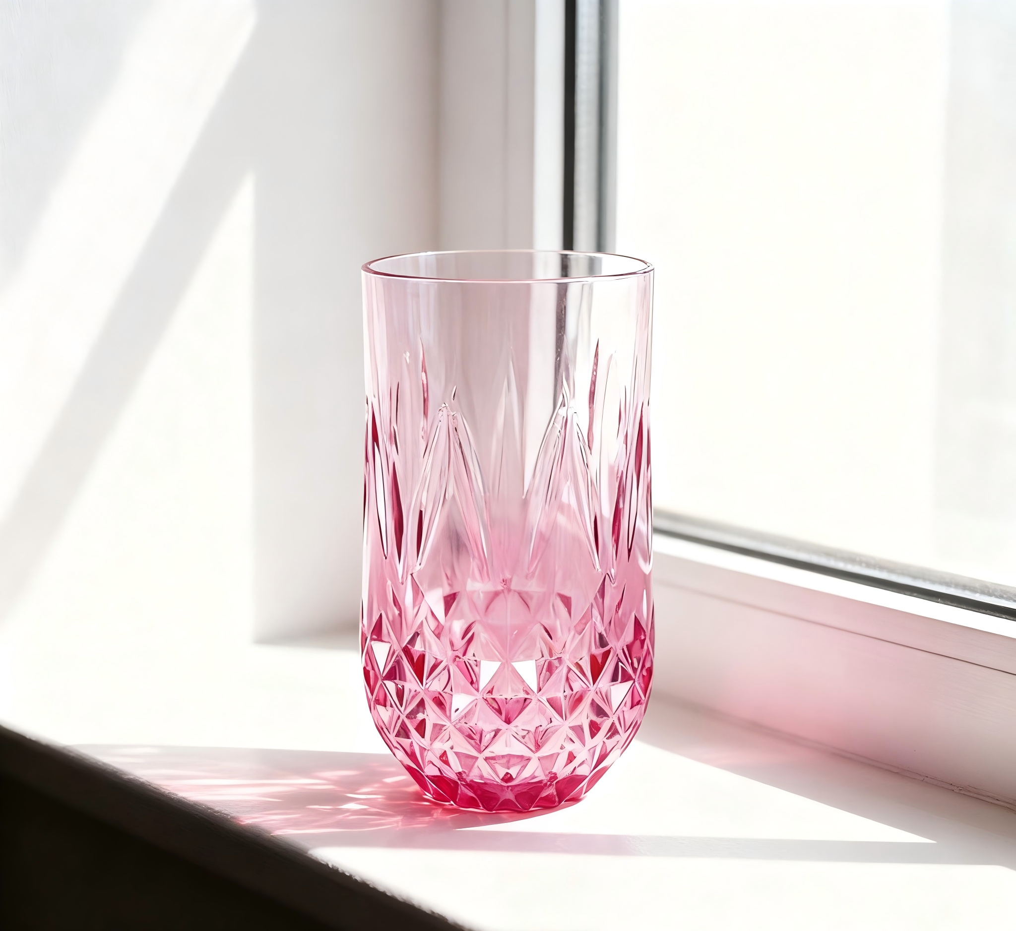Crystal Cut Pink Glass Cup | Elegant Drinkware for Water, Juice & Cocktails