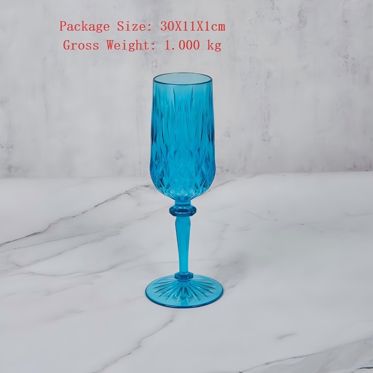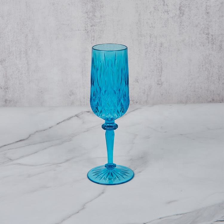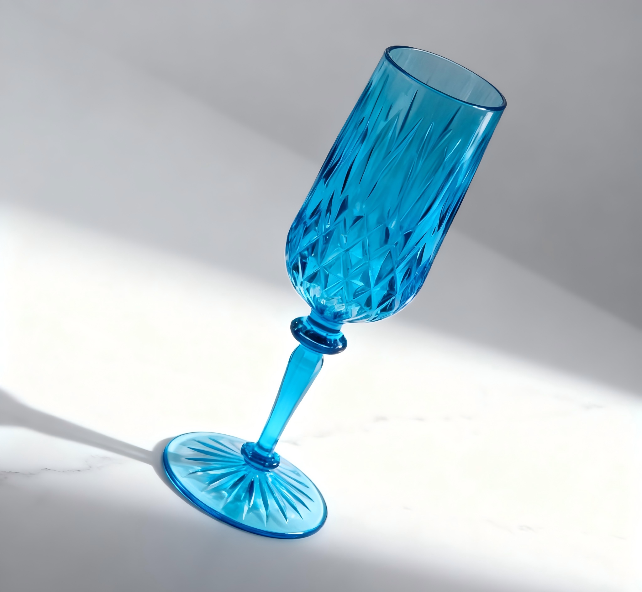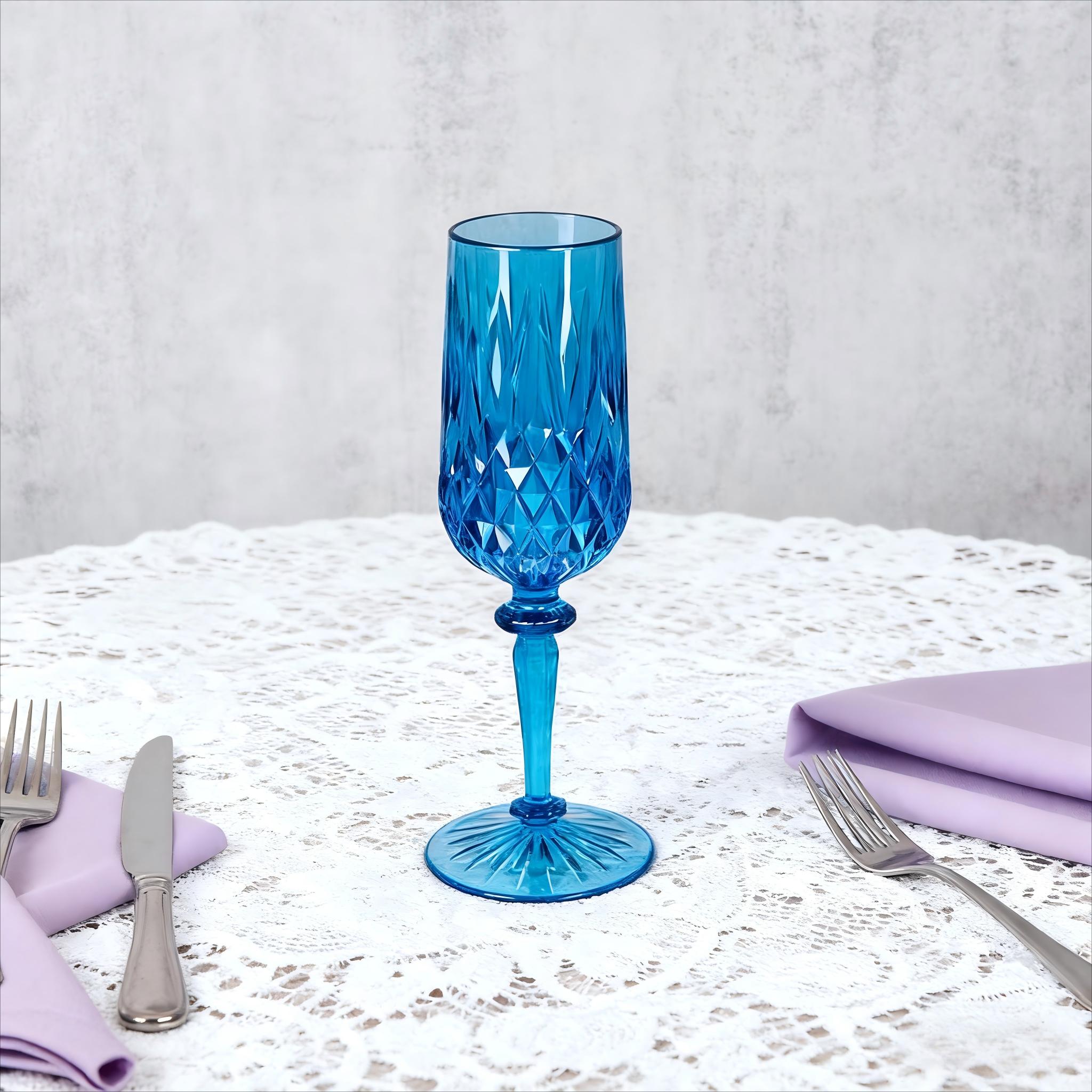 Bring elegance to your toast with this blue crystal-look champagne glass. Ideal for weddings, parties, or upscale events.