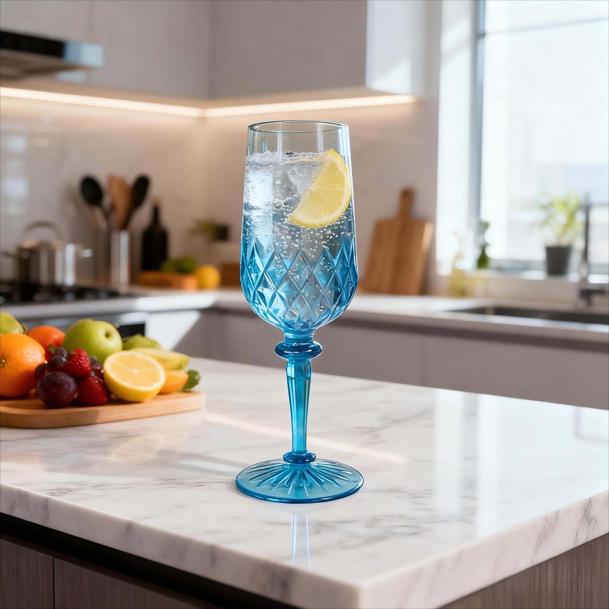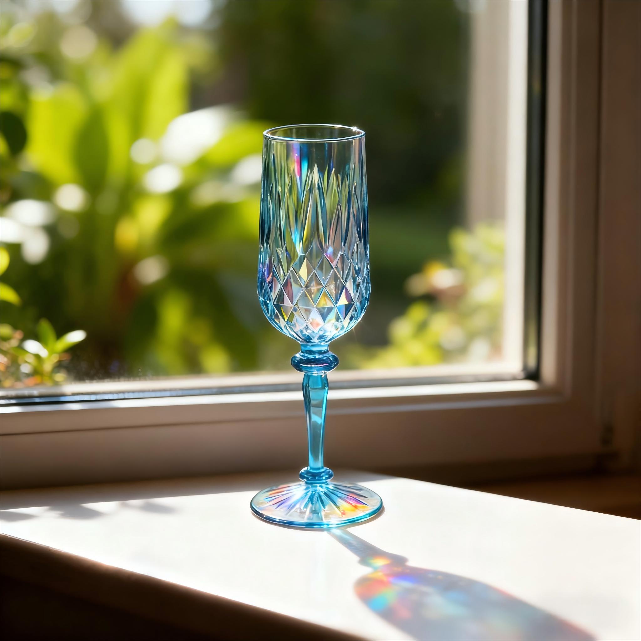 Blue Crystal-Style Champagne Glass | Elegant Tall Wine Flute