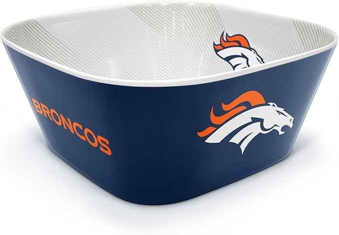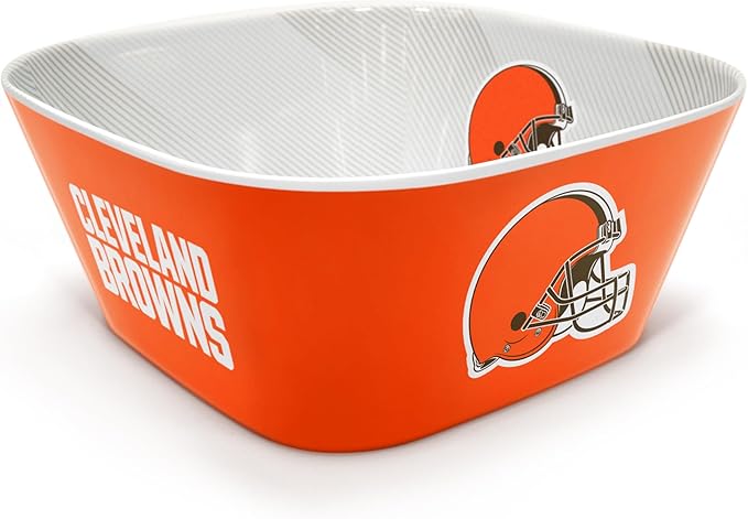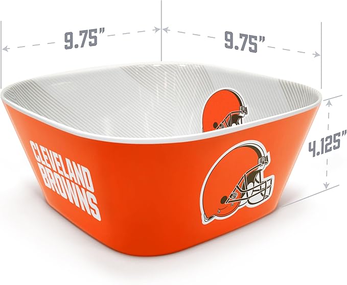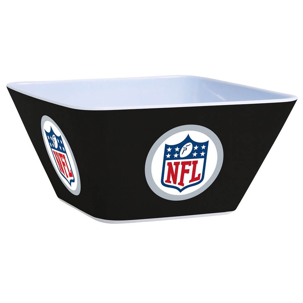 This officially licensed NFL square bowl is crafted from high-quality melamine, designed with a bold black exterior and accented with the iconic NFL shield logo on all four sides. Perfect for sports events, parties, and home use.