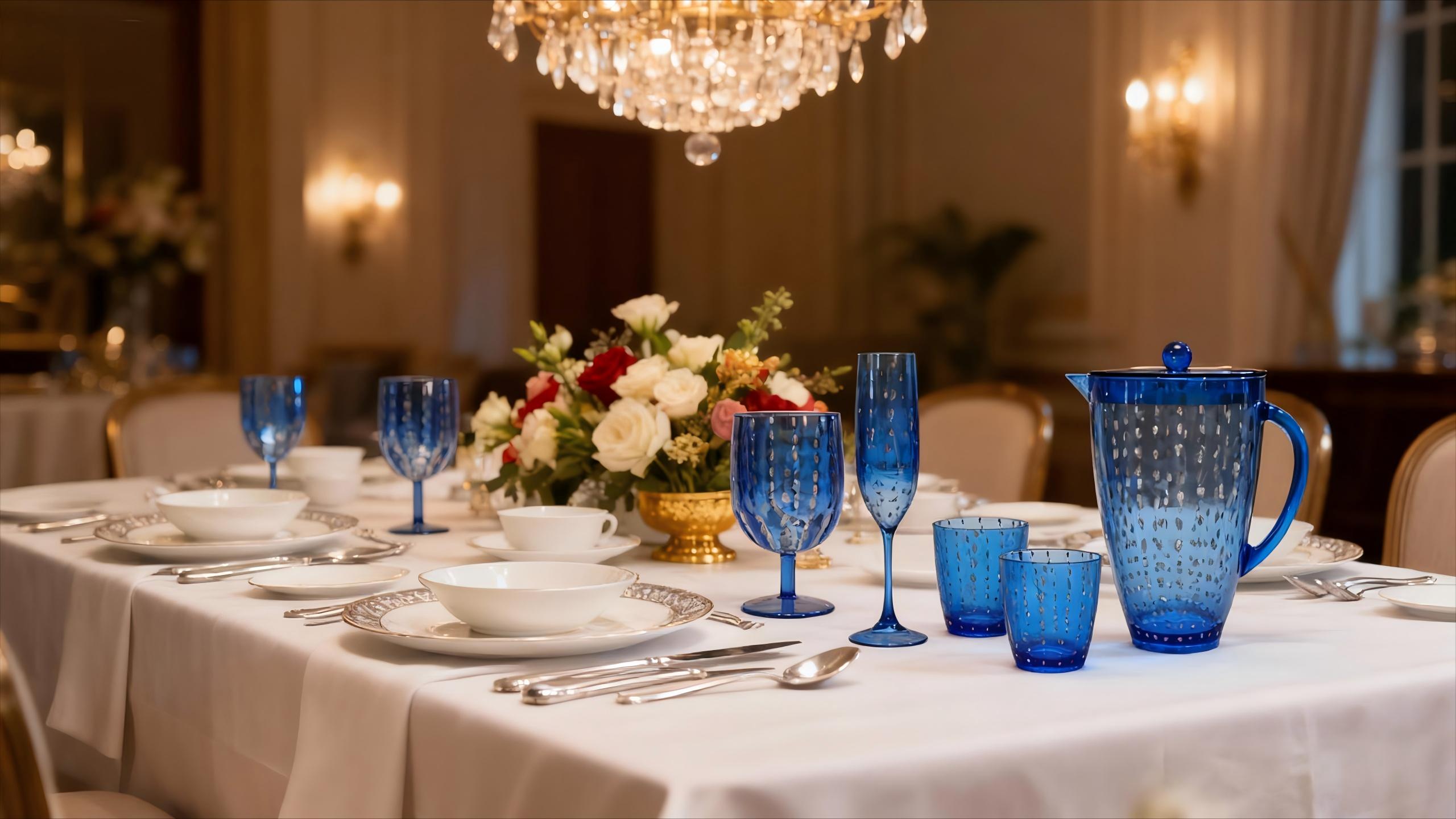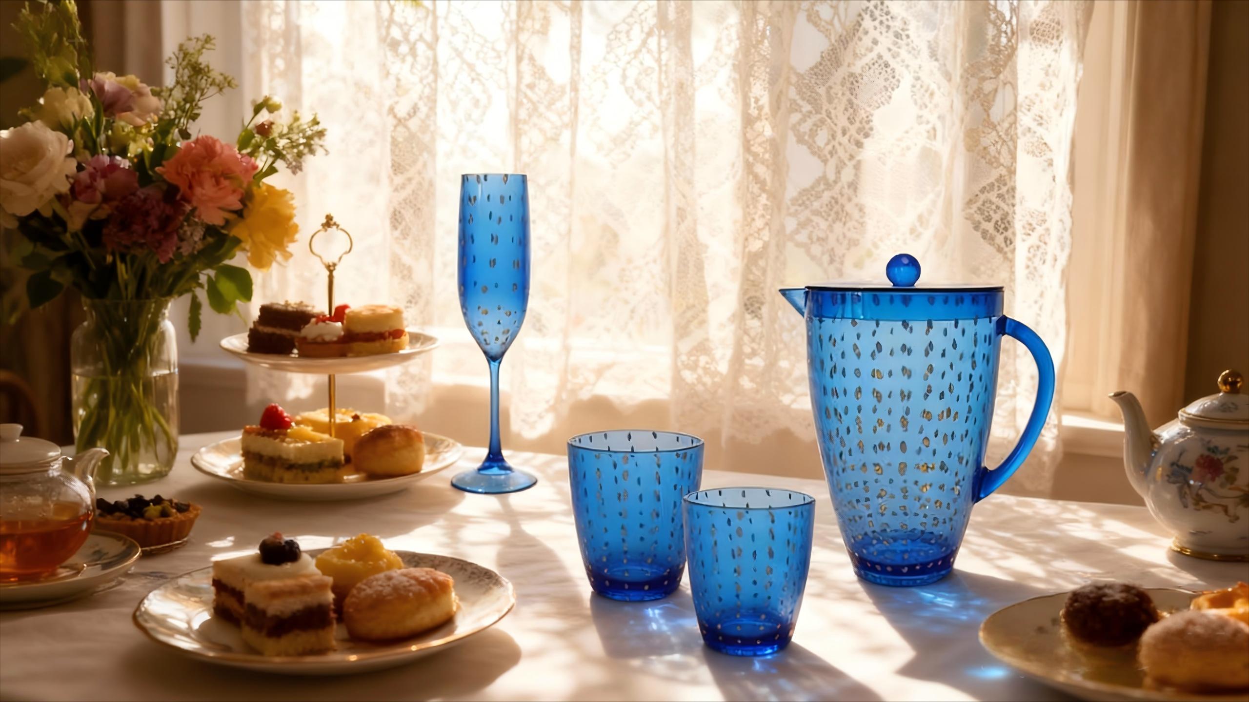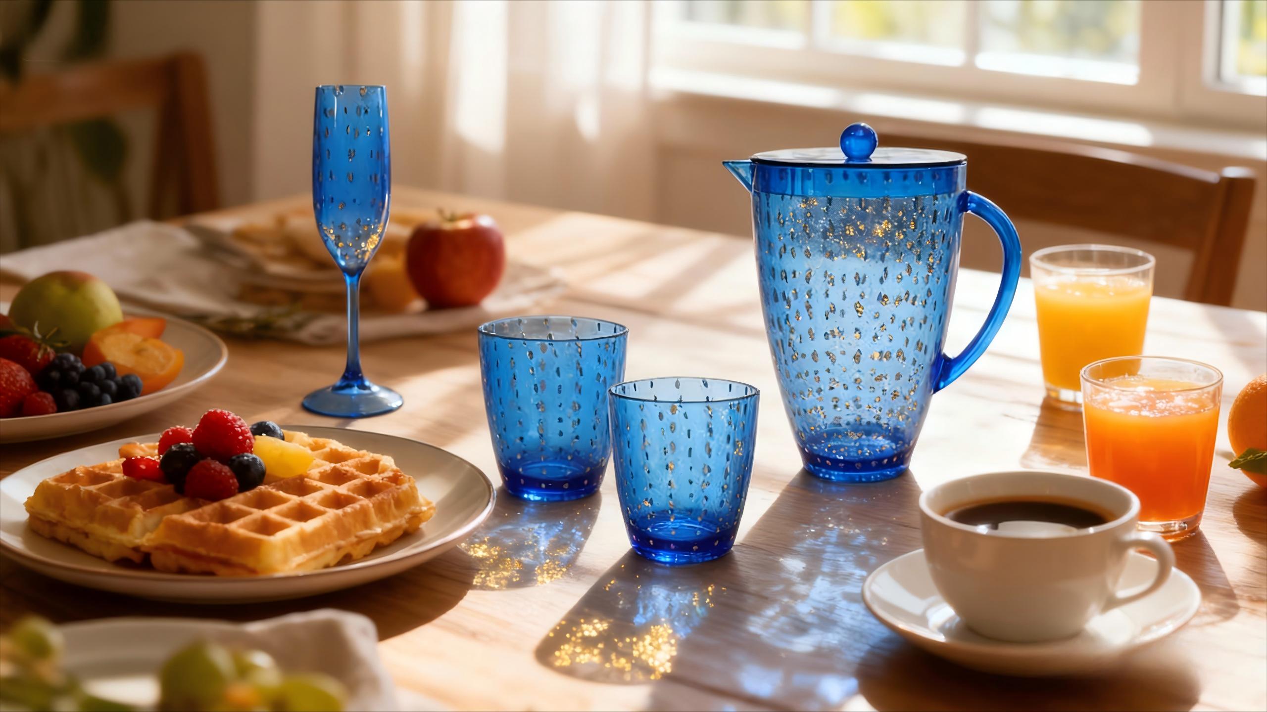 Set Includes: 1 pitcher with lid, 1 champagne flute, 2 goblets, 2 tumblers