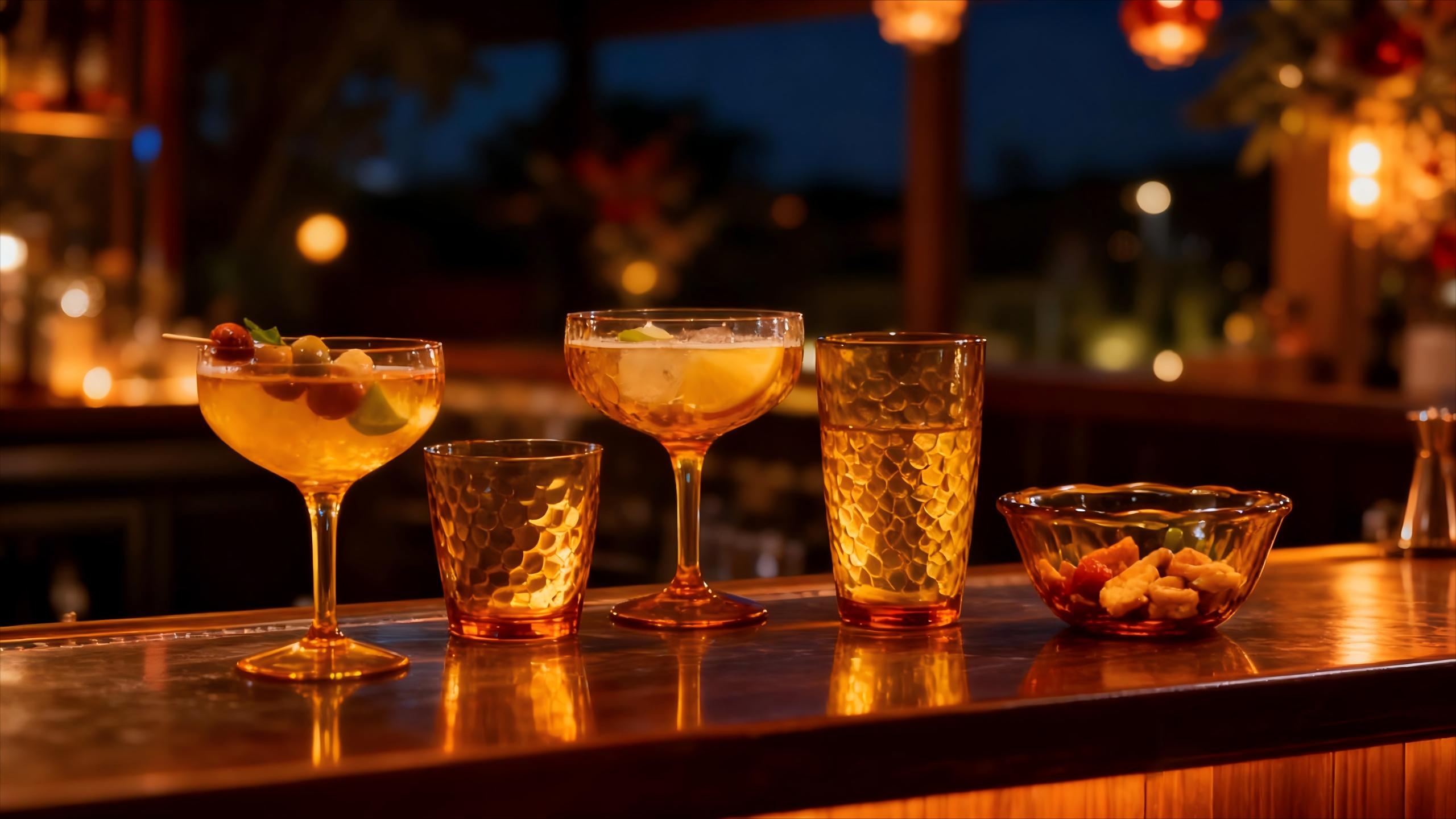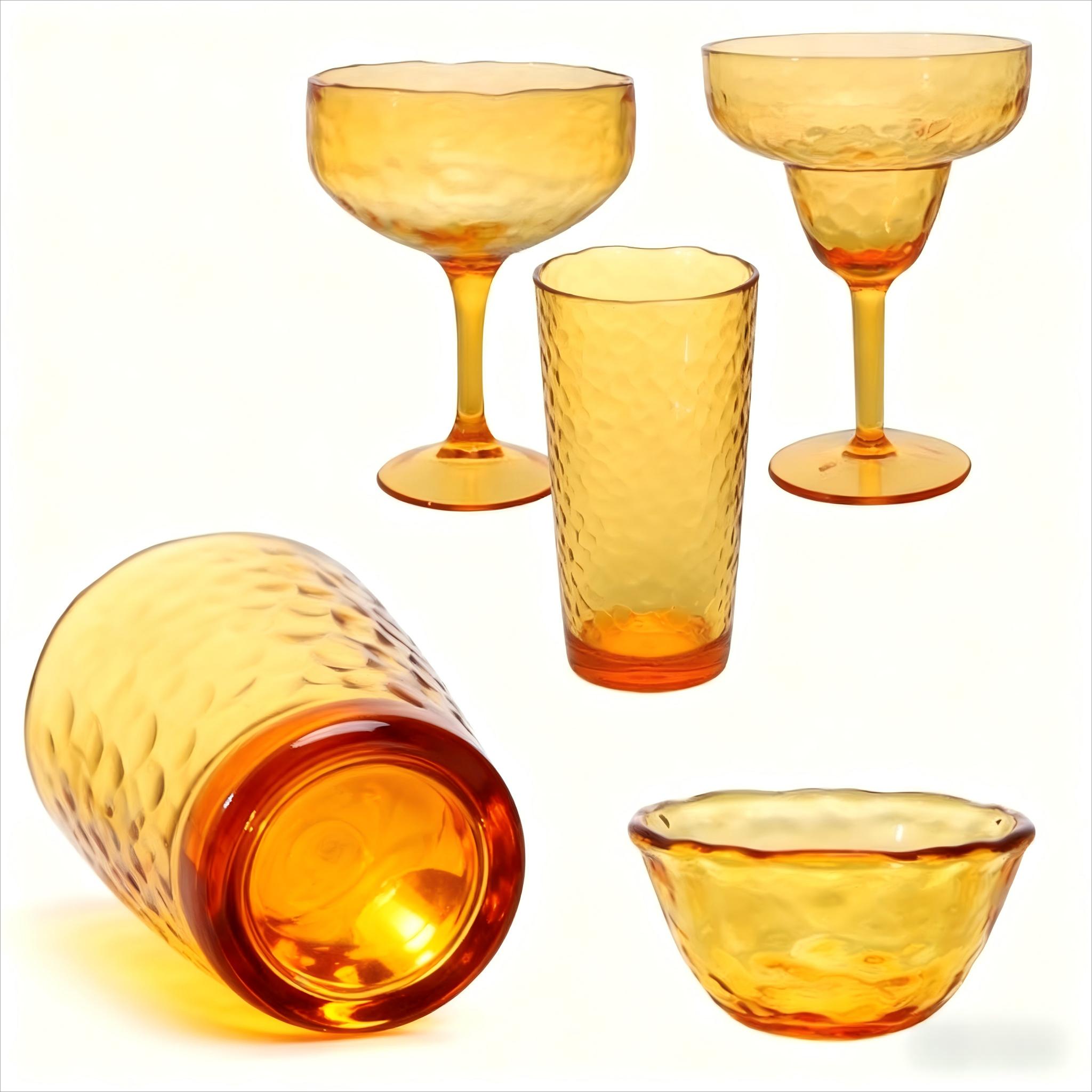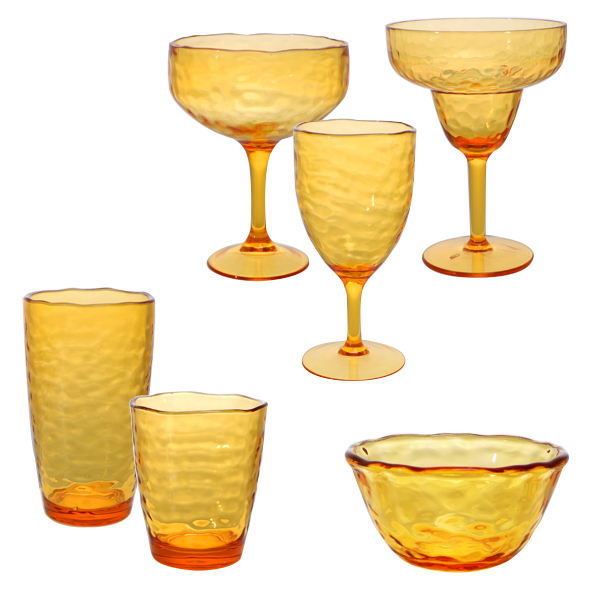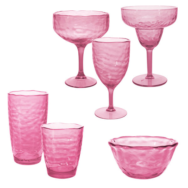 Set Includes: 2 margarita glasses, 1 wine goblet, 2 tumblers, 1 bowl