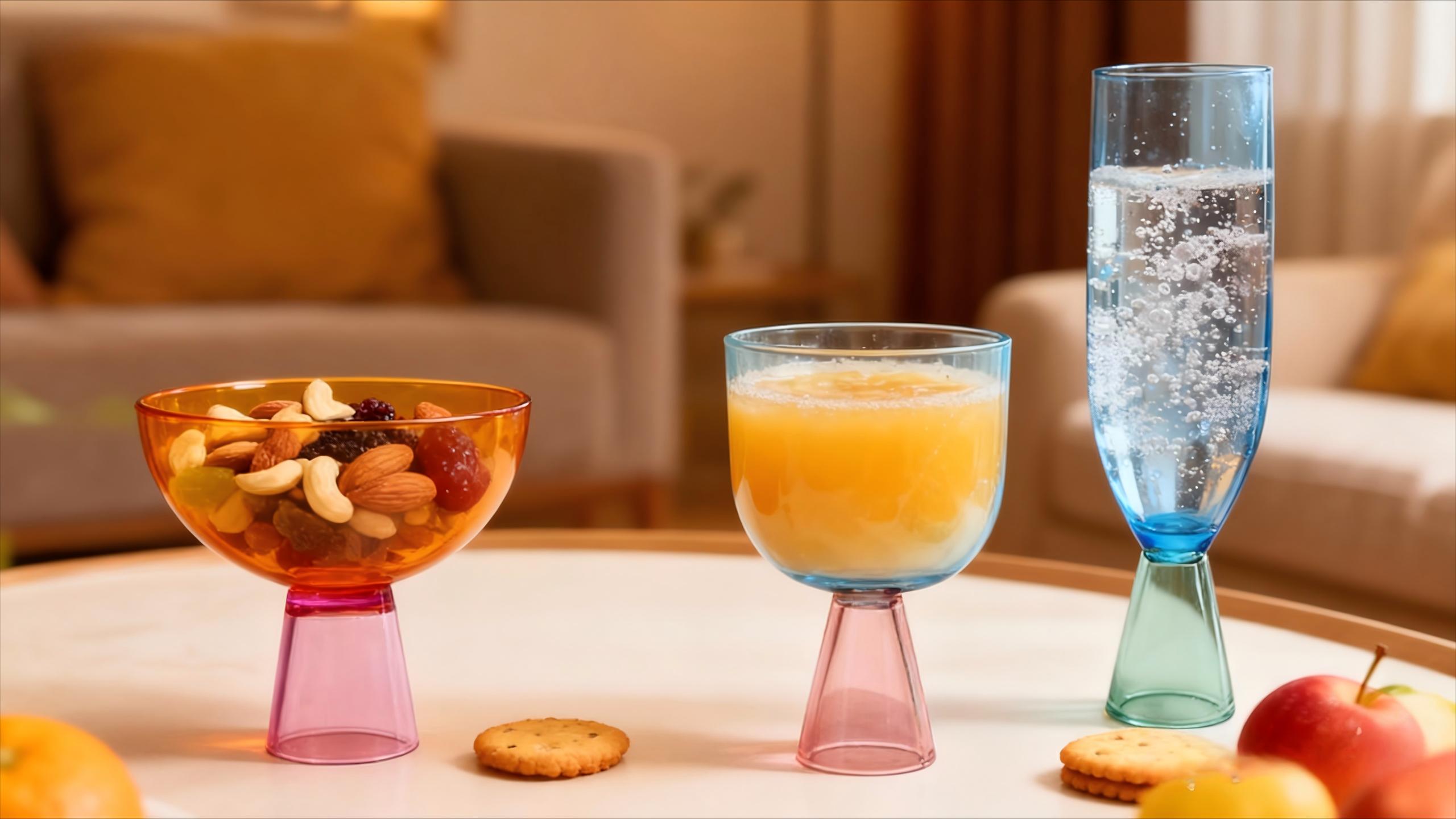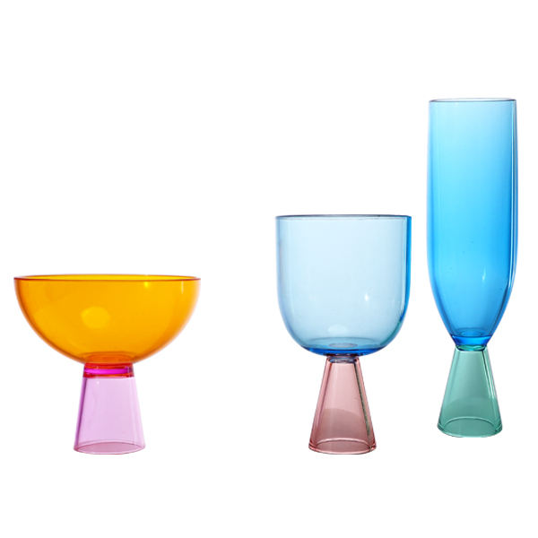 Set Includes: 1 dessert bowl, 1 goblet, 1 champagne flute