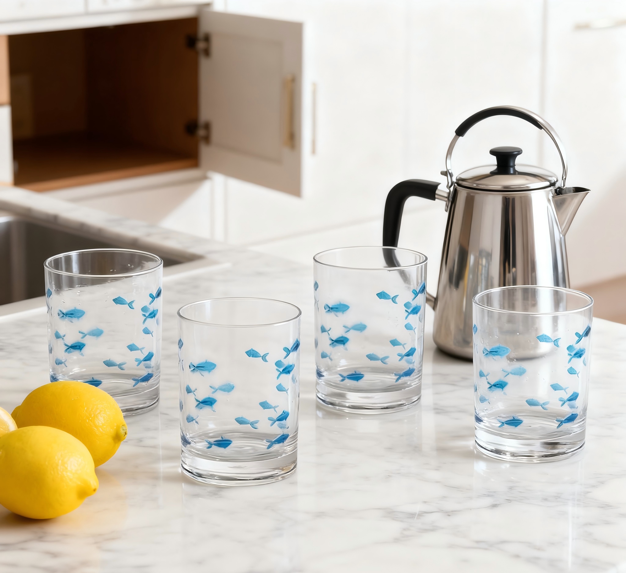 Color: Transparent with blue fish pattern