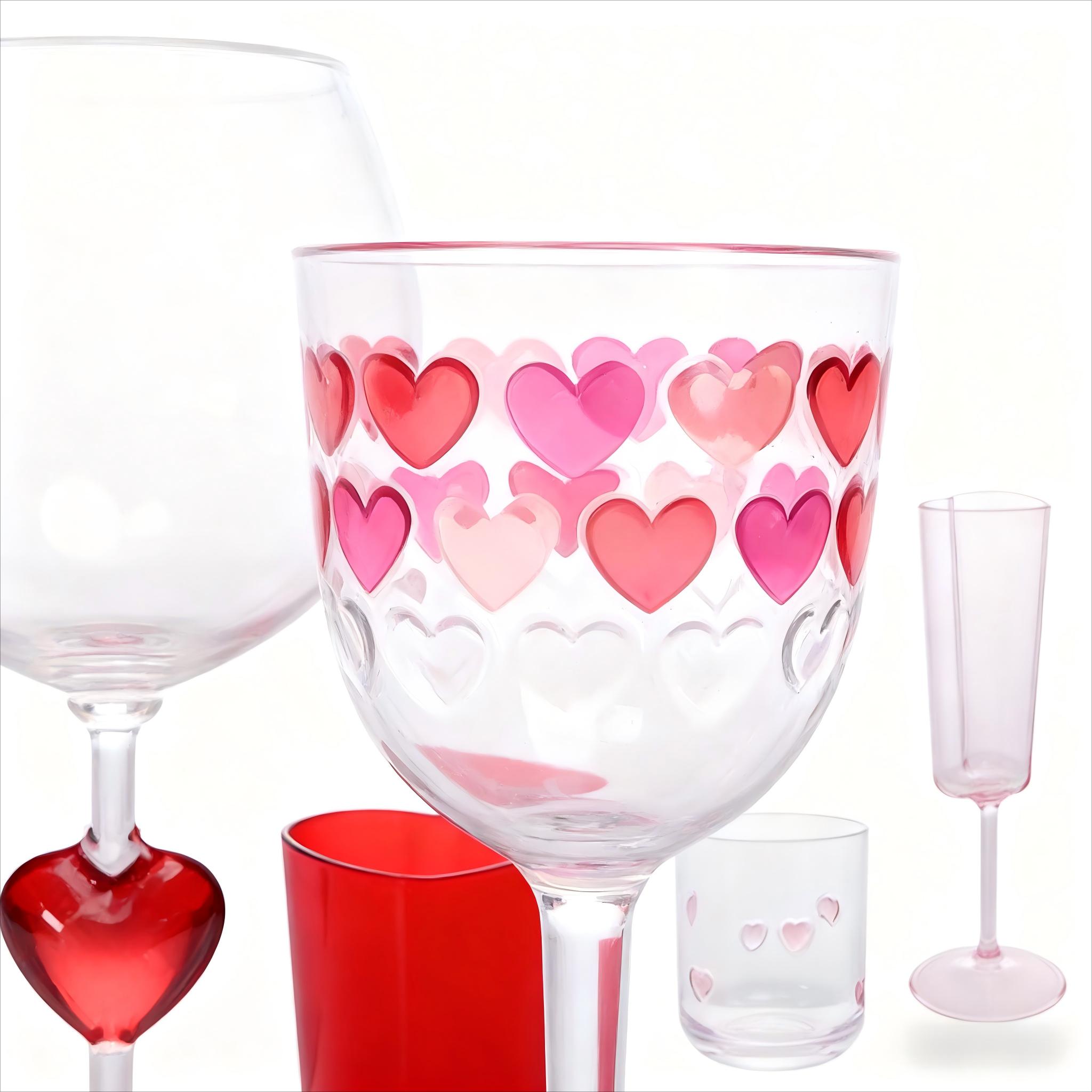 Styles: Champagne flute, wine goblet, red wine glass, whiskey tumbler, heart-shaped cup