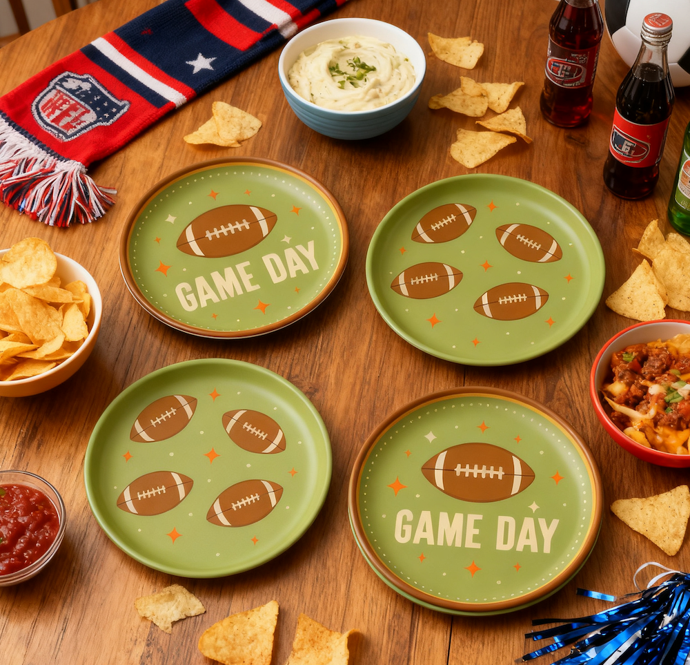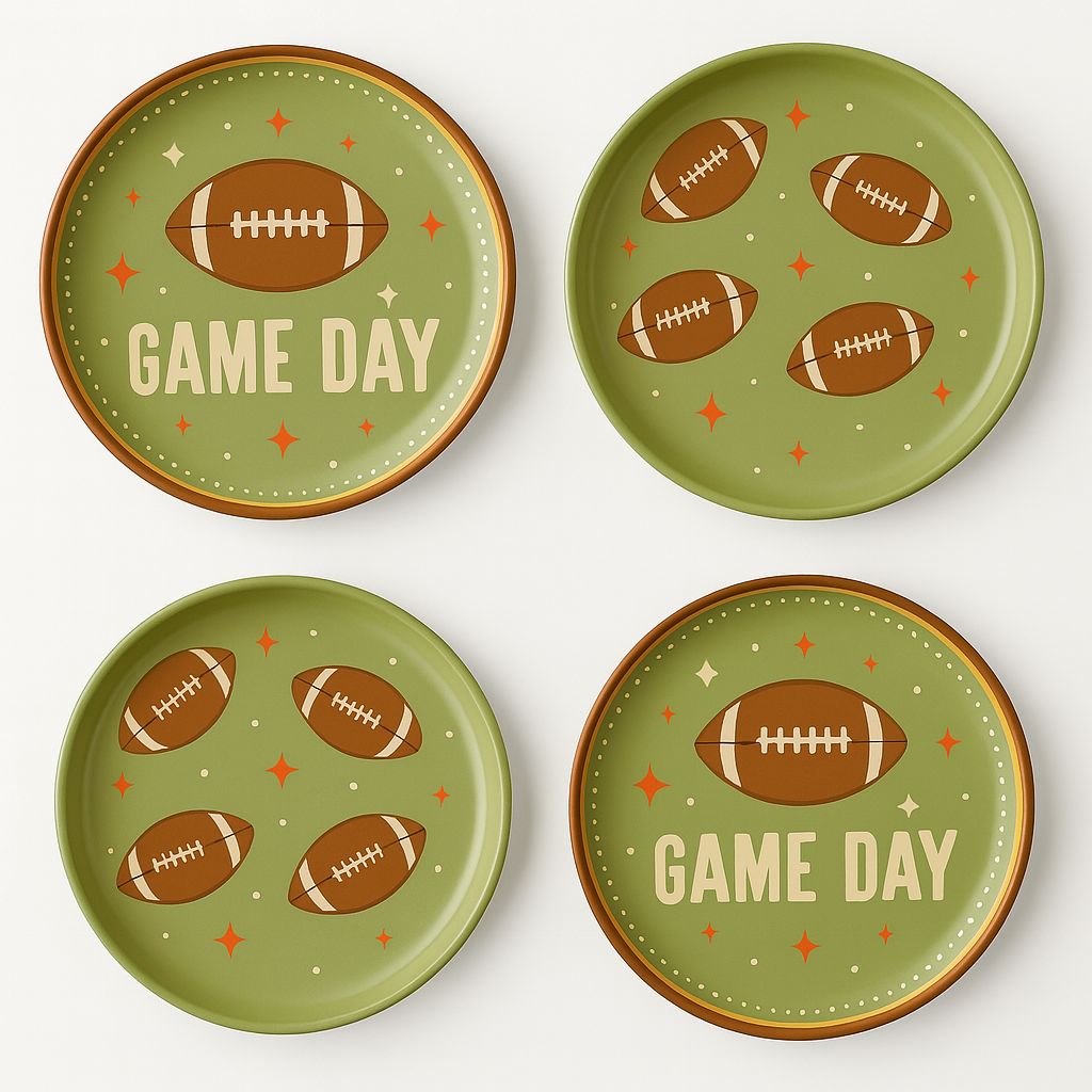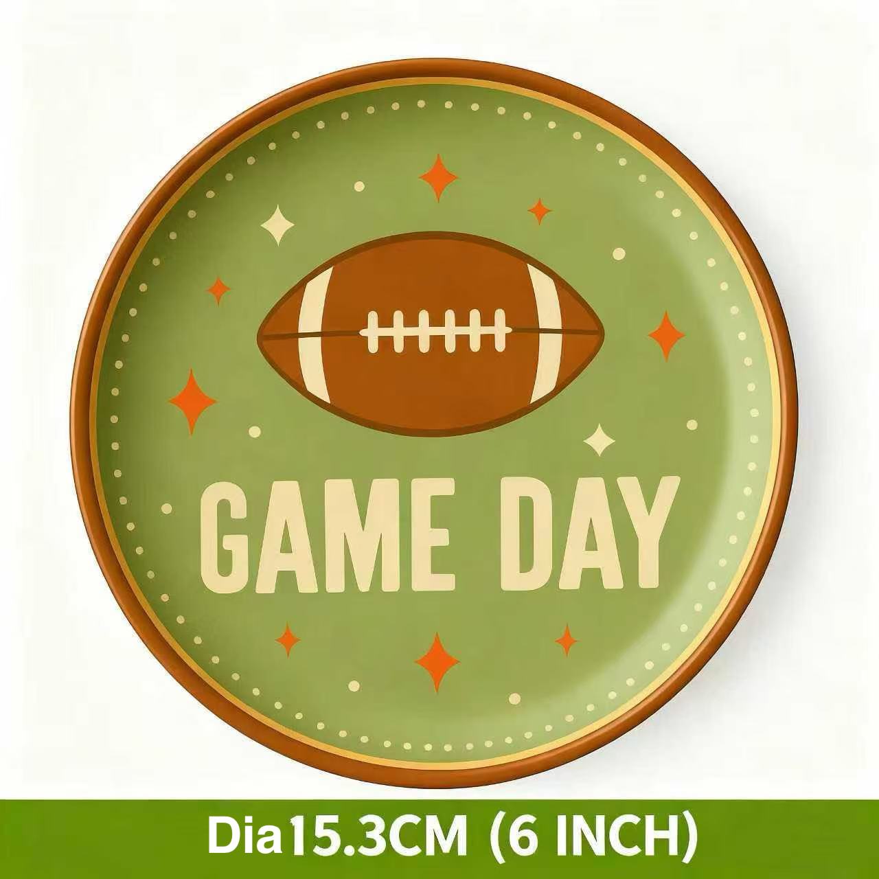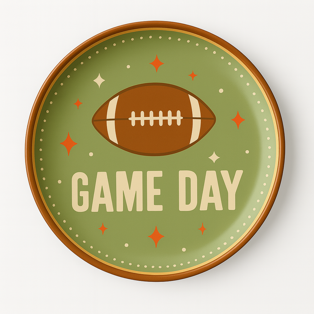 Crafted for football fans and party planners, this 6″ Game Day Plate features bold football graphics and vibrant “GAME DAY” text—perfect for NFL viewing parties, tailgating events, Super Bowl celebrations, and sports-themed gatherings. Ideal for serving snacks, desserts, or appetizers.