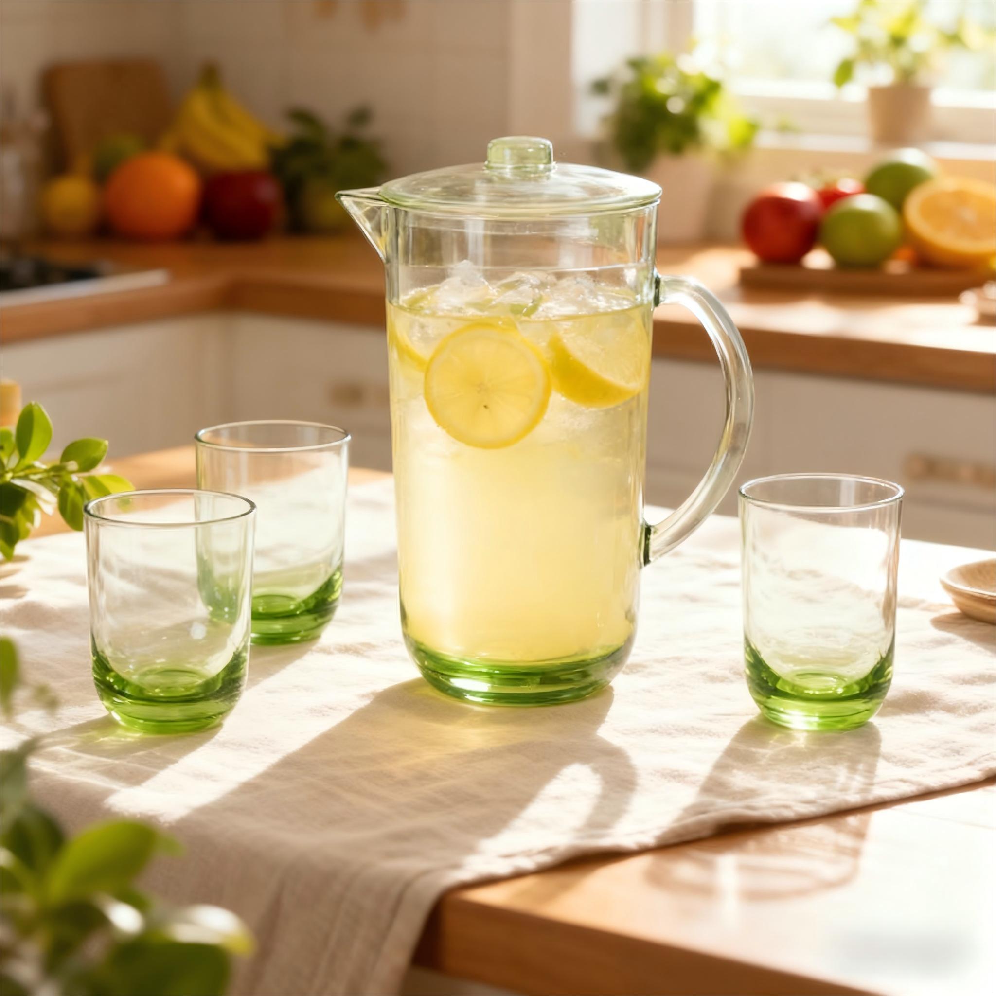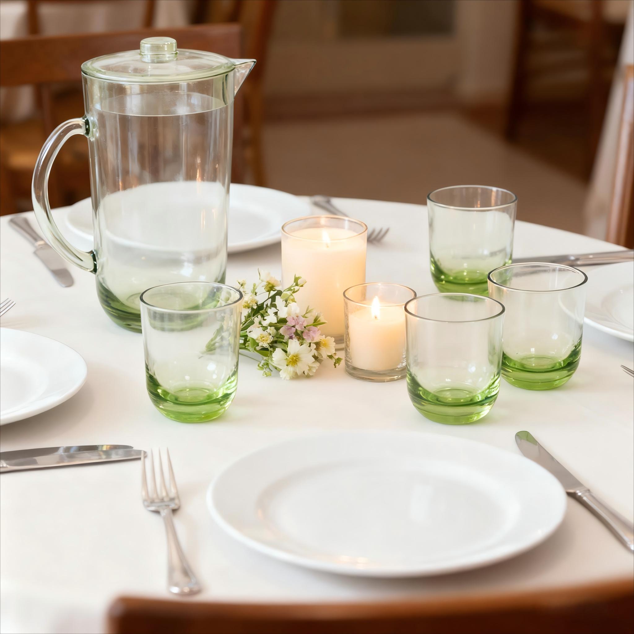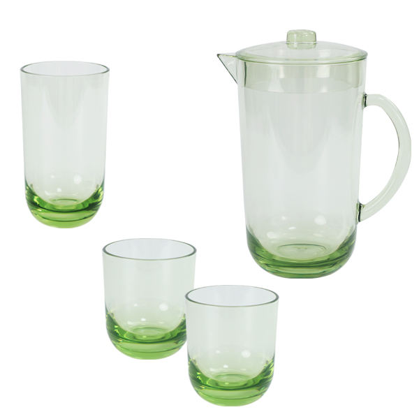 Set Includes: 1 pitcher with lid and handle, 2 tall tumblers, 3 short tumblers
