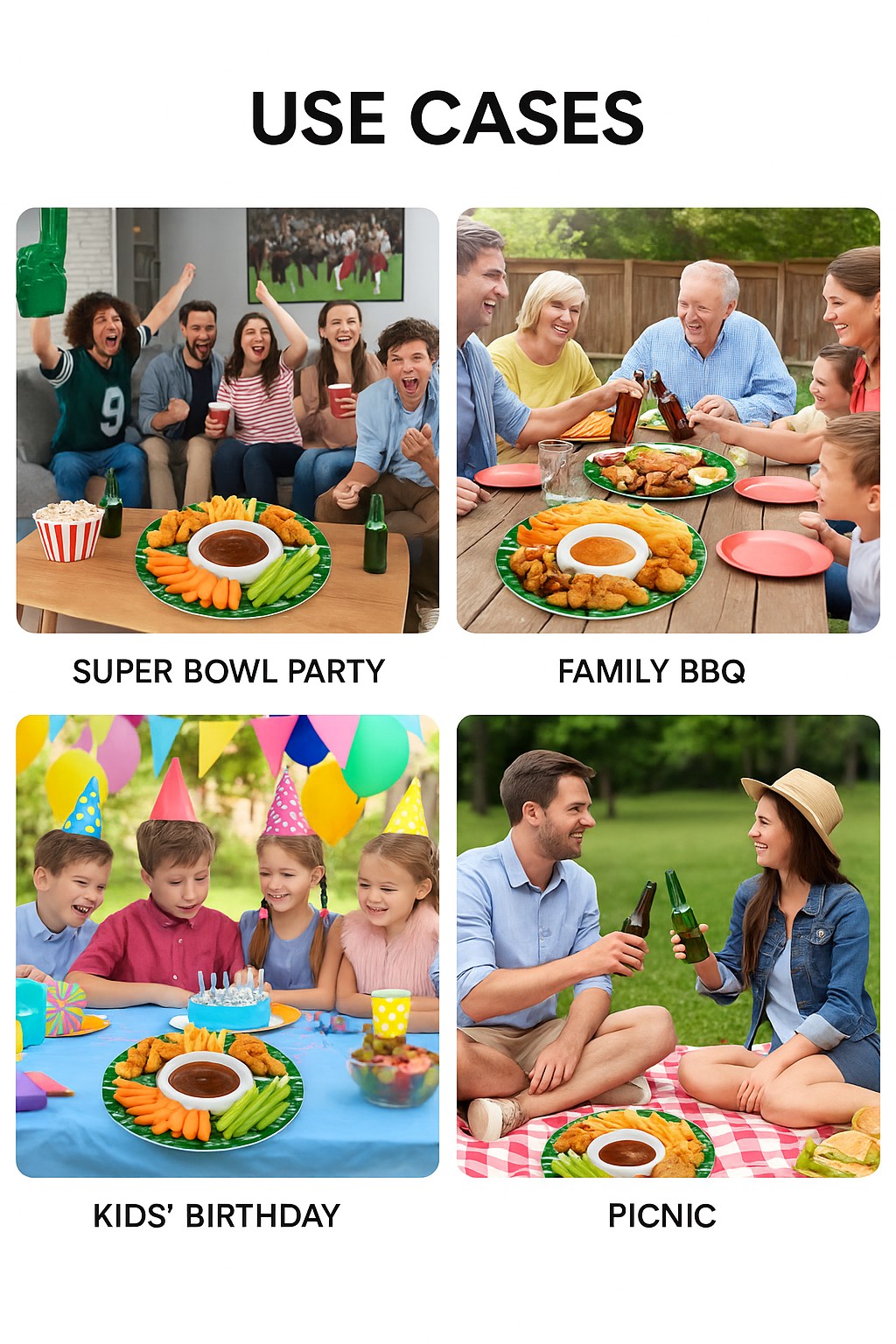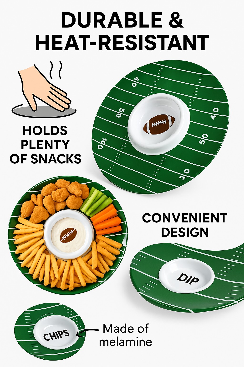 🍟 Large 13-Inch Capacity – Serves fries, wings, veggies, chips, and more — all in one platter.