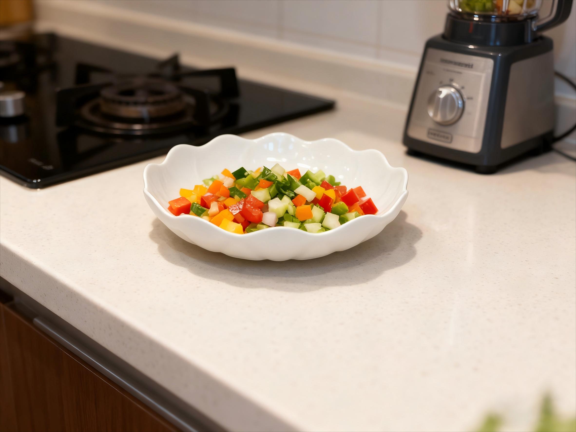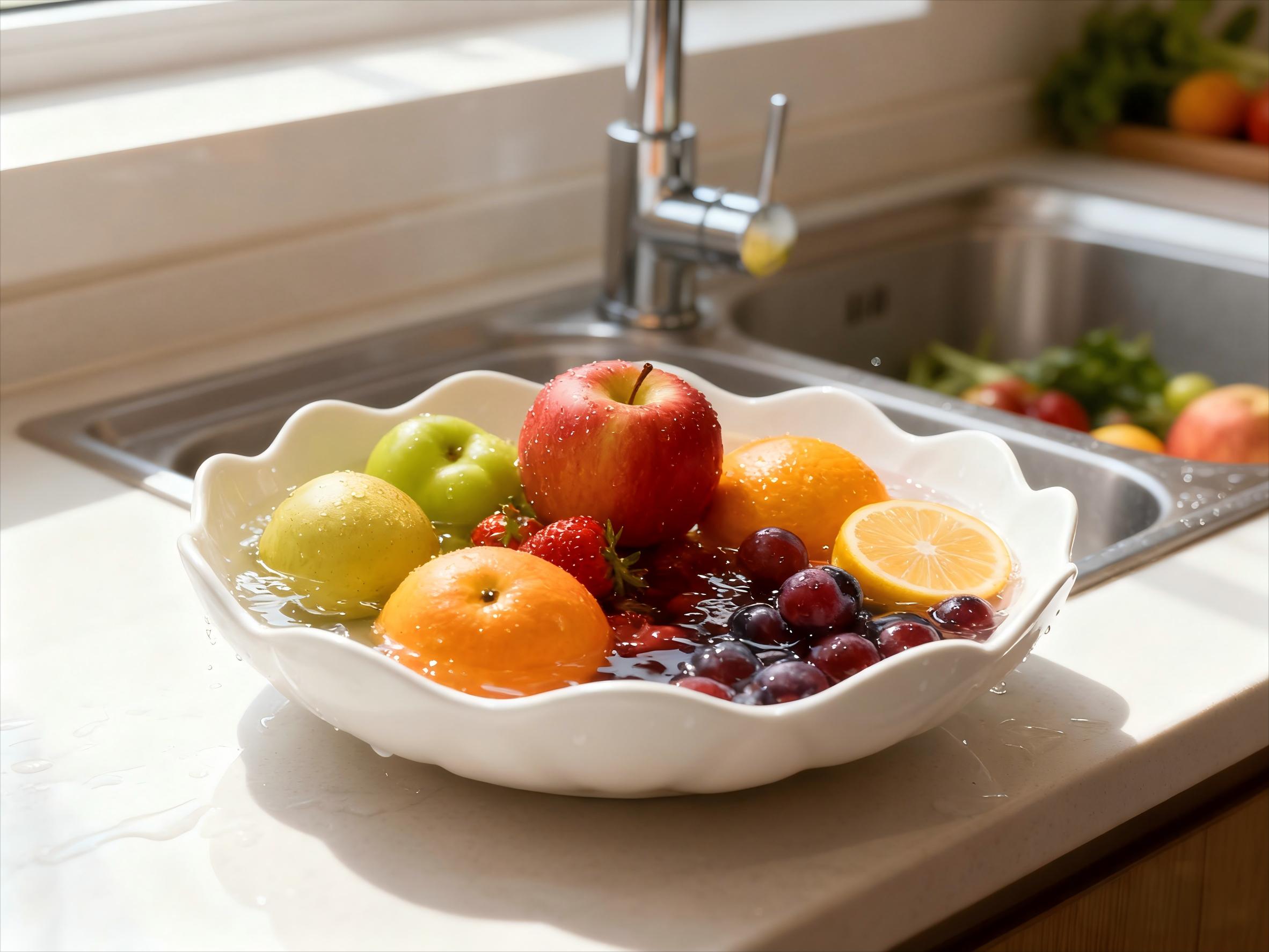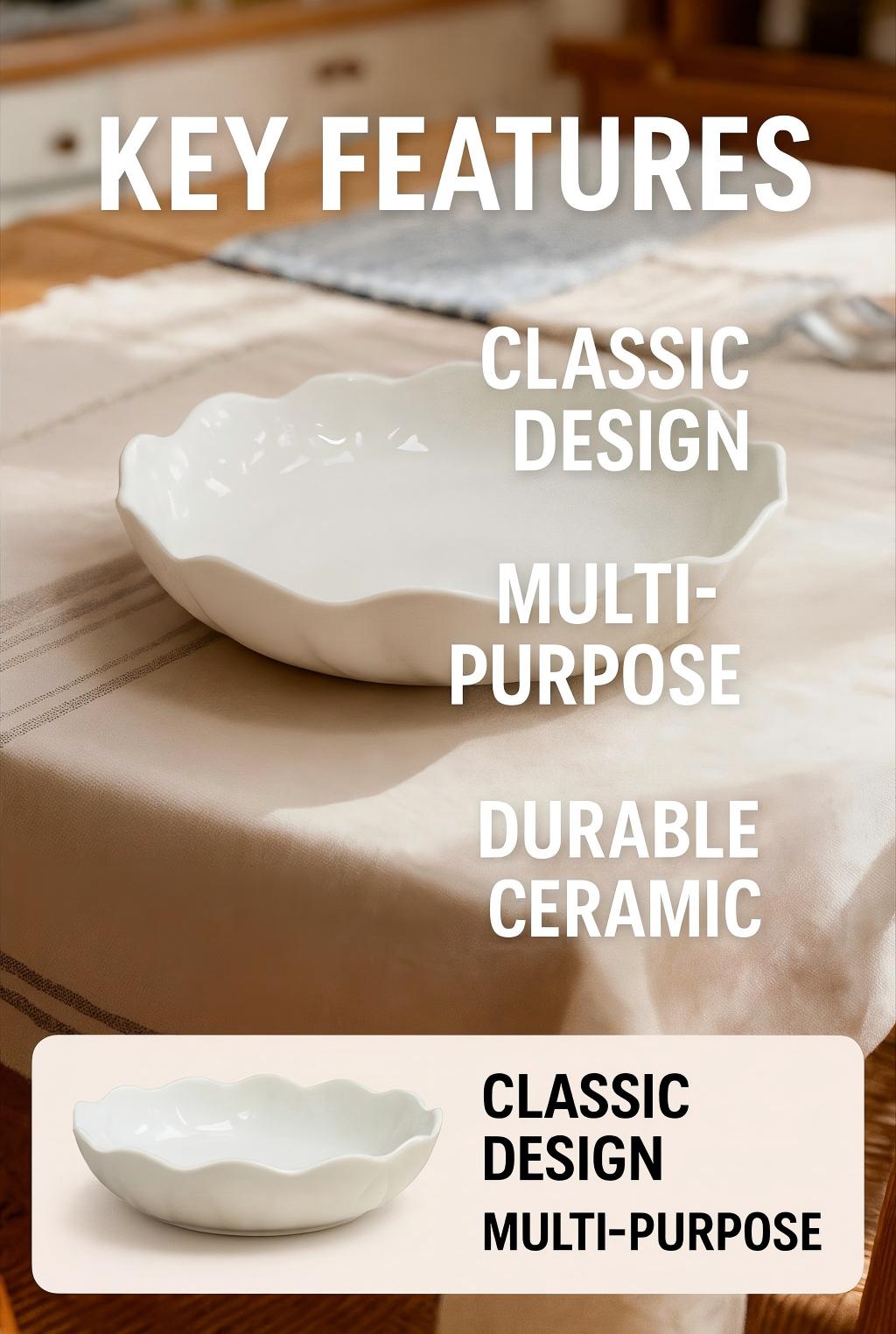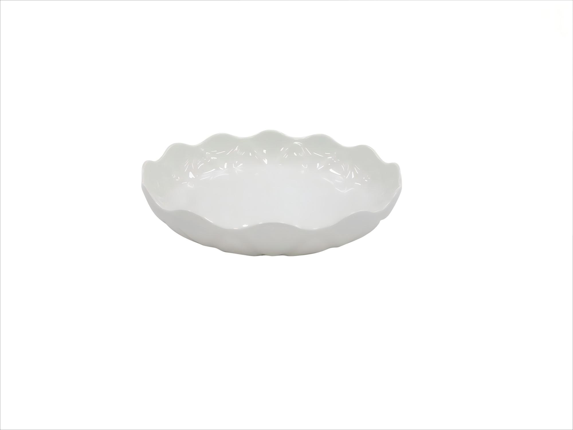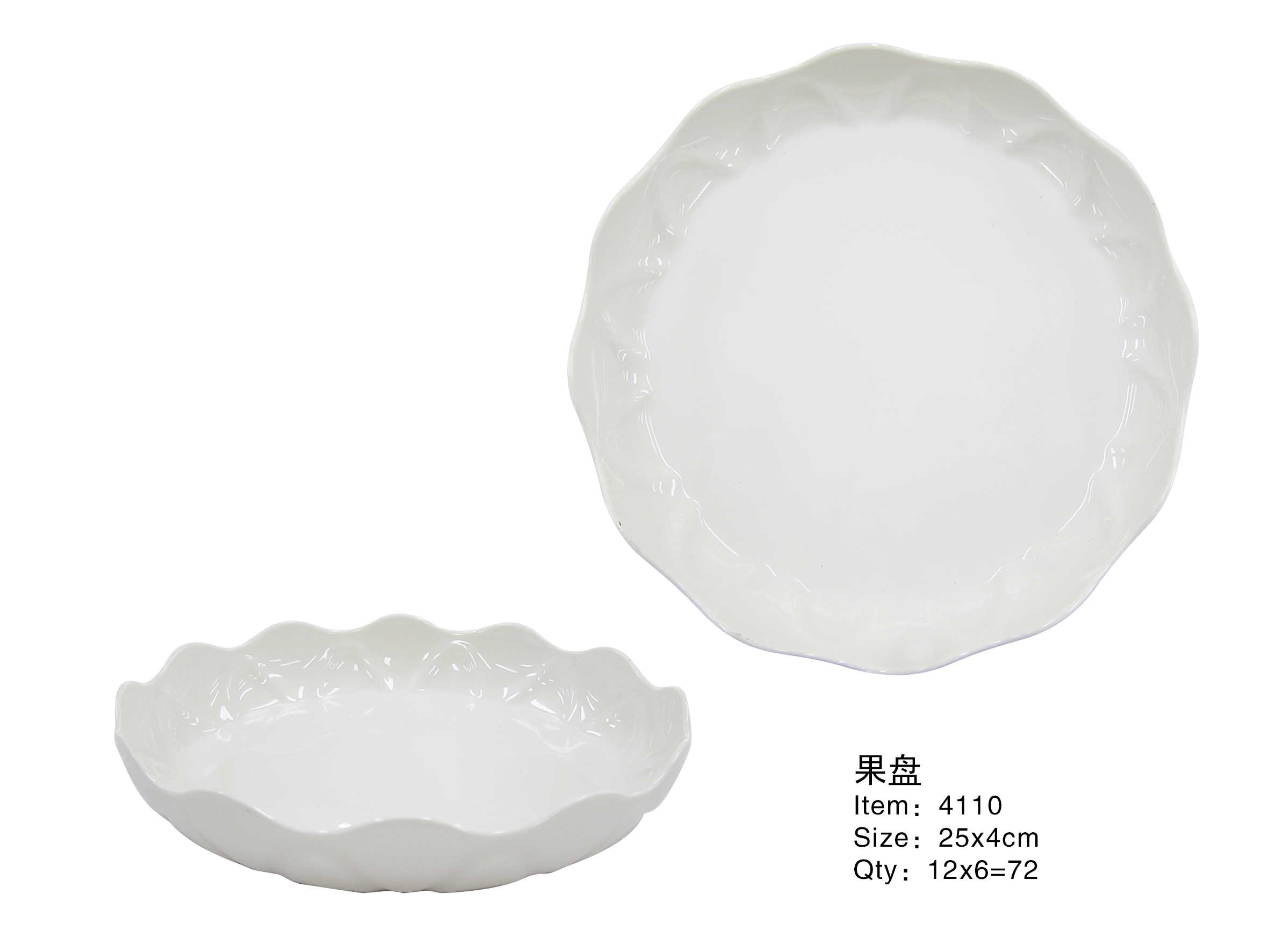 Durable and elegant, this 25x4cm white melamine fruit plate is designed with scalloped edges, making it perfect for restaurants, hotels, or catering services. It combines a porcelain-like look with break-resistant functionality ideal for high-traffic commercial use.