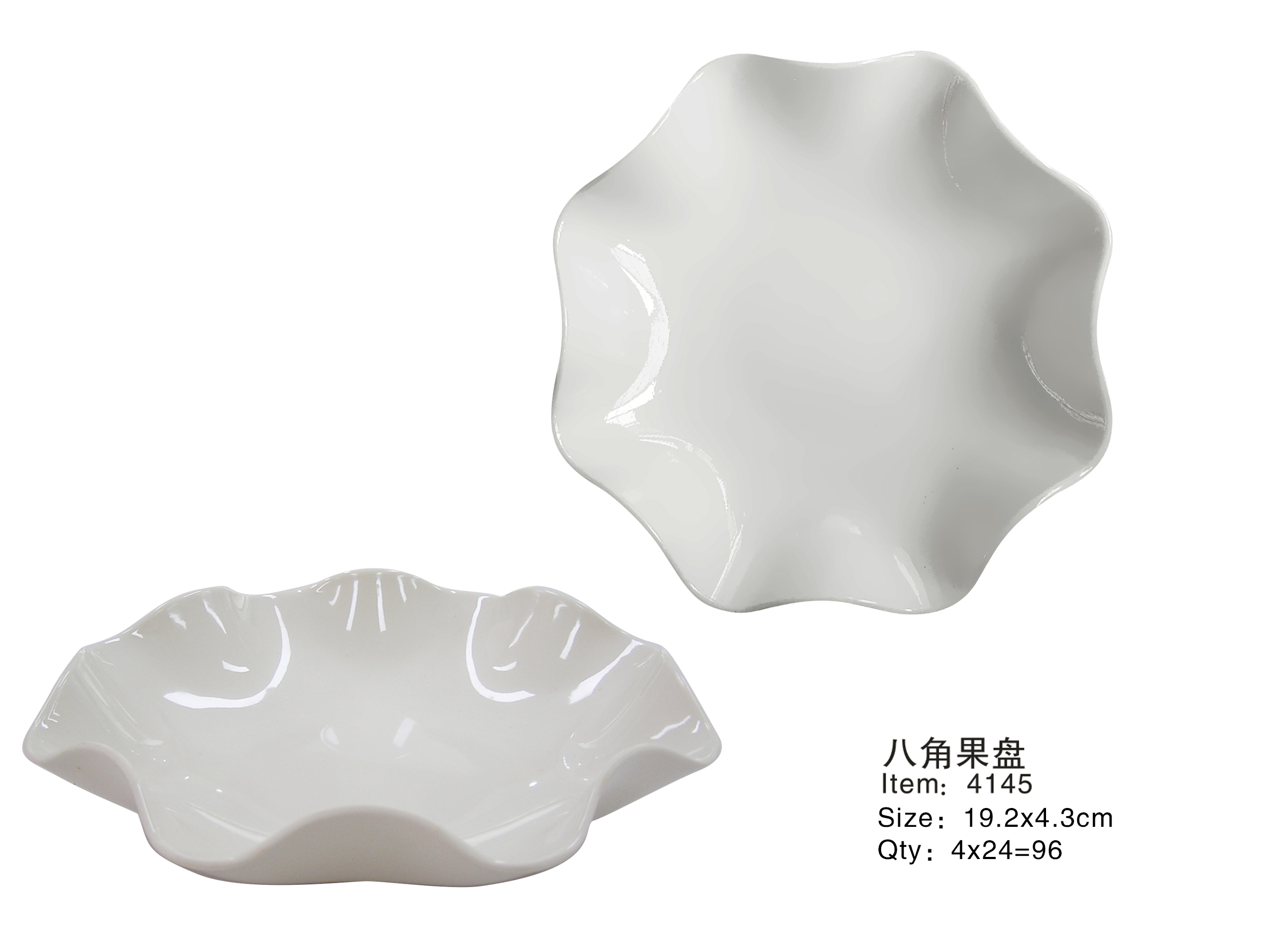 Serve fruits and desserts in style with this 19.2x4.3cm octagonal melamine plate. Featuring a unique wavy edge design, this dish is ideal for hotels, restaurants, and buffets.