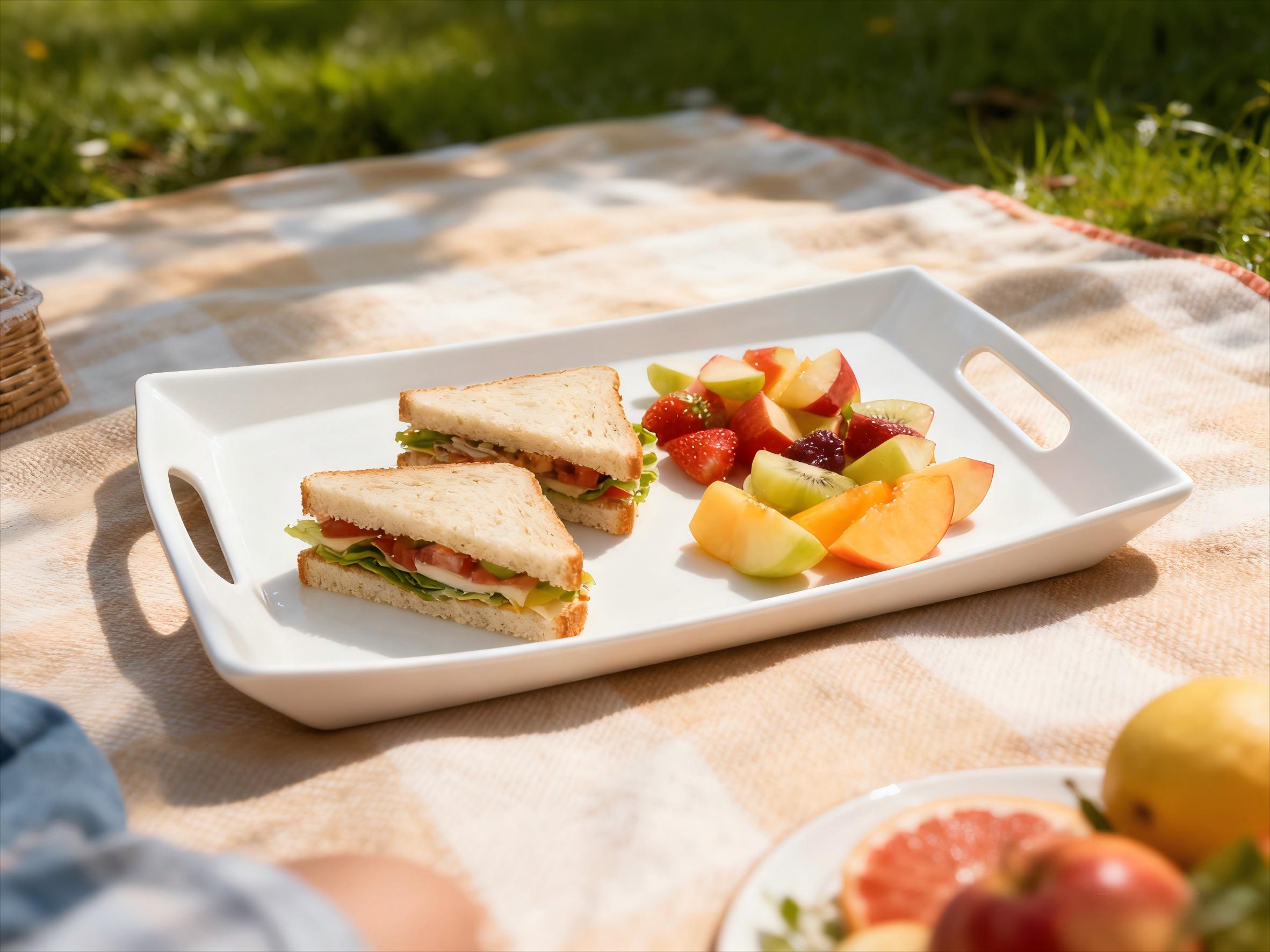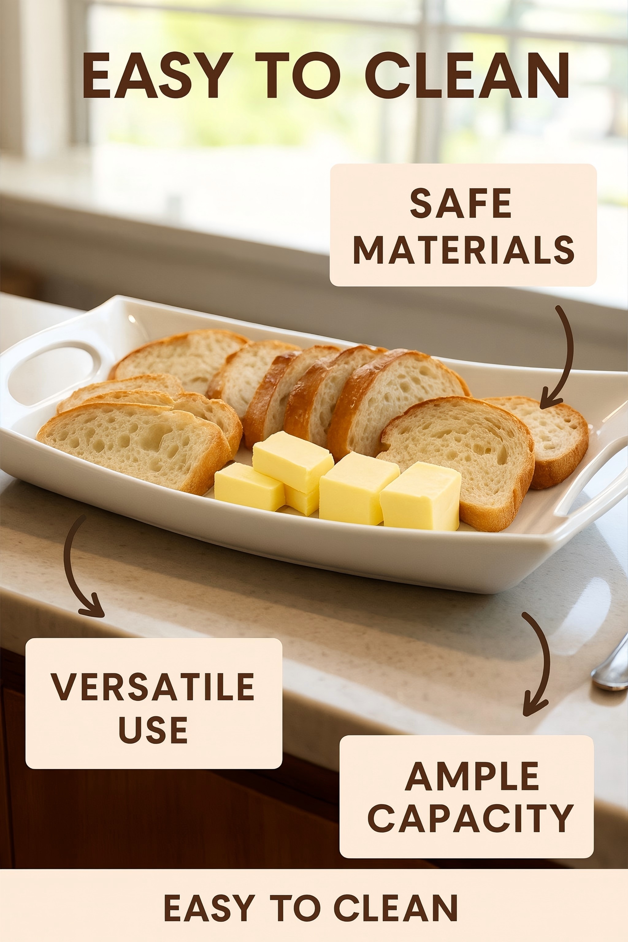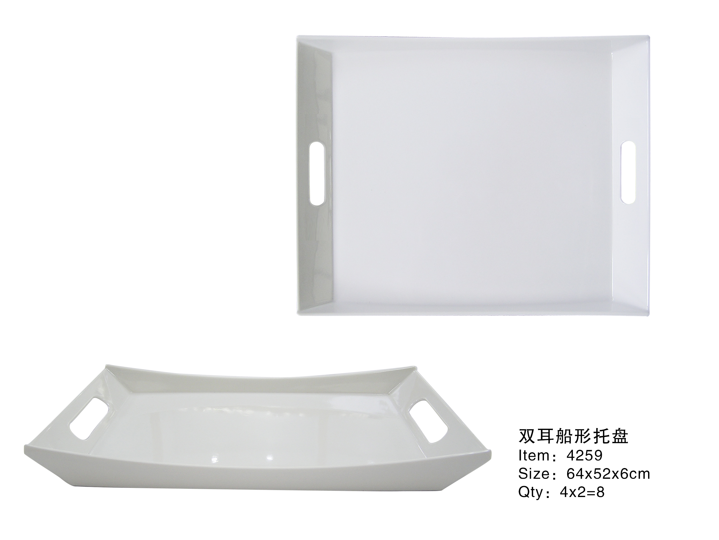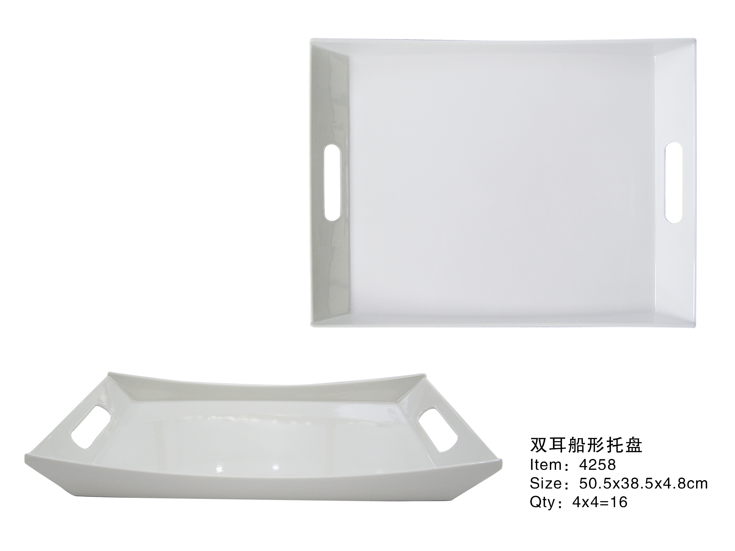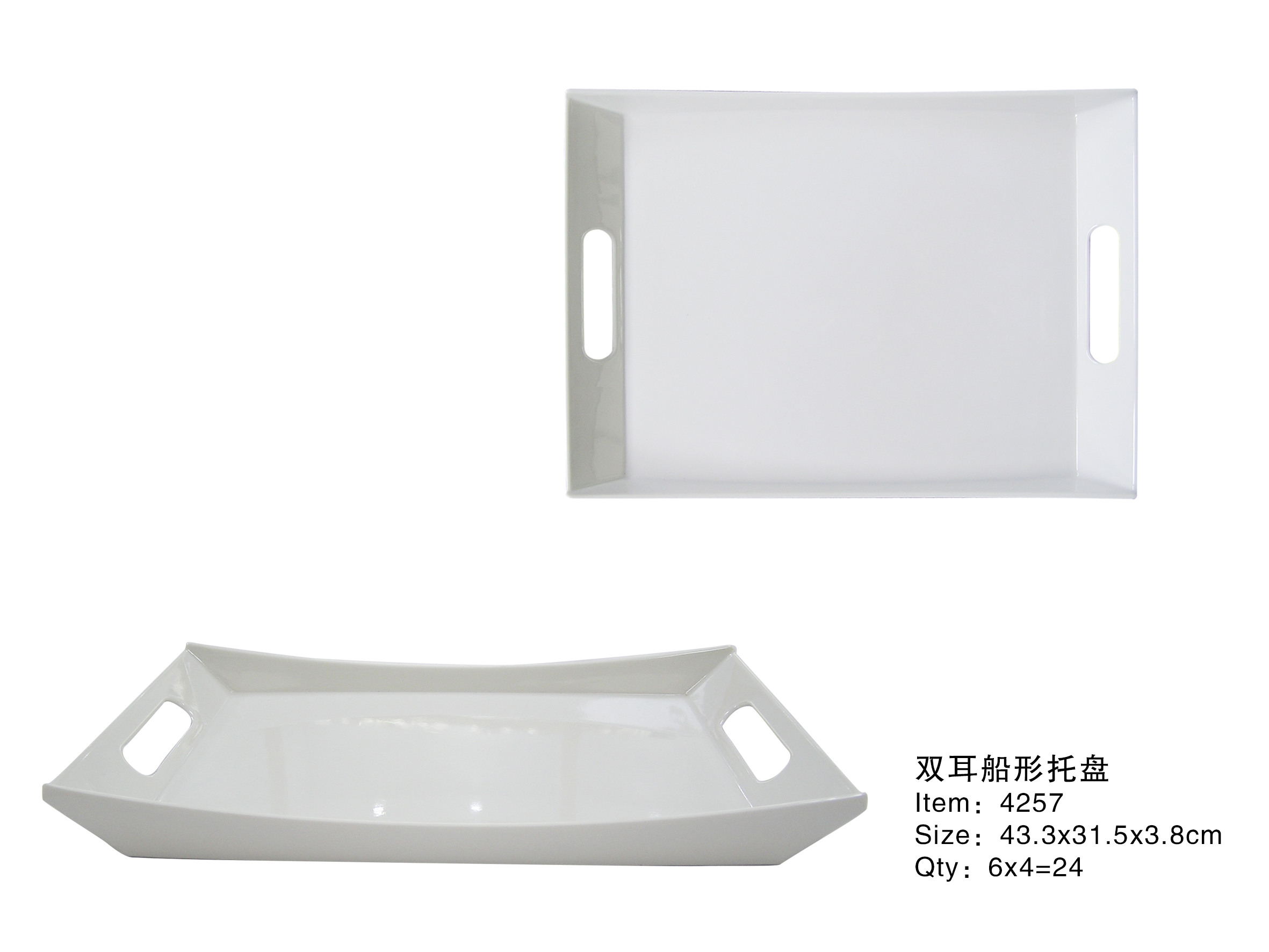 Shape: Rectangular boat-shaped with twin cut-out handles