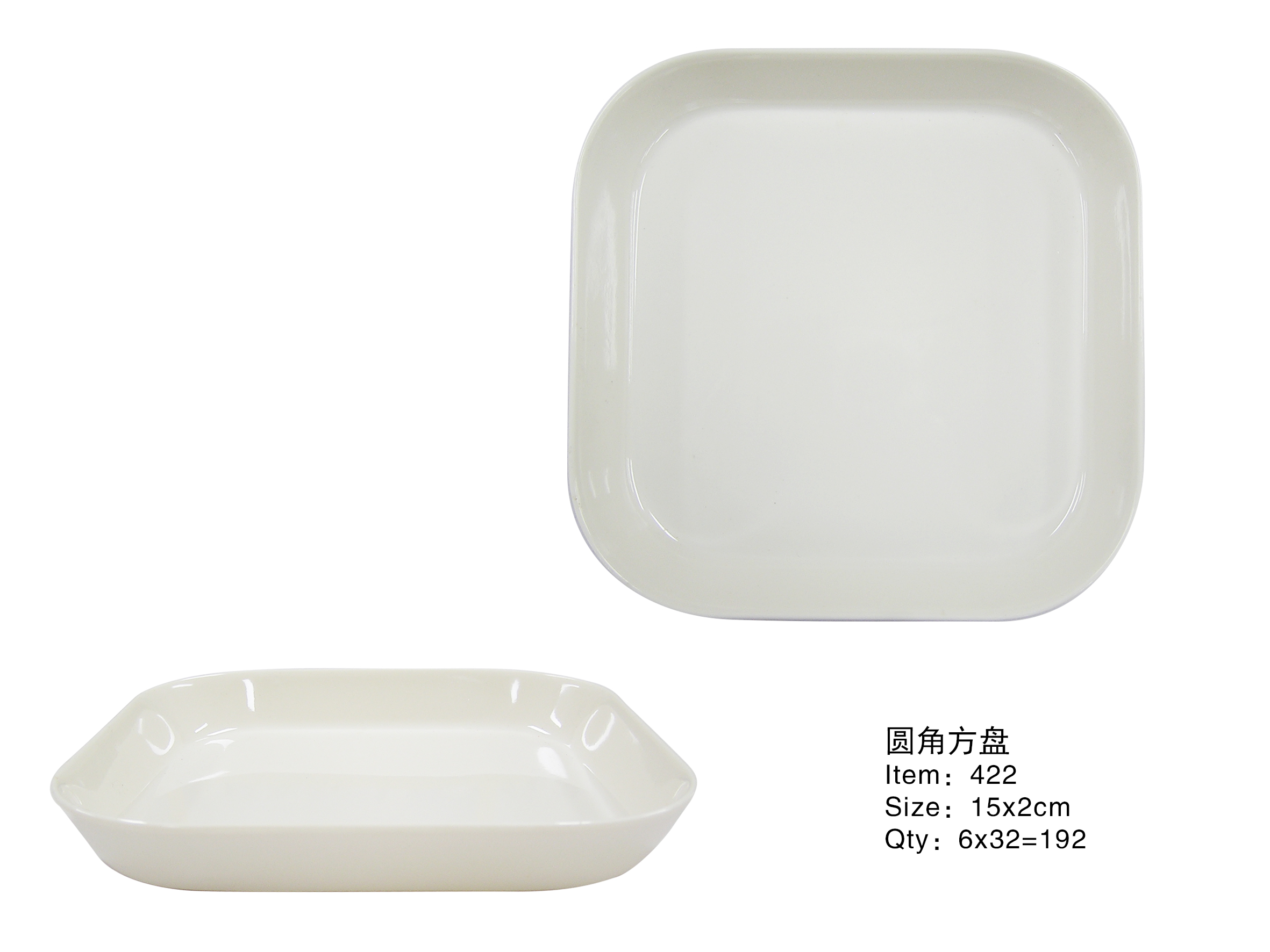Melamine Rounded Corner Square Plate - Item 422