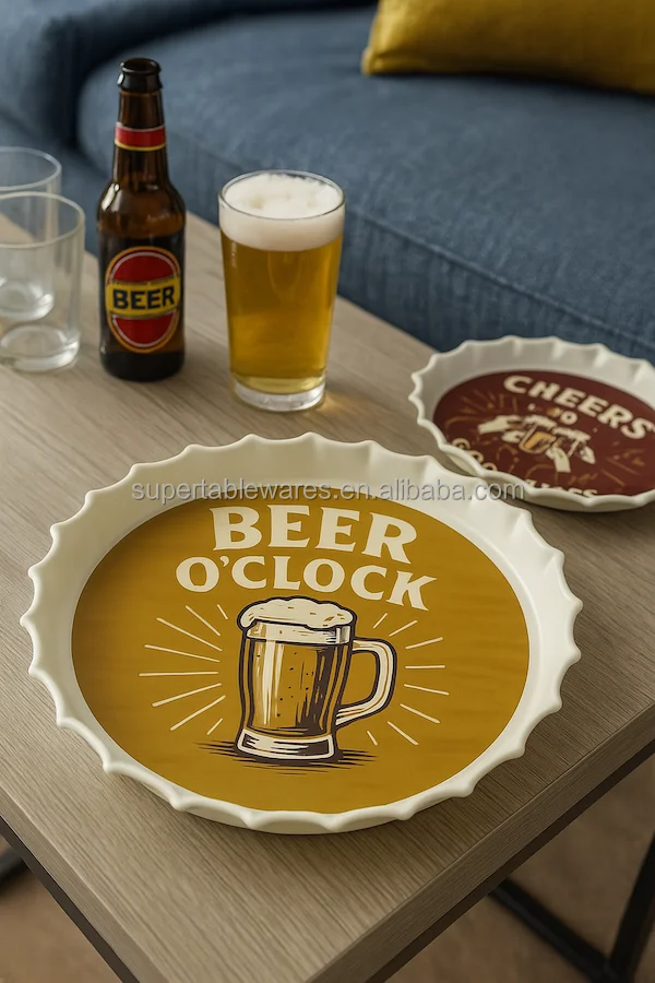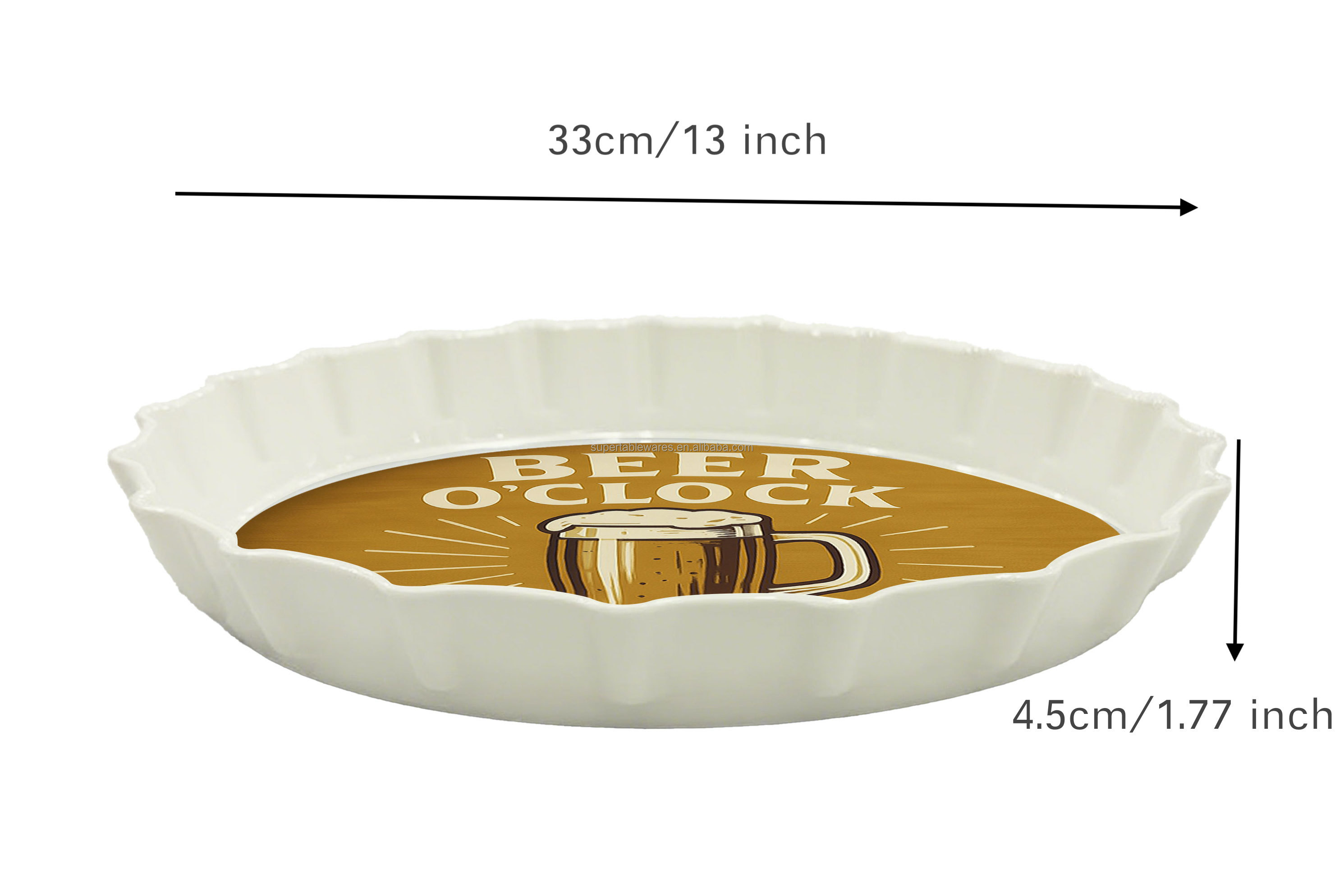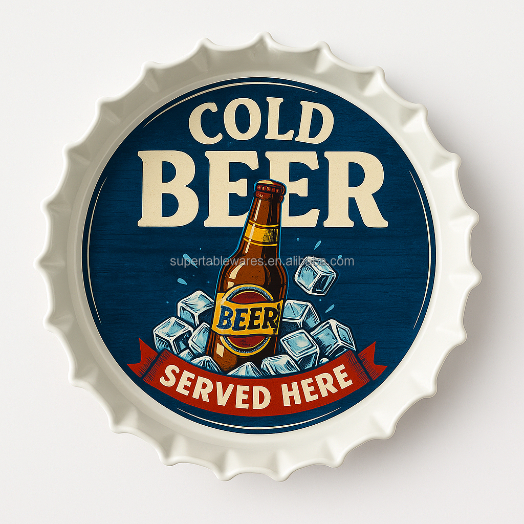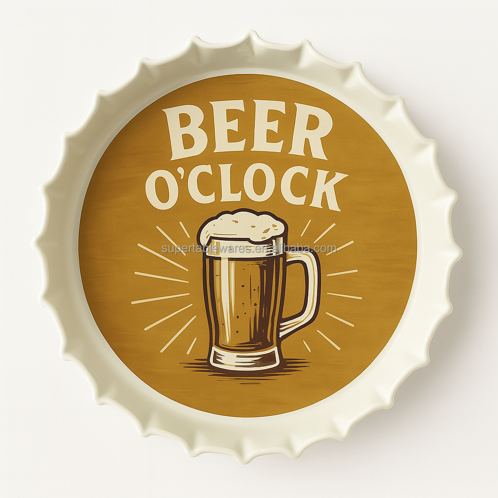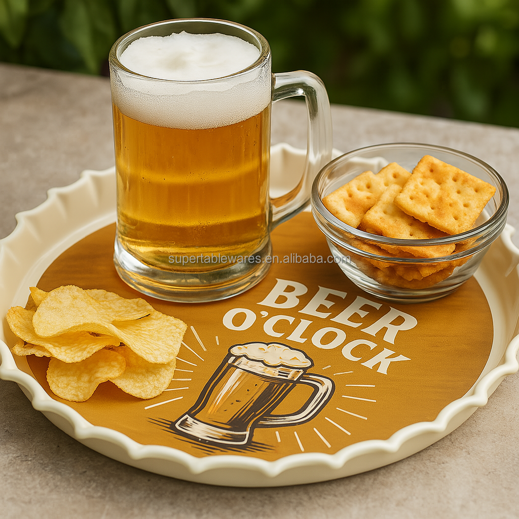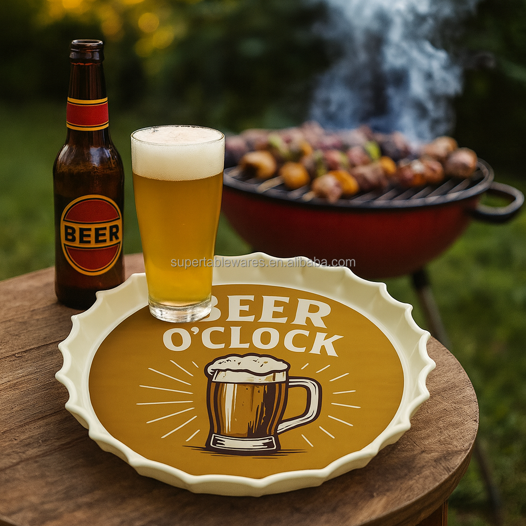Fuction: | Crafted from durable melamine, this 13-inch round tray is ideal for serving beverages, snacks, or party foods. Whether you’re running a bar, hosting a BBQ, or gifting beer lovers — this tray stands out. |